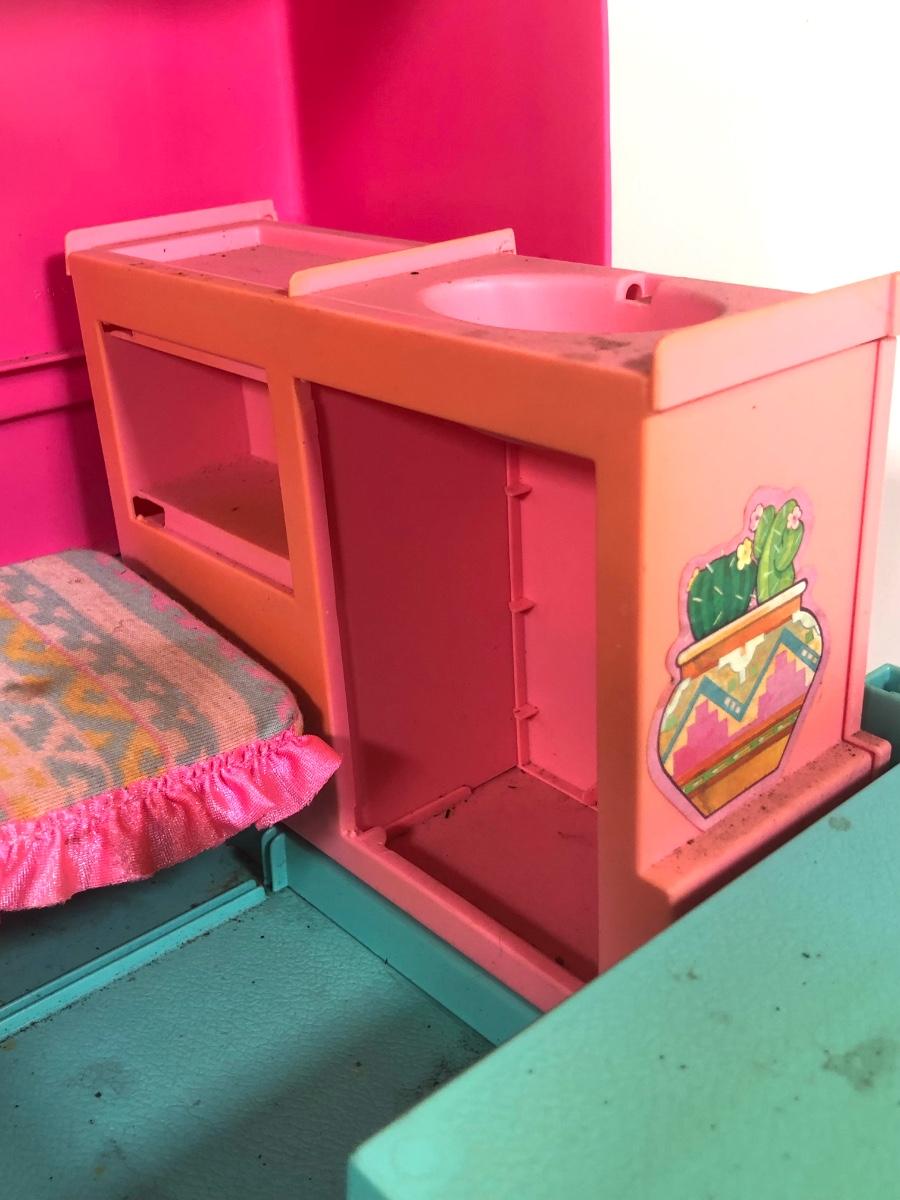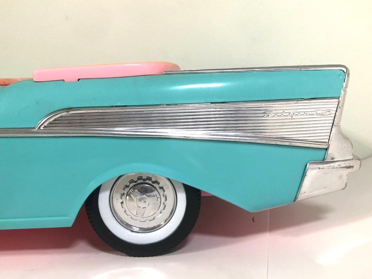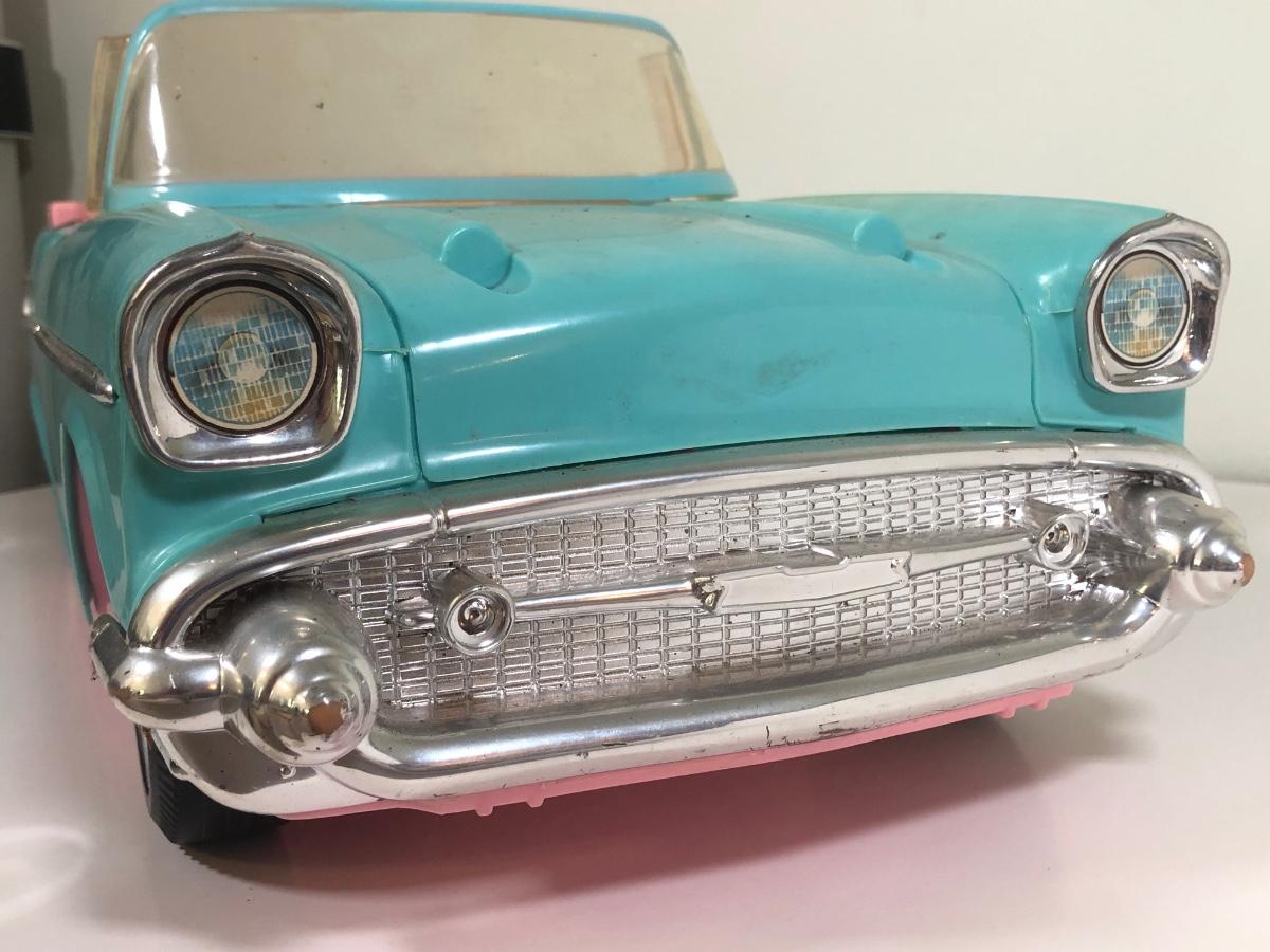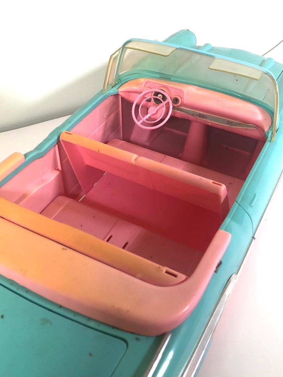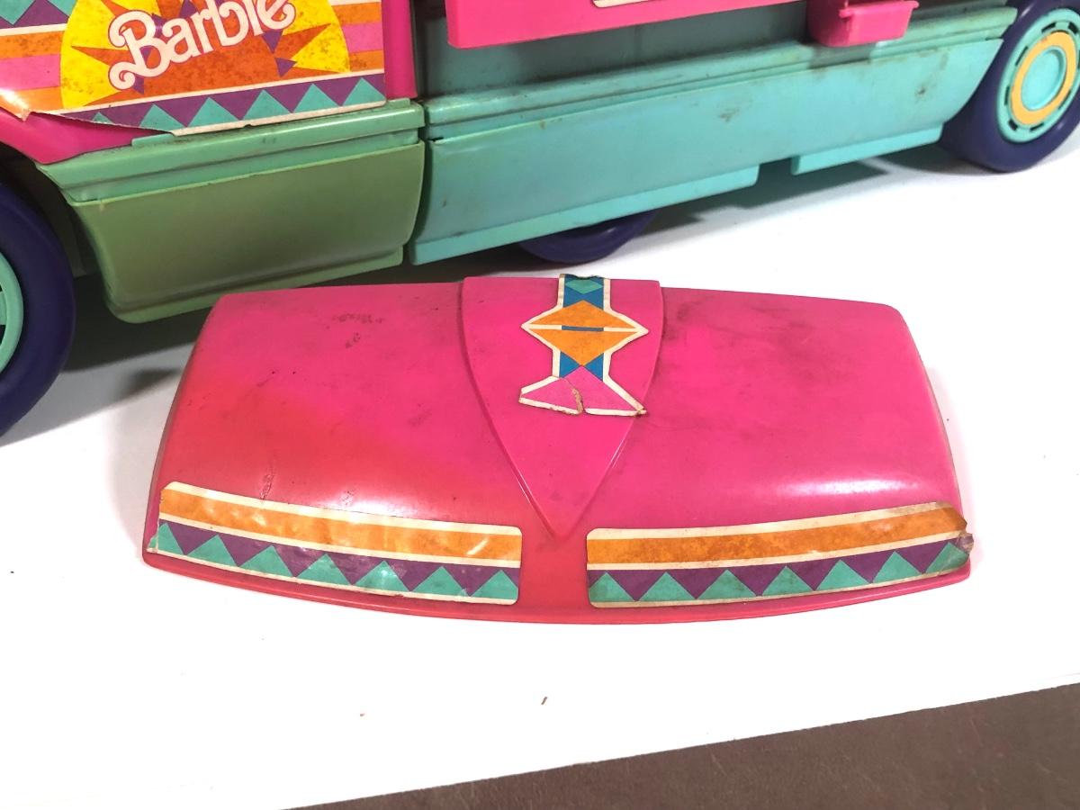 LOT 177L: Vintage 1988 Mattel Turquoise Barbie '57 Chevy Bel Air Convertible Car & Vintage 1989 Mattel Barbie Western Fun Motor Home RV Camper Van
