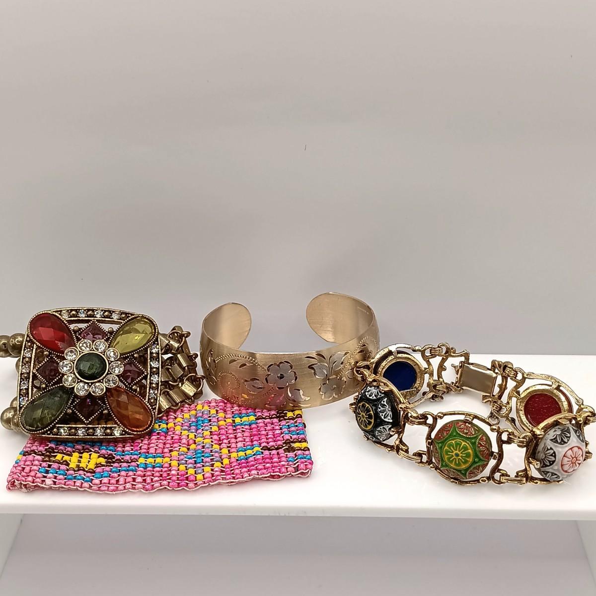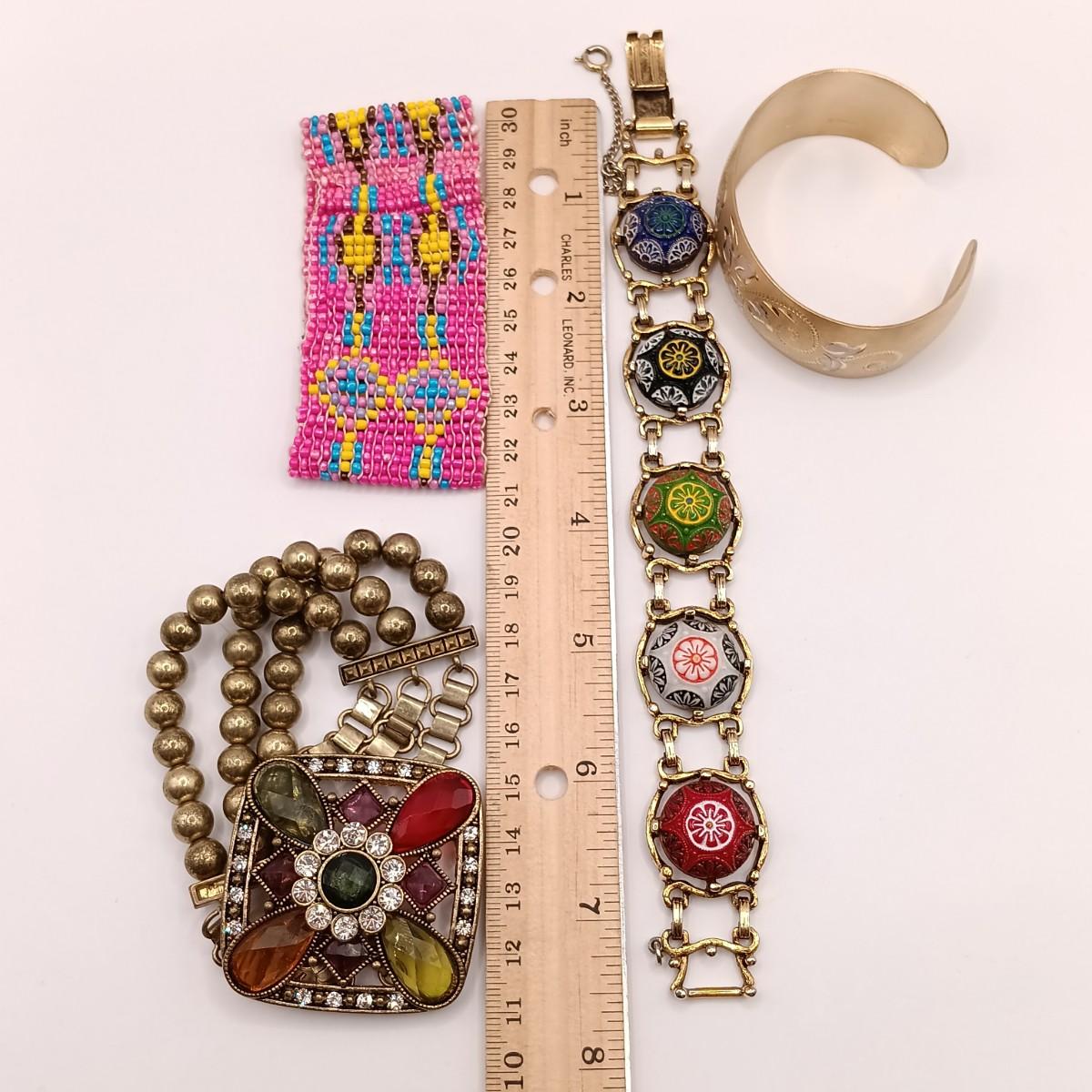 LOT 178: 1/20th 14K Gold-Filled Etched Cuff Bracelet w/ Celebrity Moroccan Art Bracelet & More