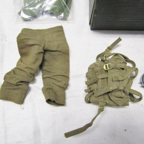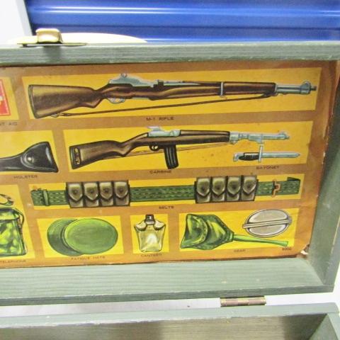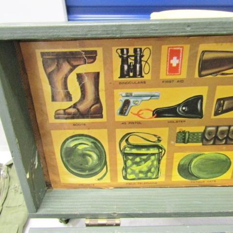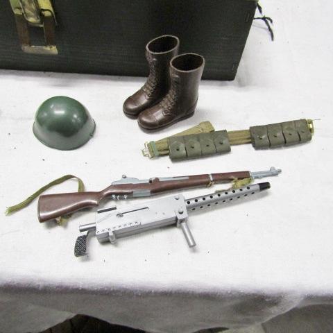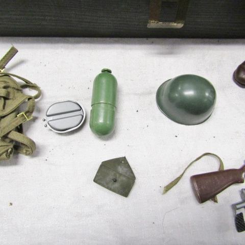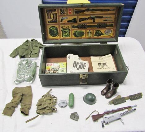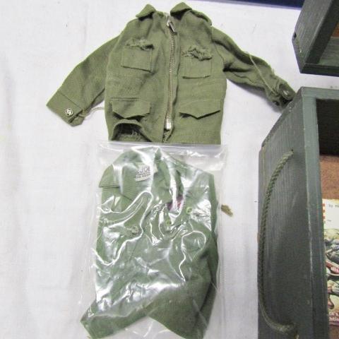 WOODEN CARRY CASE, ACTION FIGURE, CLOTHES AND ACCESSORIES