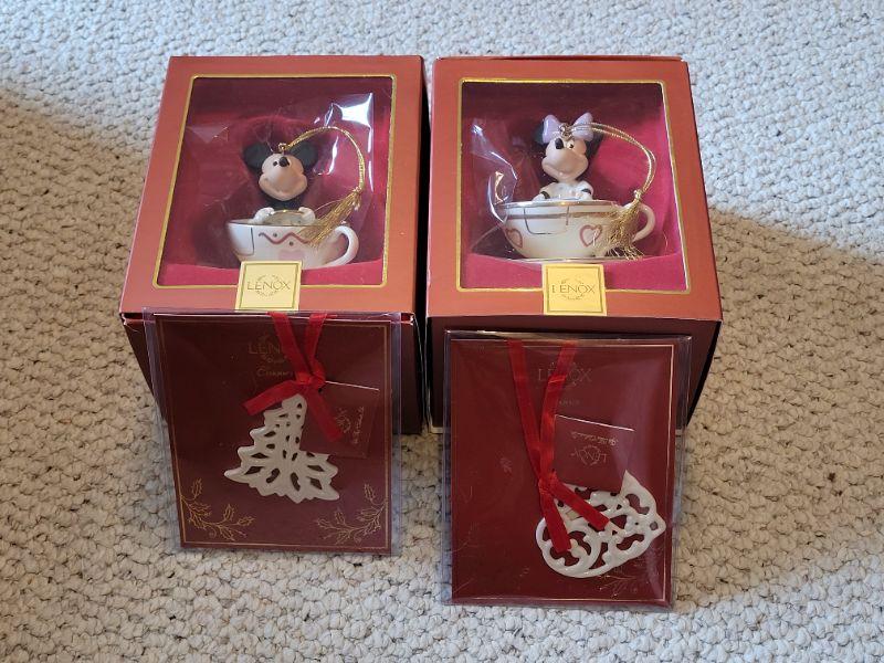 Lot 178: Mickey and Minnie Mouse DISNEY LENOX New Ornaments + HEART AND TREE Charms