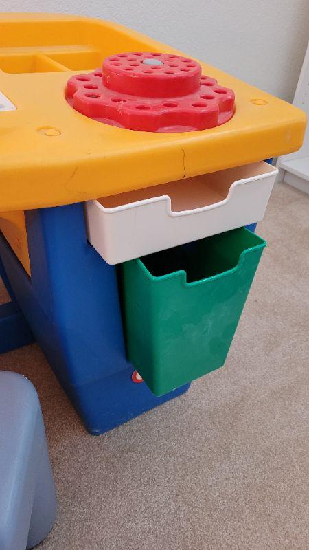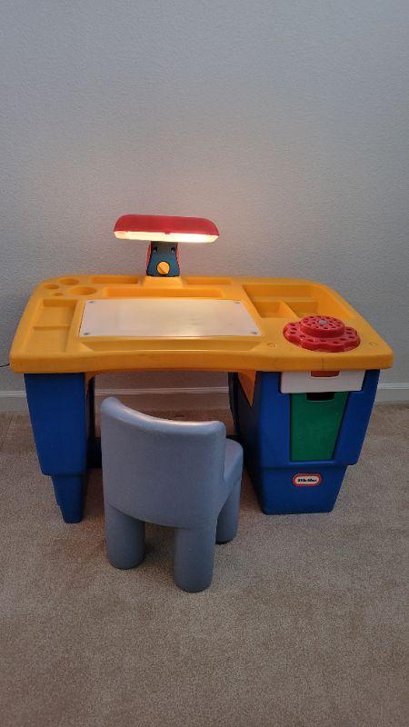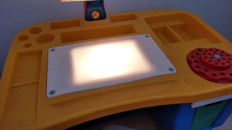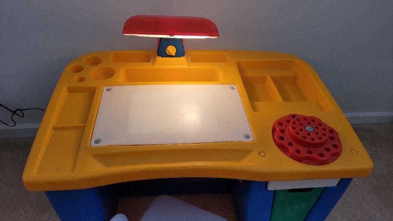 Lot 178: Vintage LITTLE TIKES Drafting Table- Art Work Children's Lighted Desk w/ Chair TESTED A+ (Comes with the Original Red and Blue Chair not the Small Light Blue One)