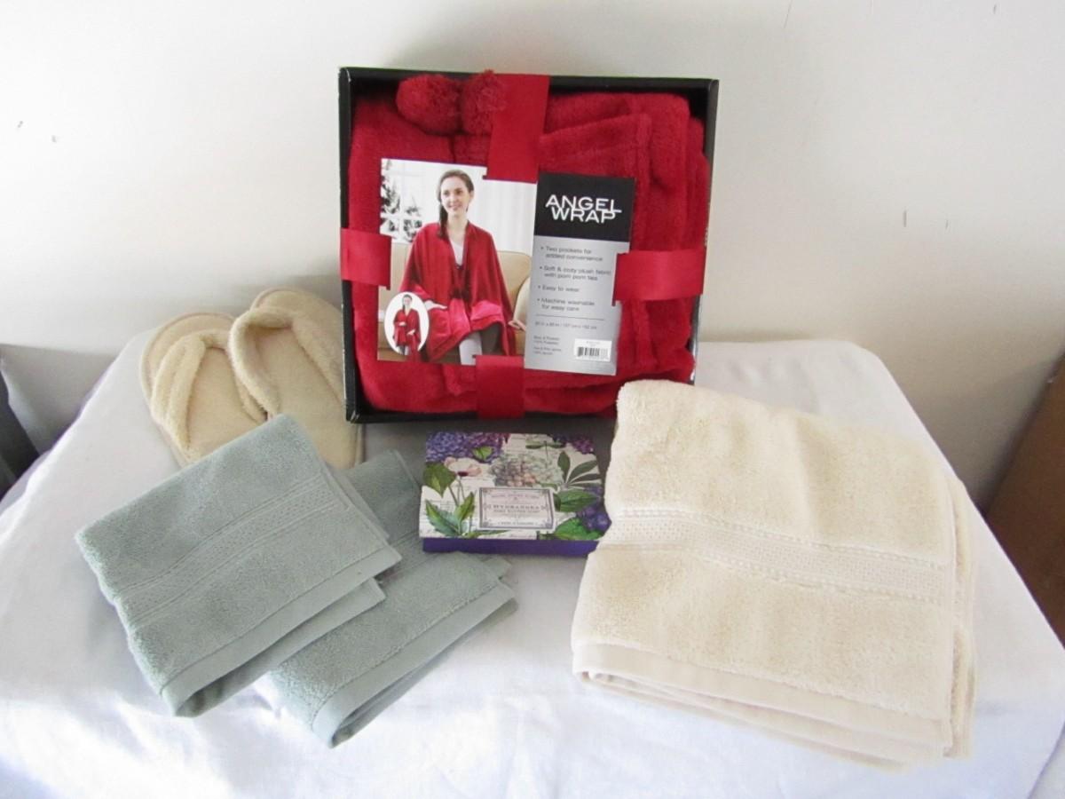 LOT 178 NEW ANGEL WRAP, TOWEL, SHEA BUTTER SOAP & MORE