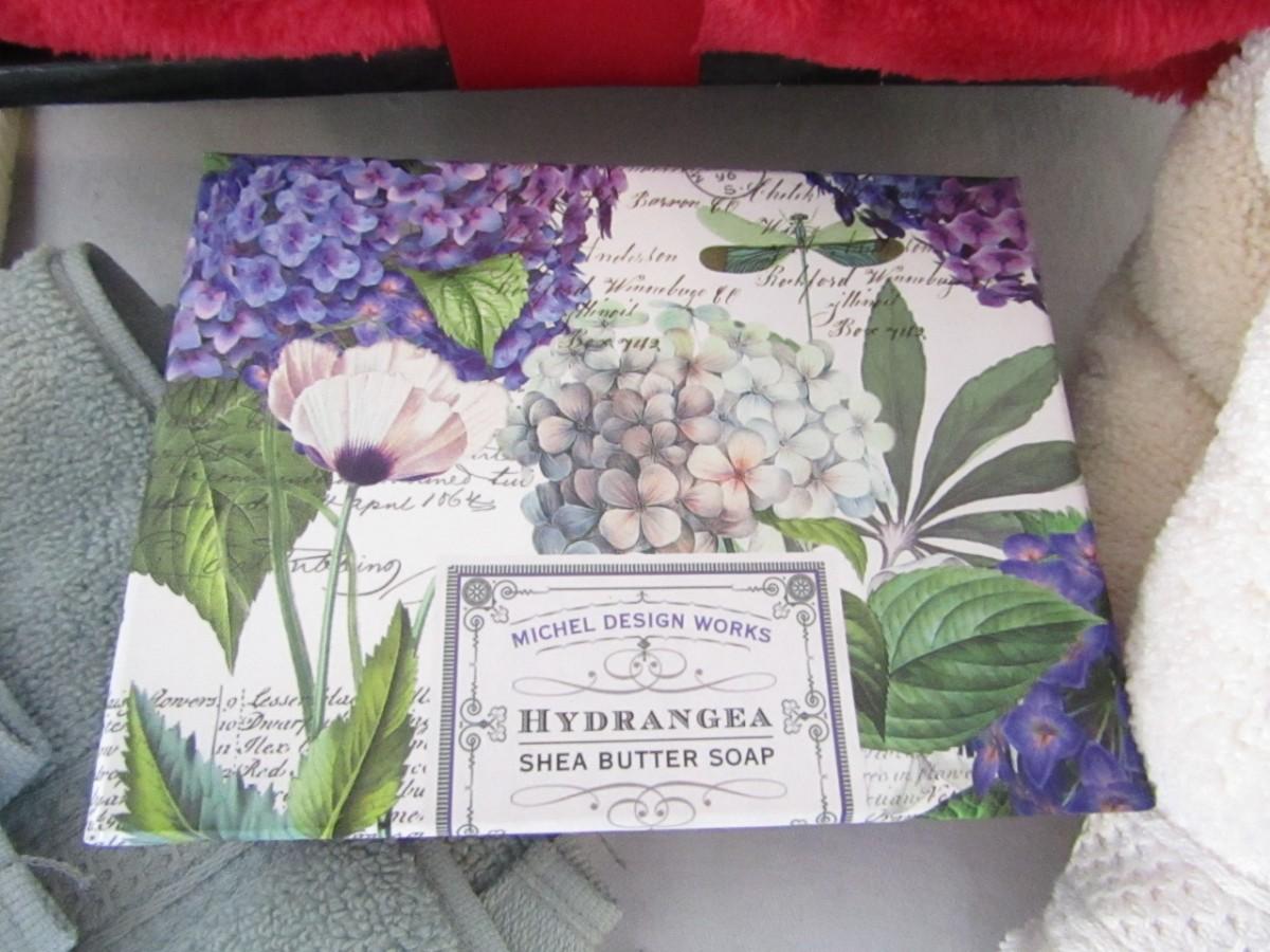NEW ANGEL WRAP, TOWEL, 2 WASHCLOTHS, SHEA BUTTER SOAP & SLIPPERS
