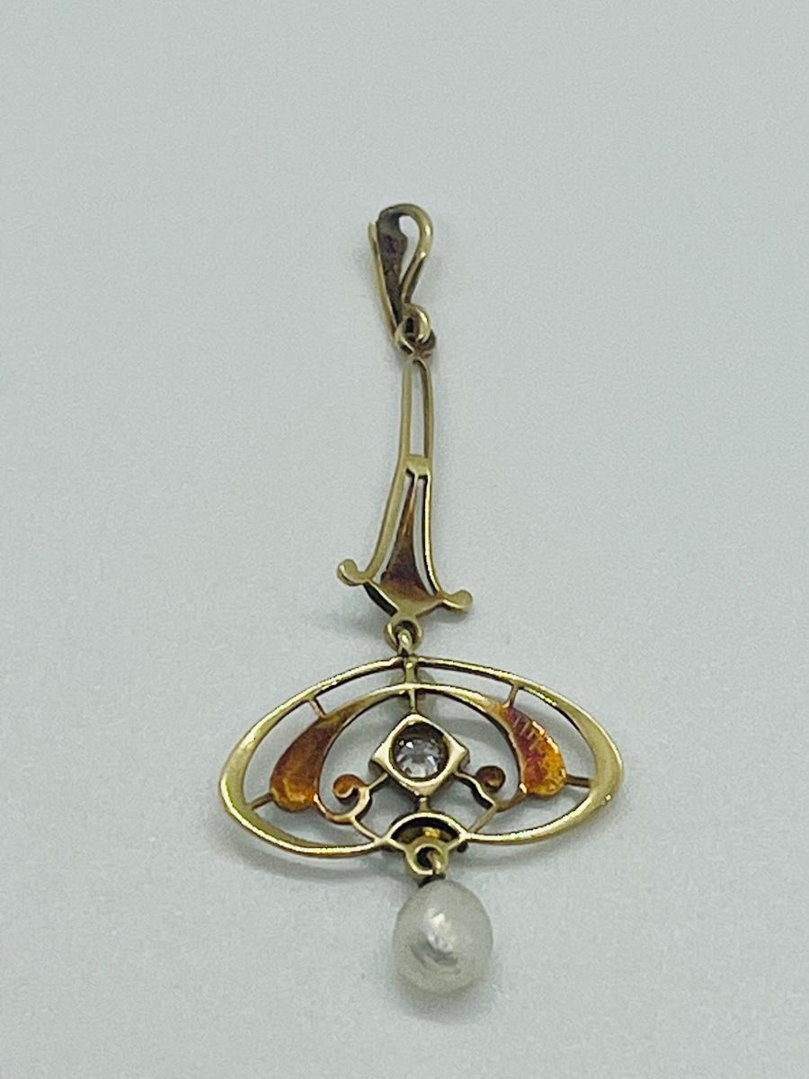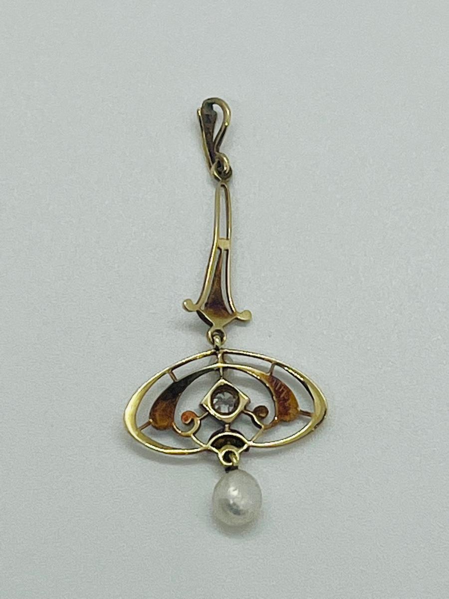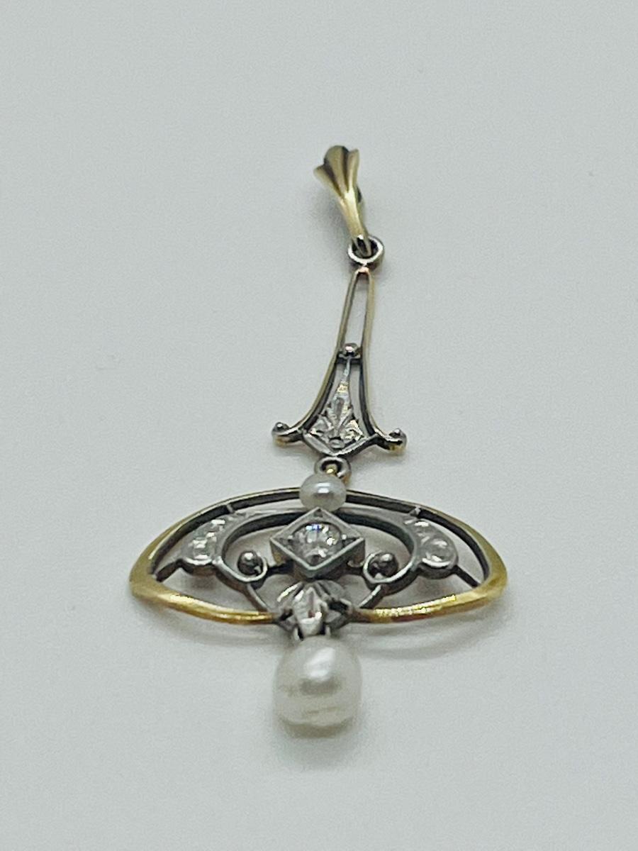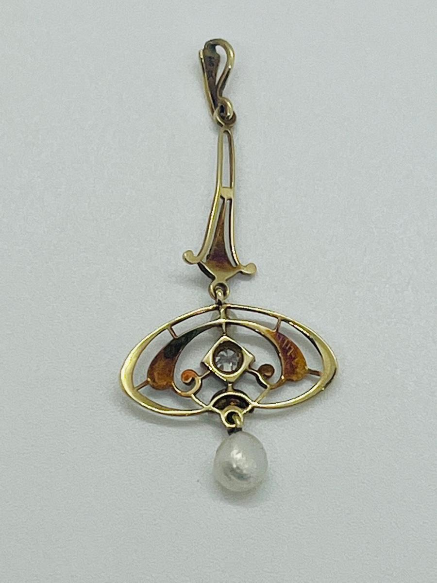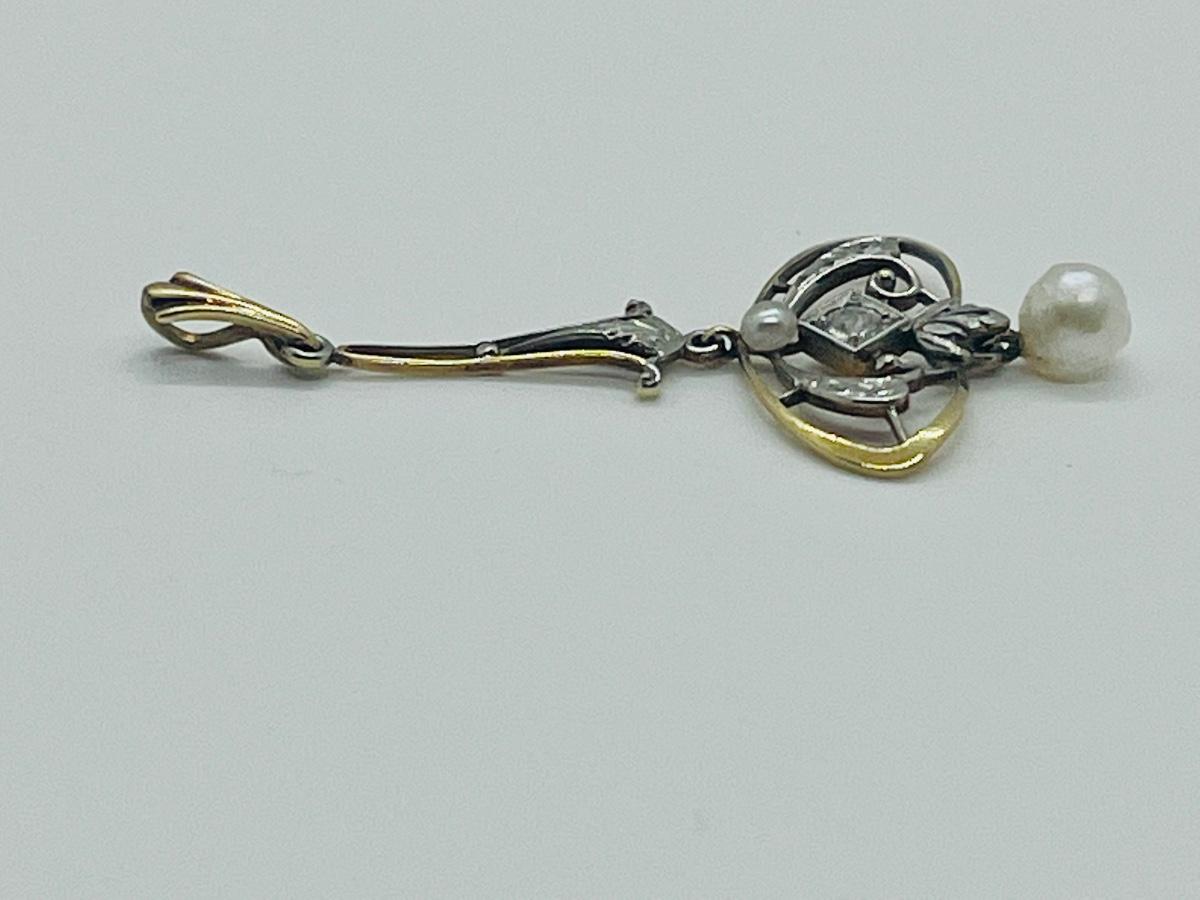 Lot 178: Vintage 14k Two-Tone Gold Pendant with Diamond center & 2 Pearls