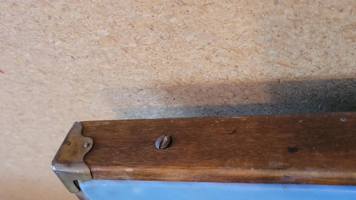 Lot 178: Vintage BURROWES Blue Vinyl Top Wood Folding Card Table