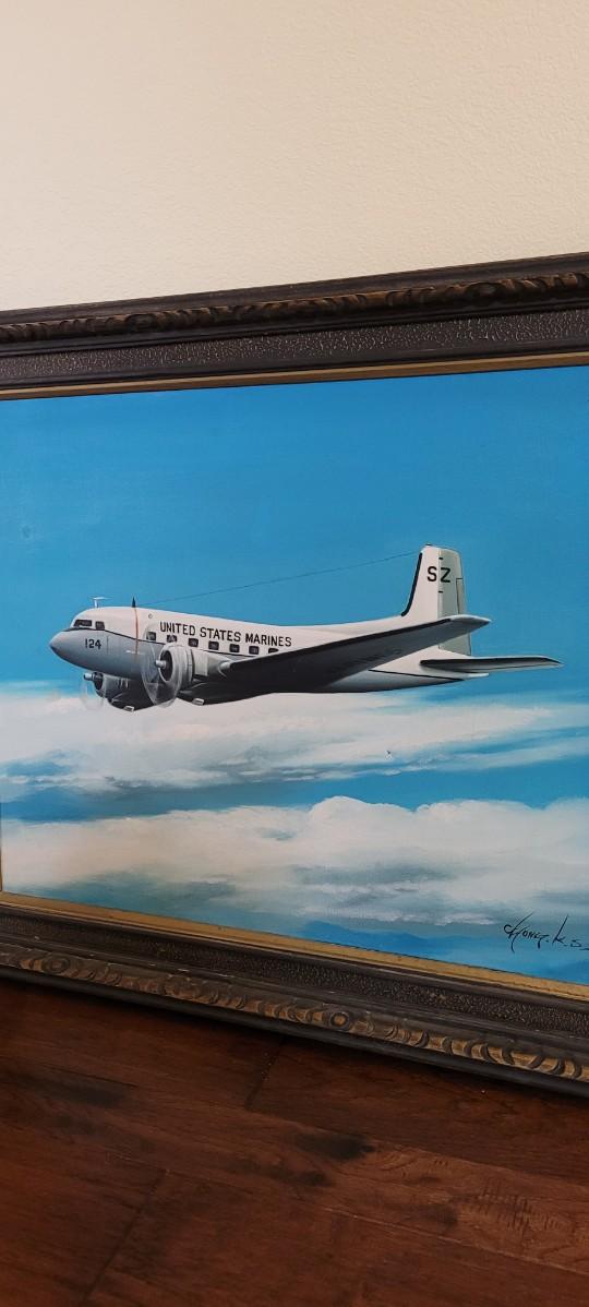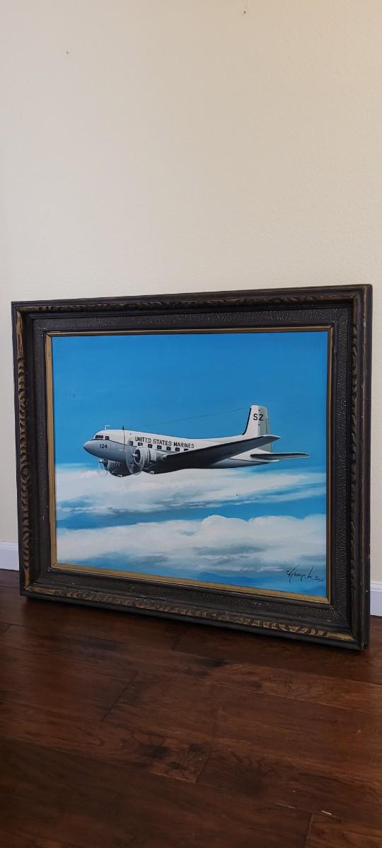 Lot 178: Original Oil Painting of Marines Transport Plane SIGNED
