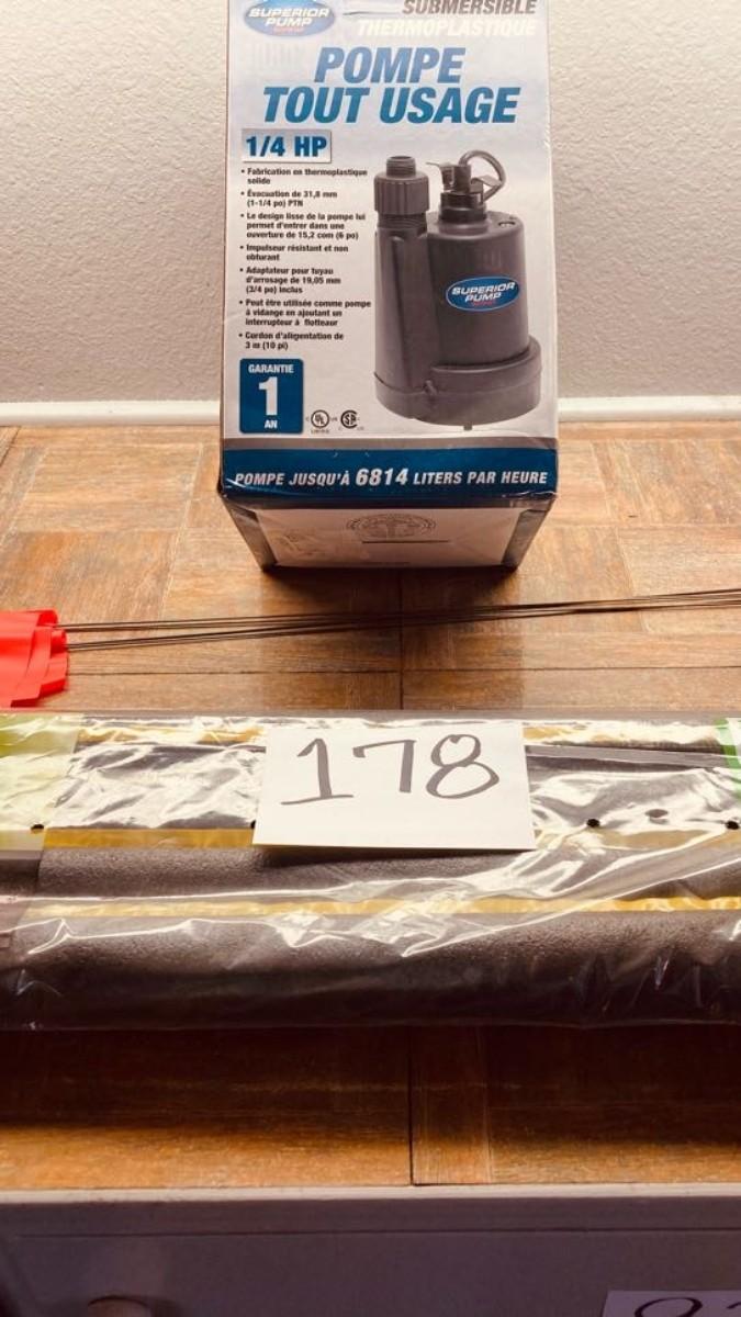 LOT 178  NEW SUBMERSIBLE PUMP AND FOAM PIPE COVERS