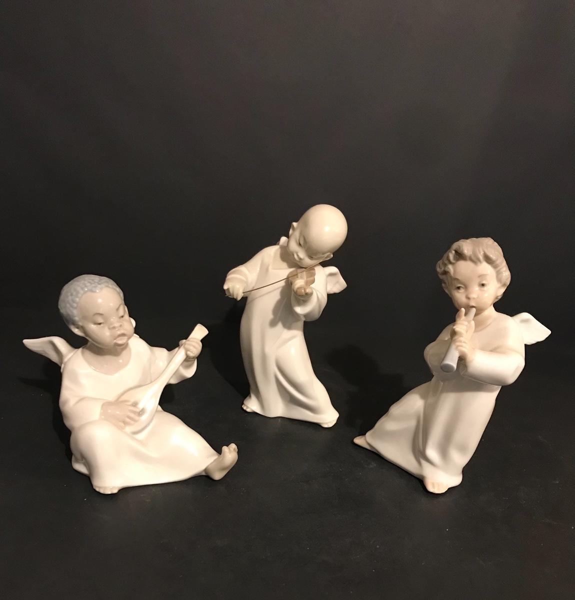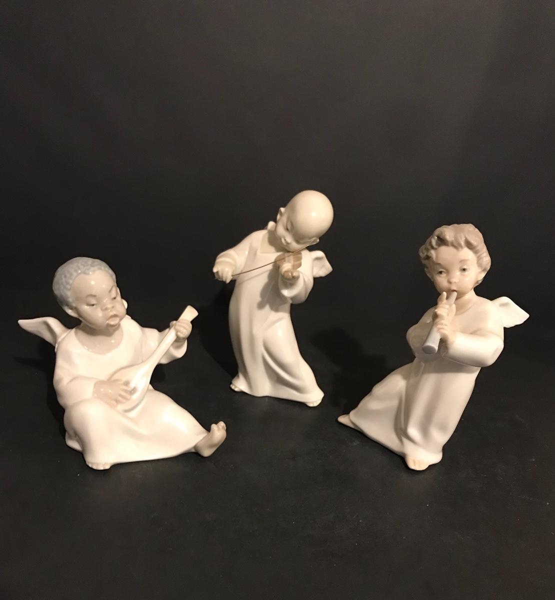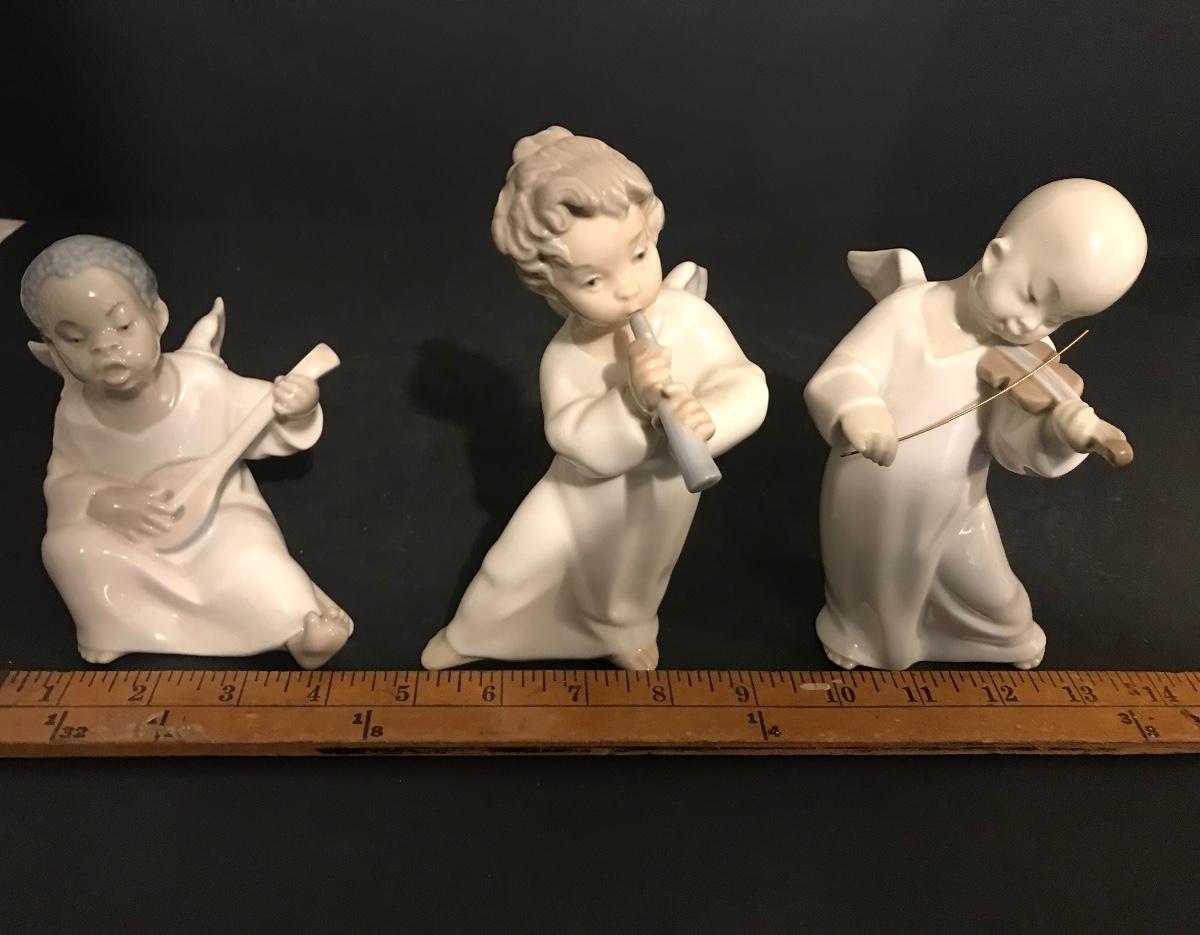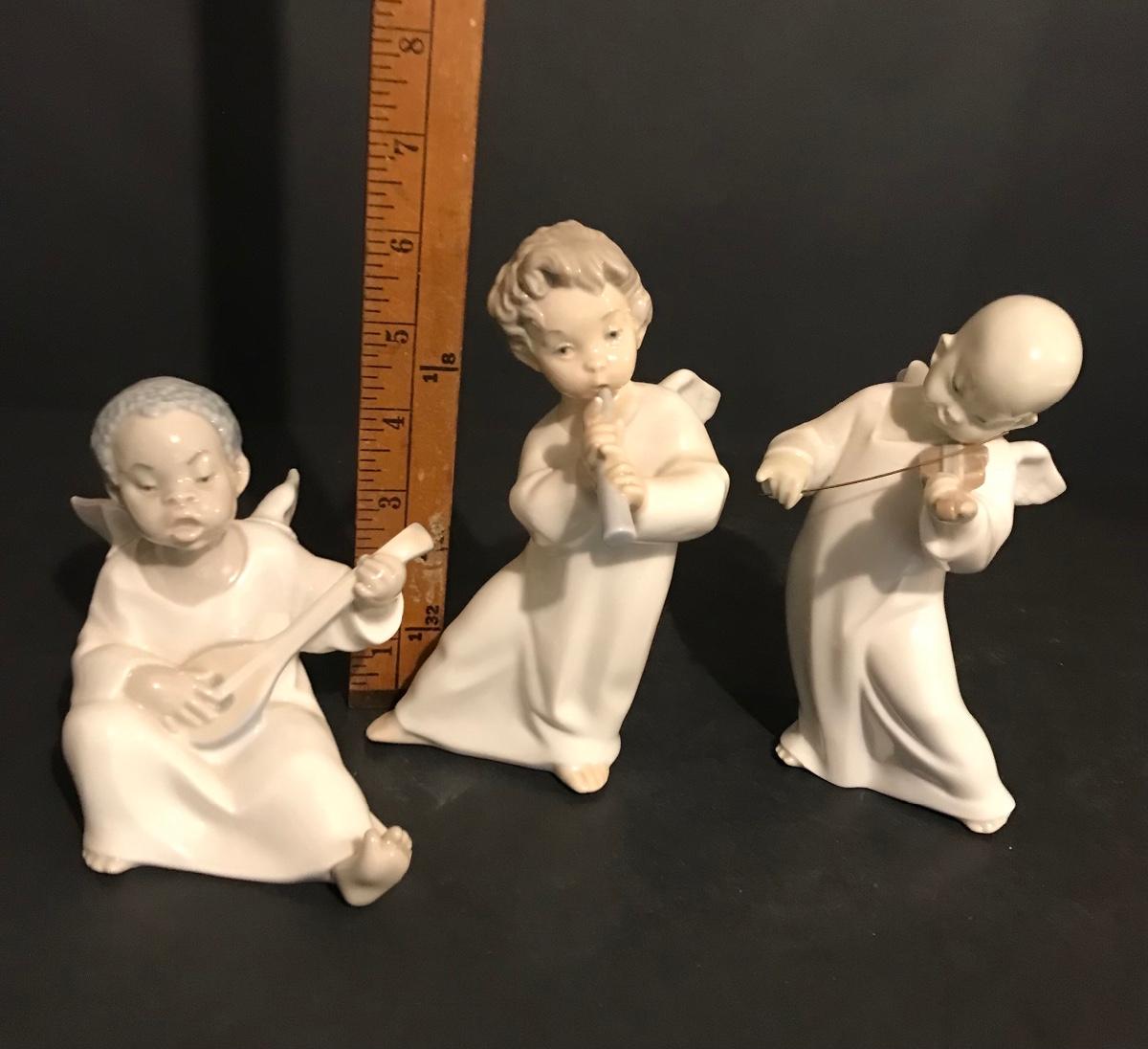 Asian Angel Playing Violin #4536, Angel With Flute #4540 And Black Legacy Angel #4537. All Lladros are in excellent vintage condition without original boxes, except where noted. All items have been inspected and any damages or imperfections have been photographed and noted to the best of our knowledge and ability. It is the responsibility of the buyer to inspect all pictures, as they are the best representation of the items. The pictures show condition, measurements if taken, and what is included in the lot. Upon pickup, it is the responsibility of the buyer to inspect their items prior to leaving the premises. Once the items leave the premises, there will be no refunds or returns. Buyers are also responsible for bringing their own boxes and packing materials for their items. Thank you.