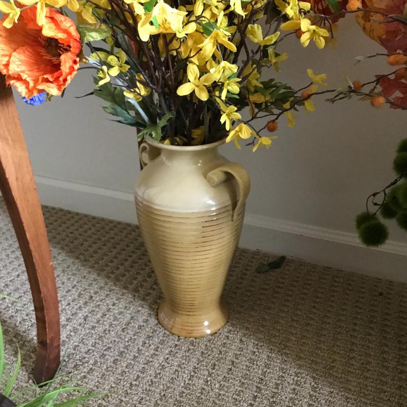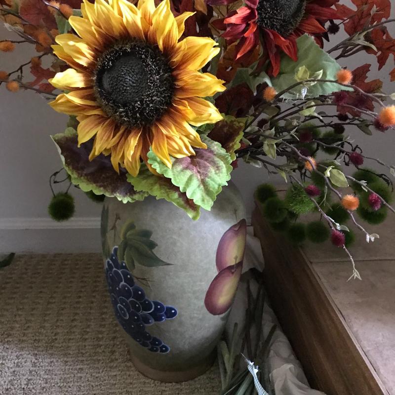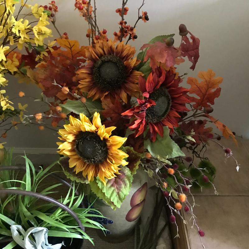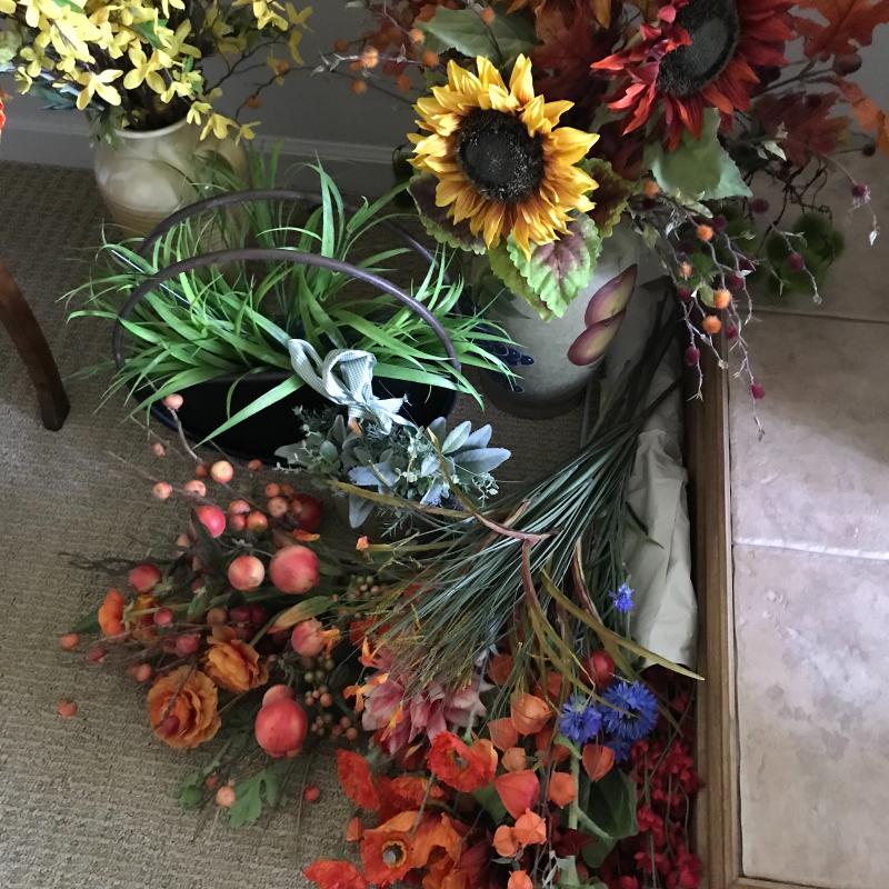 Lot contains faux flowers of all kinds. Also includes two vases and a round metal display “basket”. No shipping available. Local pickup only in Arden, NC.