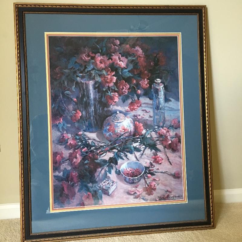 Large Nancy Lund framed, matted and signed artwork. This piece will look great in any part of your home. Frame measures 30.5” x 36.5”.