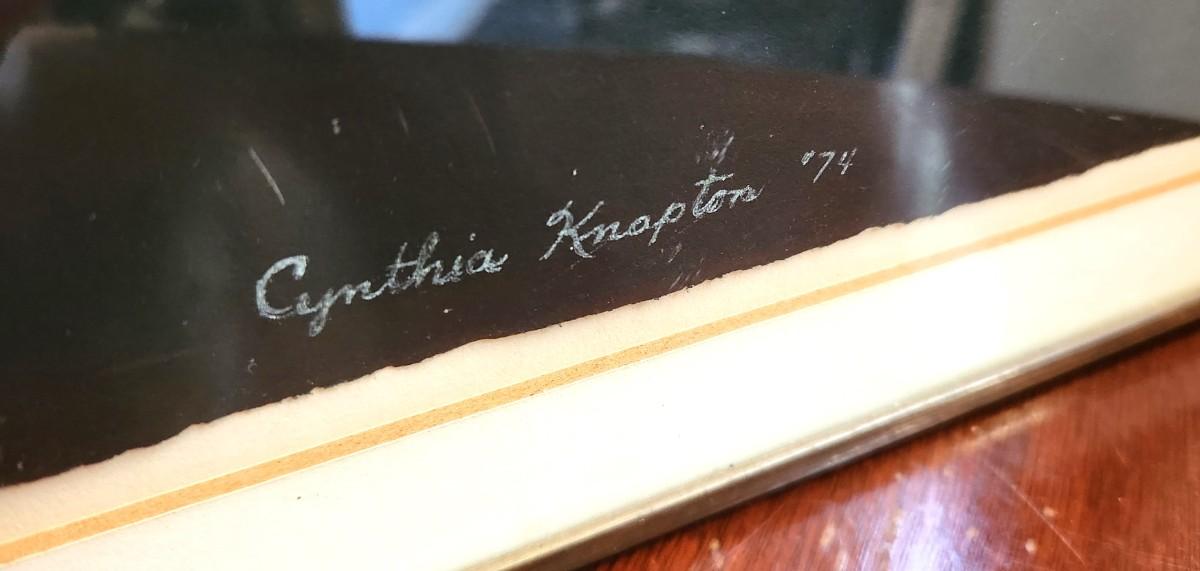 Totally weird framed, signed print by artist Cynthia Knapton - dated 1974. The title is "Metallic Night II". 31.5" across, 40.5" tall. Does it "speak" to you?