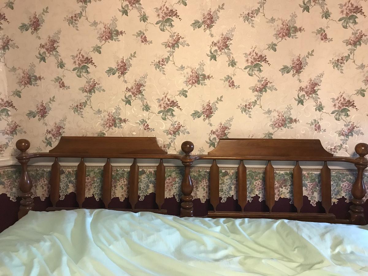 Wooden, king size headboard. Located on second floor. Please see all pictures as they are the best representation of the items. The pictures show condition, measurements if taken, and what is included in the lot. Due to the large amount that we photograph and the time frame, we are not always able to take measurements. All items unless noted, are pre-owned and have been used. If you purchased furniture, you must bring help. We do not allow one person to carry large furniture out on their own. Bring help, tools and a truck for the safety of our client’s homes, and your personal safety. Company policy. Thank you.