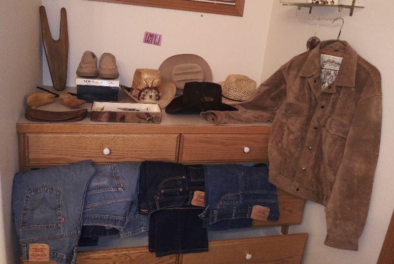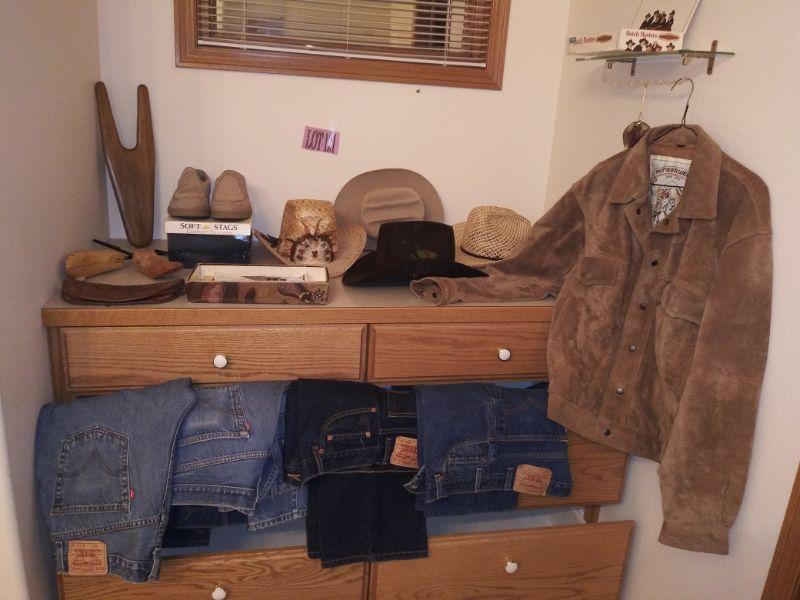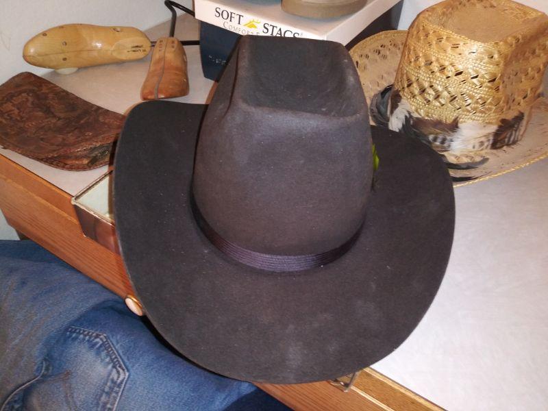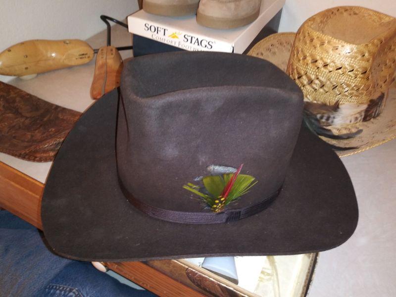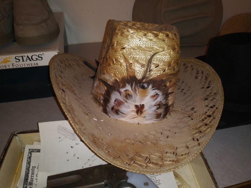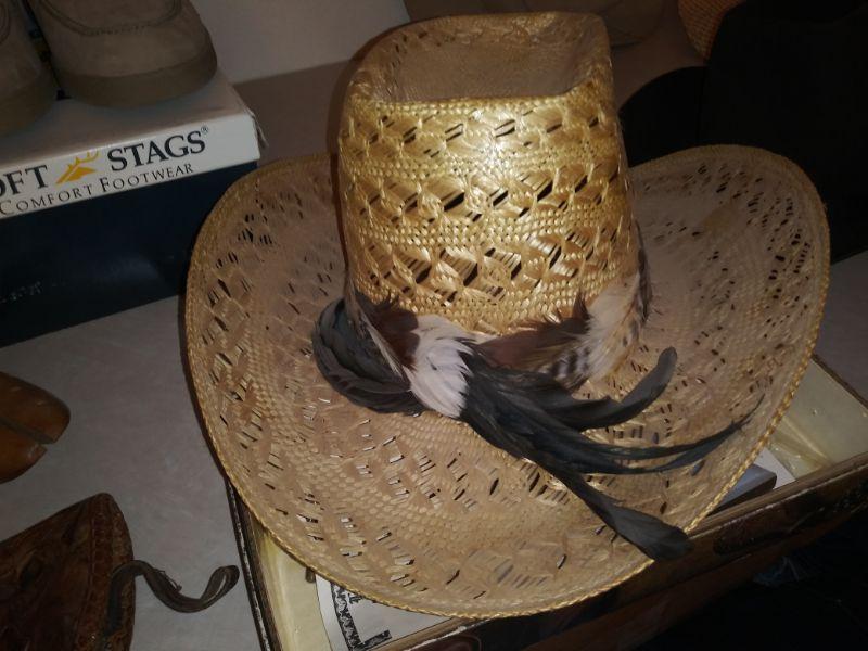 SEVERAL COWBOY HATS, BOOT HORN AND MORE
