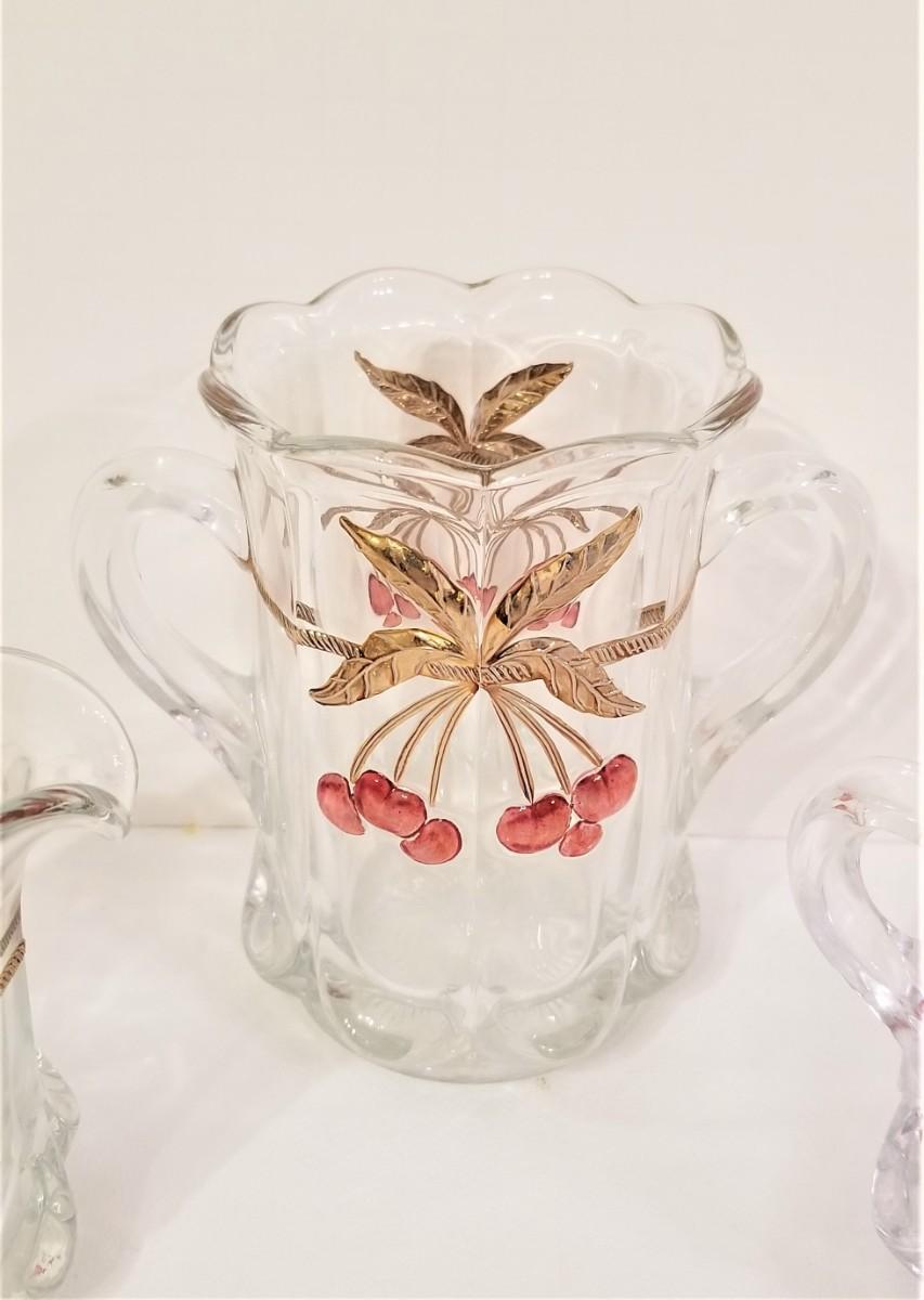 Three new pieces by the MOSER glass company - Cherry pattern - you get the spooner, creamer, and sugar, all in original boxes. Spooner is 5.75" tall.