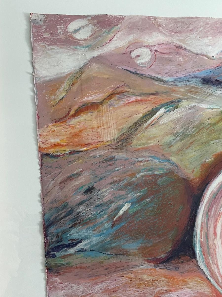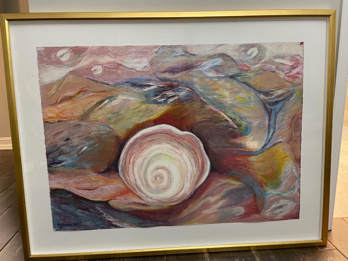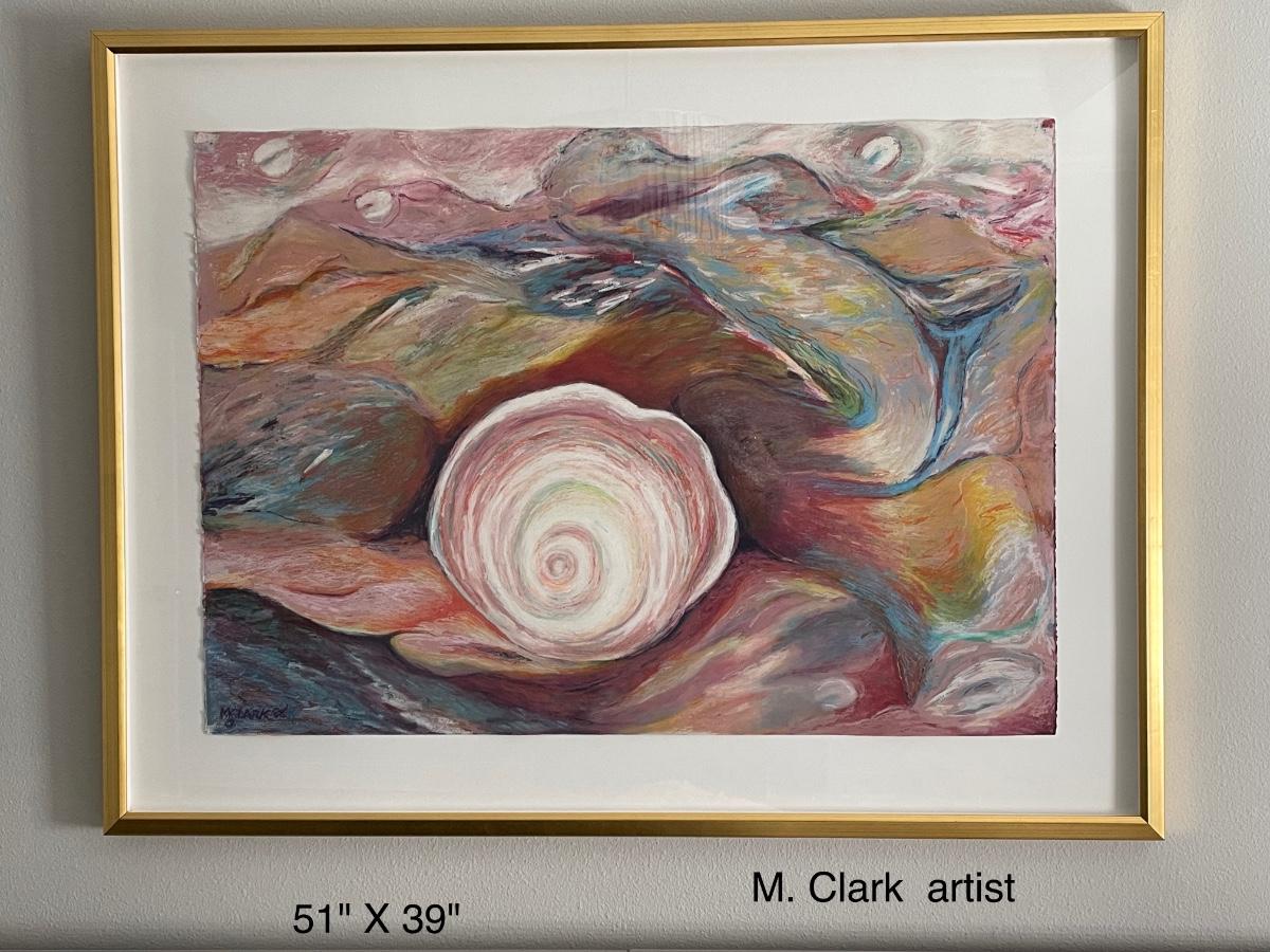 Mickey Clark, artist. measures 51" X 39" Pastels on paper, mounted behind glass in a thin gold frame. Beautiful