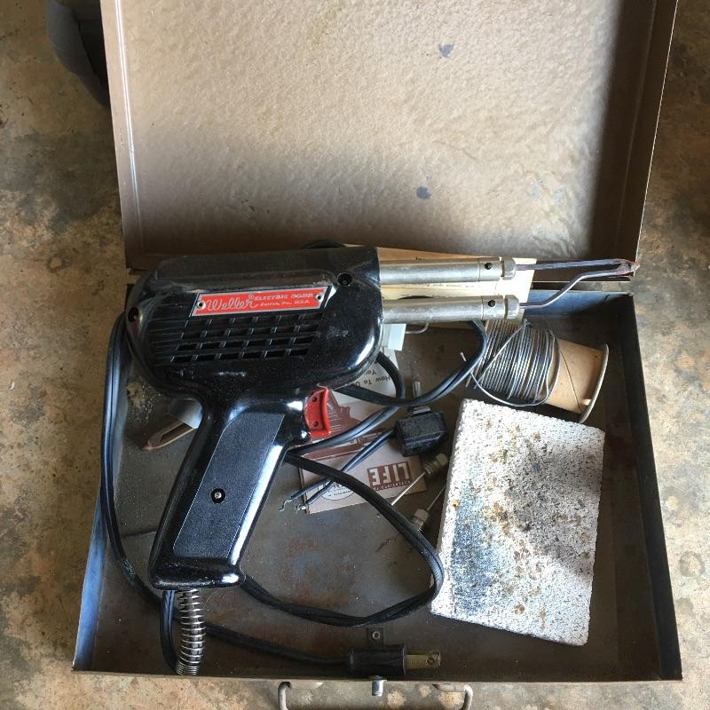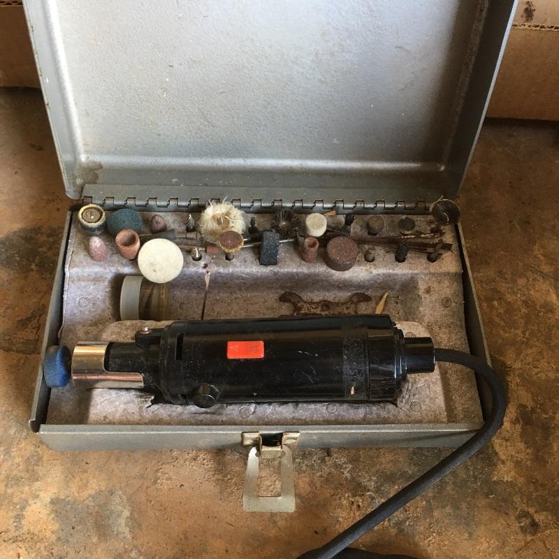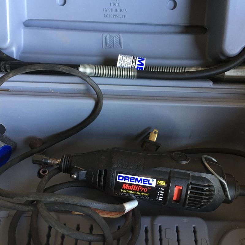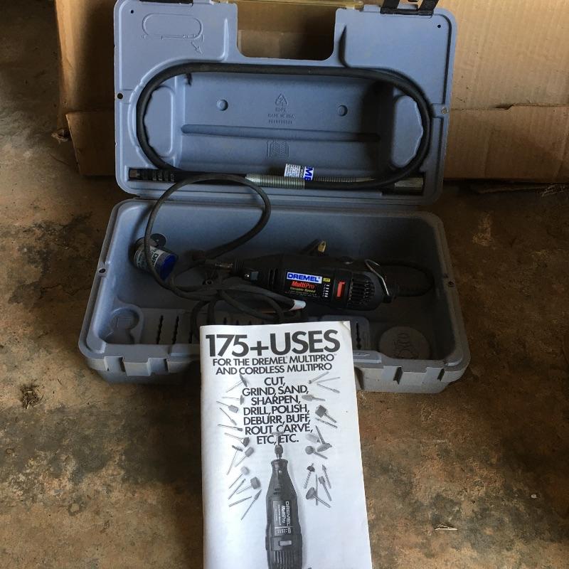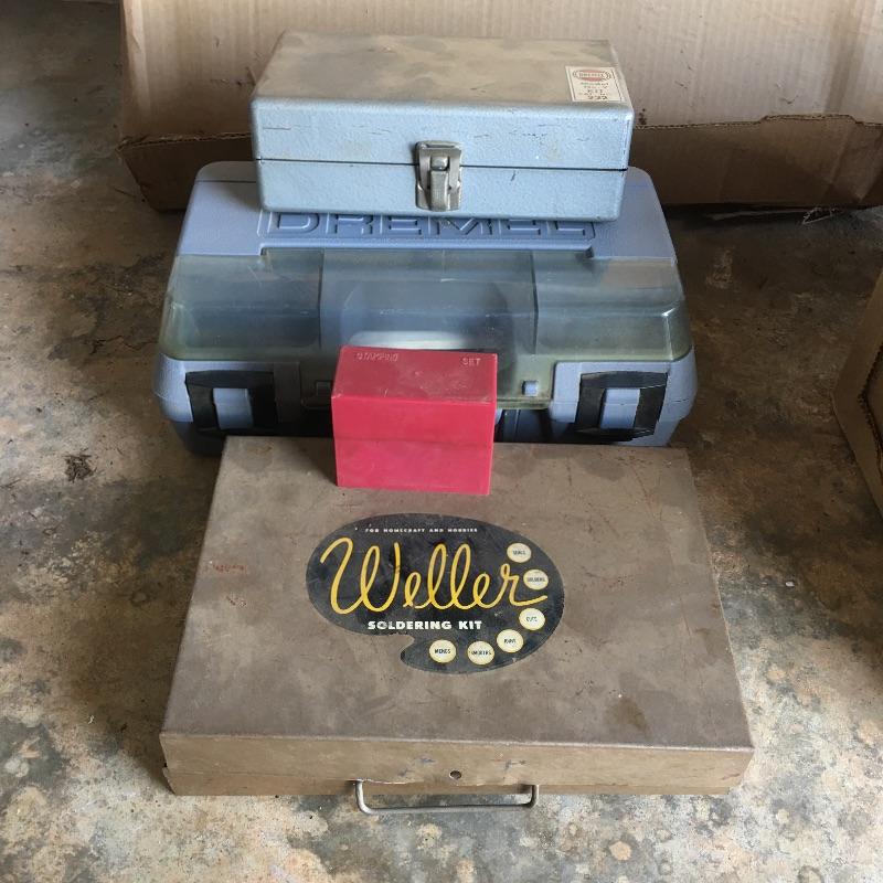 A great pair of dremels to do all your intricate work. Lot includes Dremel Multipro with flexible extension and case, Dremel Model #2 with attachments, Weller soldering gun in a box and a stamping set.