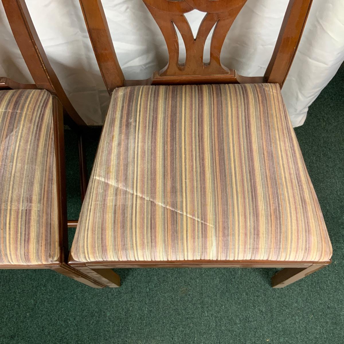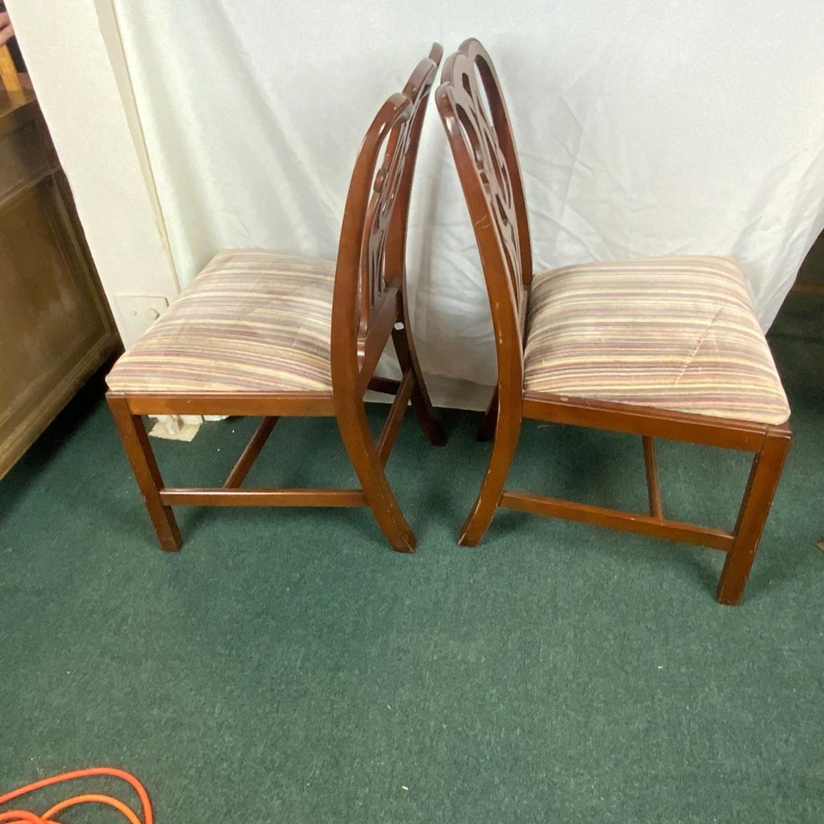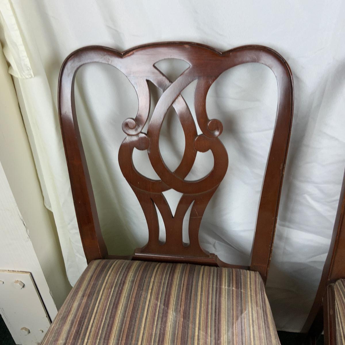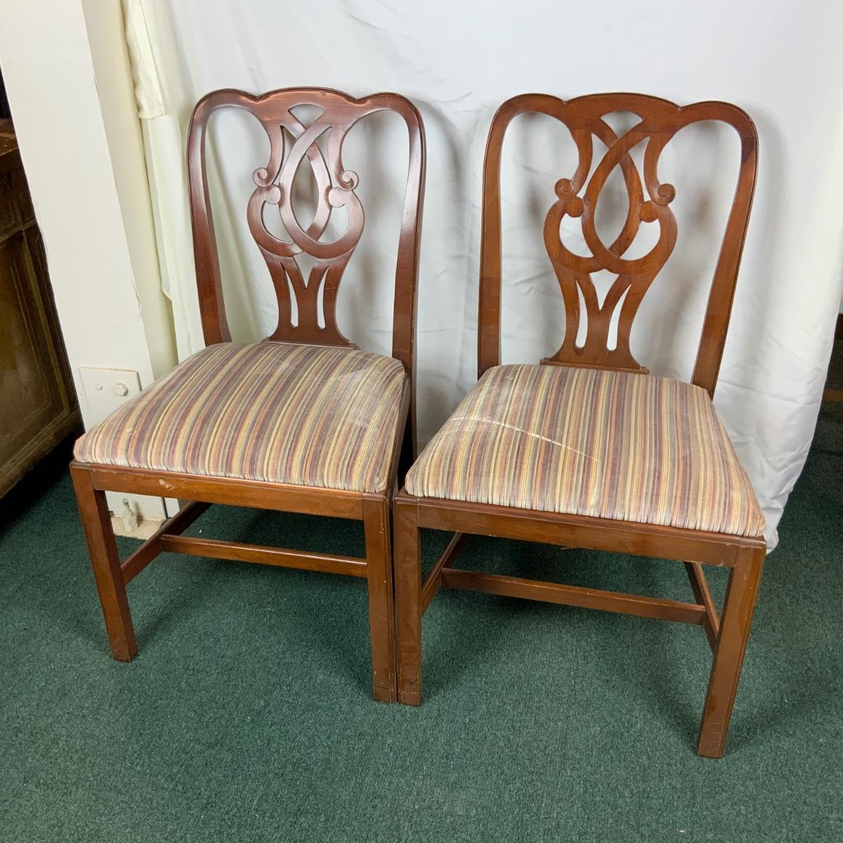 Pair of Refinished Queen Anne Dining Chairs. Dust them off and take a seat! //::\\ Please see photos for details and condition. No attempt has been made to hide any imperfections. All items listed in this auction are warehouse items, and need to be cleaned. A majority of the items need restoration as well. All items are sold AS IS and WITHOUT GUARANTEE. If you are uncertain about an item, DO NOT BID. Due to the nature of this online auction in-person inspection is HIGHLY recommended. All Sales are FINAL. Pick Up Times are FIRM. Please confirm with your own schedule that you can pick up in the scheduled times listed in the Terms and Conditions. Any questions please message the auctioneer. DO NOT Contact The Harp Gallery.