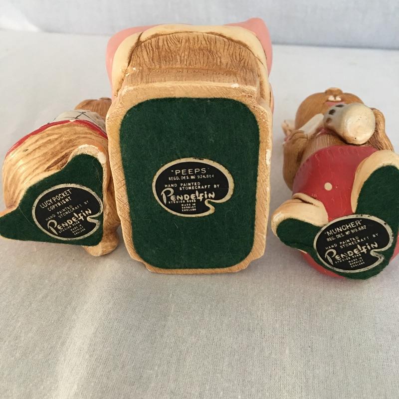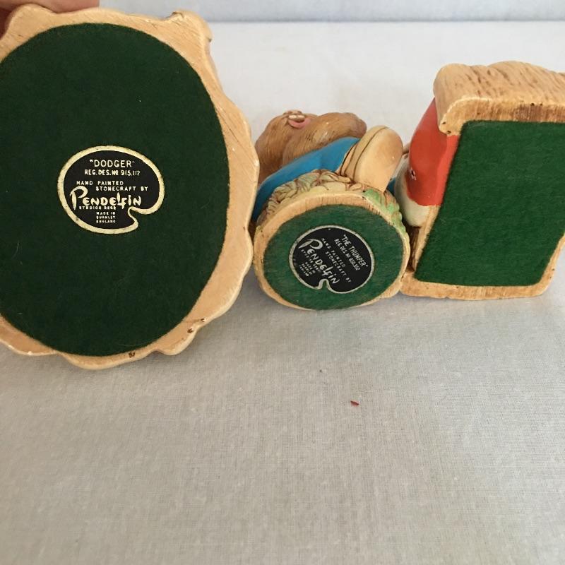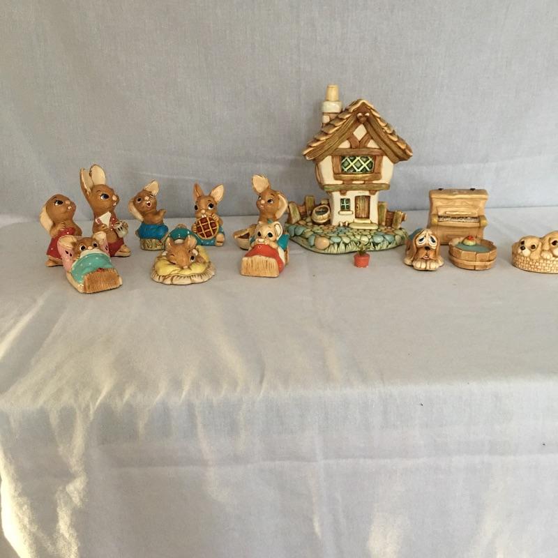 Pendelfin figurines and more includes eleven pieces by Pendelfin, one by Woodlander and one unmarked. Great array of these whimsical creatures. Largest piece measures 4” x 7” x 9”.