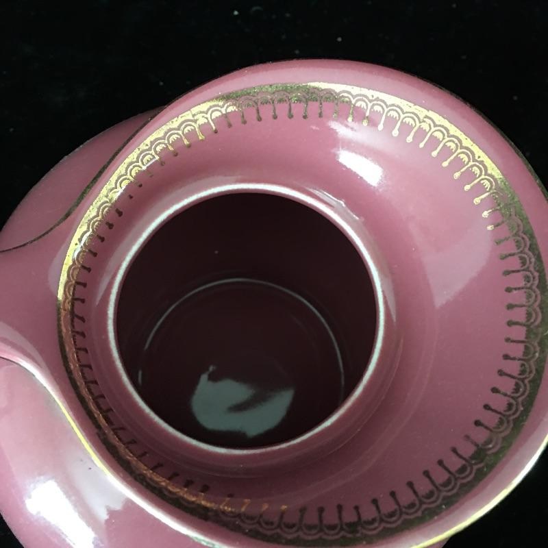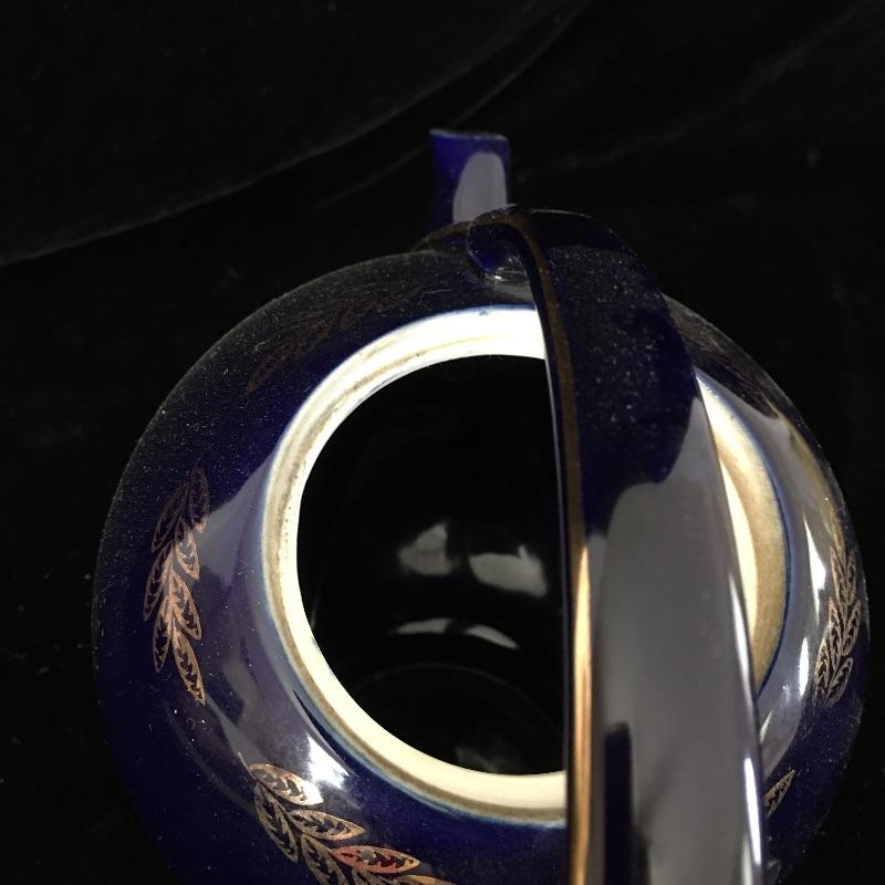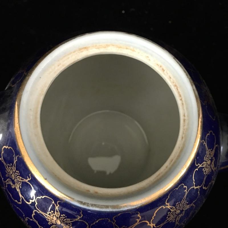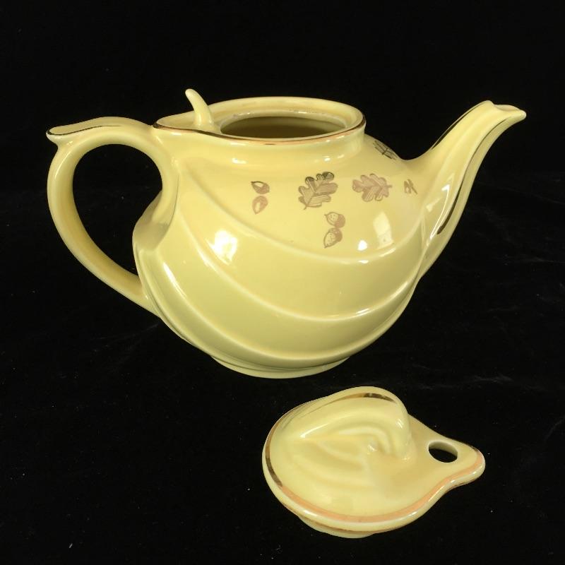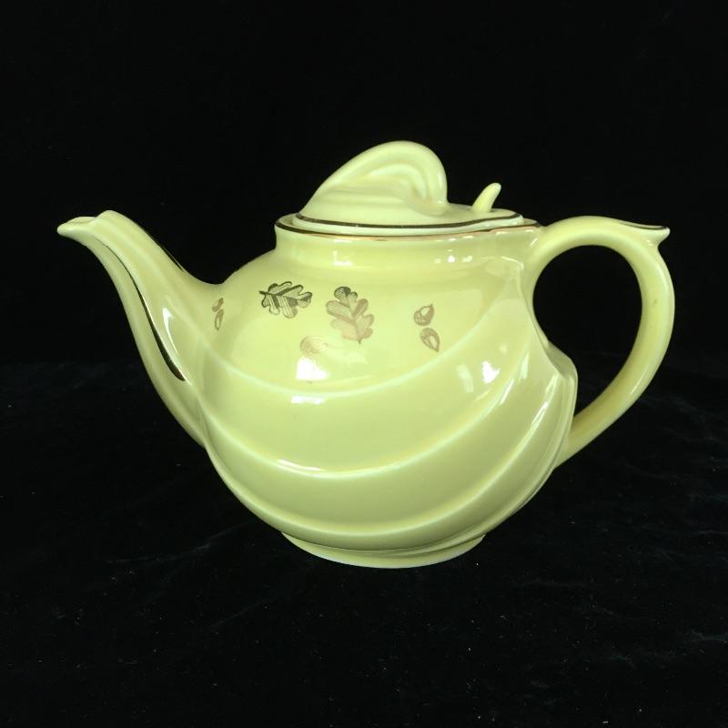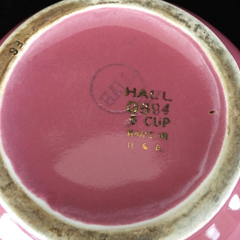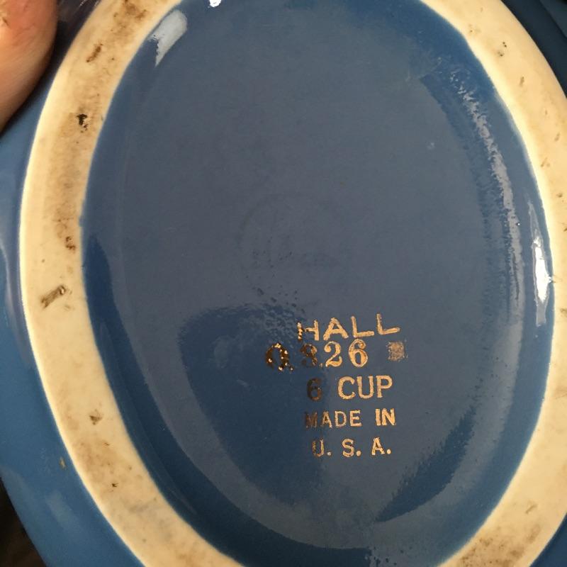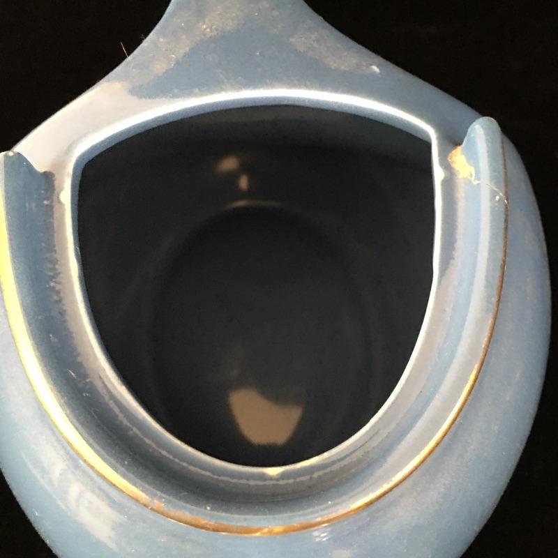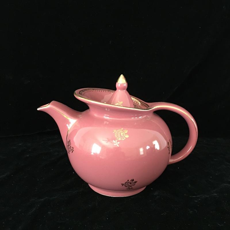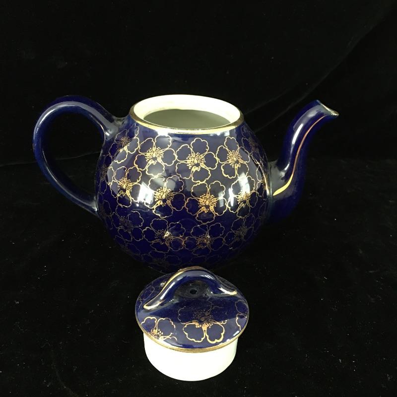Quintuple of Hall teapots includes five teapots in a glorious variety of shapes, styles and colors. Which one will you choose for your first cuppa? Largest teapot measures 5.5” x 10” x 7”. The cornflower blue pot has a small crack in the rim, see photos.