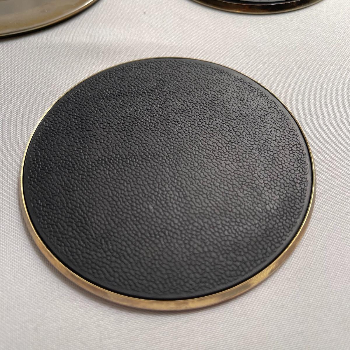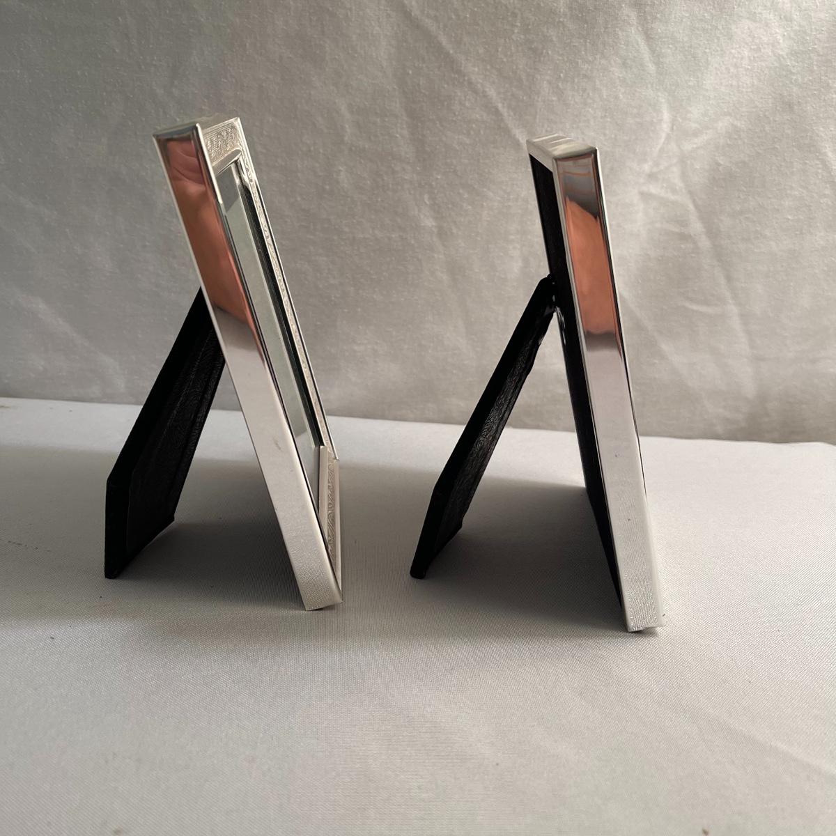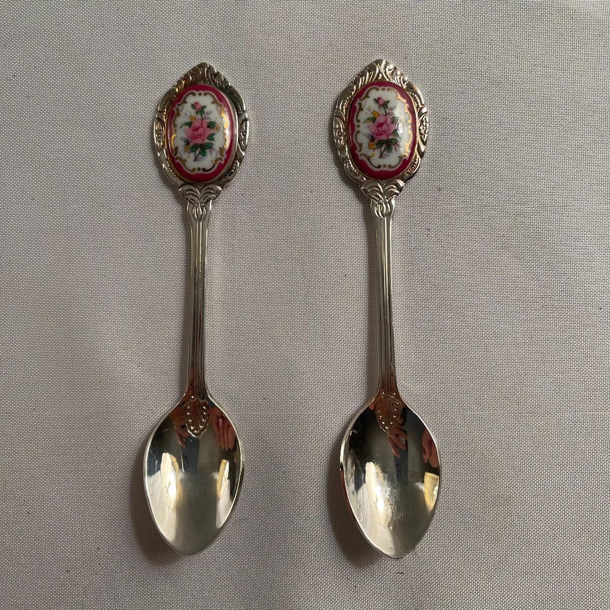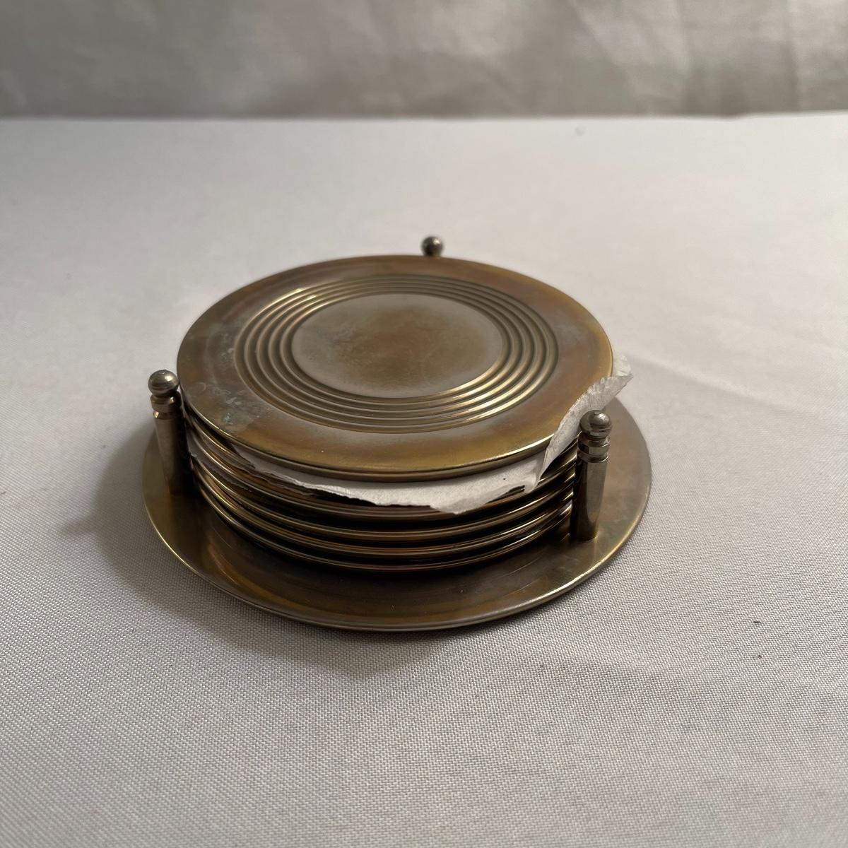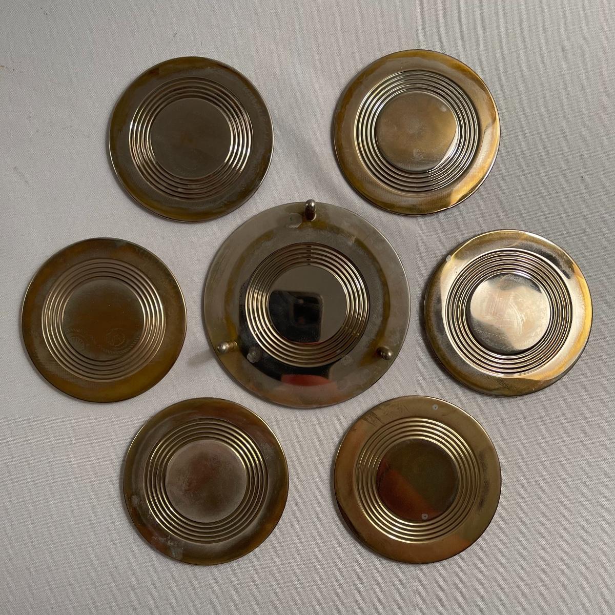 This lot includes silver-plates and silver colored platters, picture frames, bells, coasters, and dishes. The two picture frames are Philip Whitney Ltd. 3.5” x 5” silver-plated frames. Eight stackable glass and silver-plated coasters that say “Leonard, Italy, Silverplate” are included alongside another set of coasters; a set of six flat, silver-plated, that sit in their own holding dish. Two bells, one of which says “Proffit Reunion 1987” and “Reed and Barton” are a part of this collection as well as two small silver-plated teaspoons that were made in Korea and have decorative ceramic pieces on their handles. An ovular glass dish sits in a silver-plated holder with handles, similarly, two shallow glass dishes sit in their silver-colored holder. Lastly two serving platters, one made in Hong Kong and lightweight and the other says “Rogers and Bro 1772” and is silver-plated and heavier in weight.