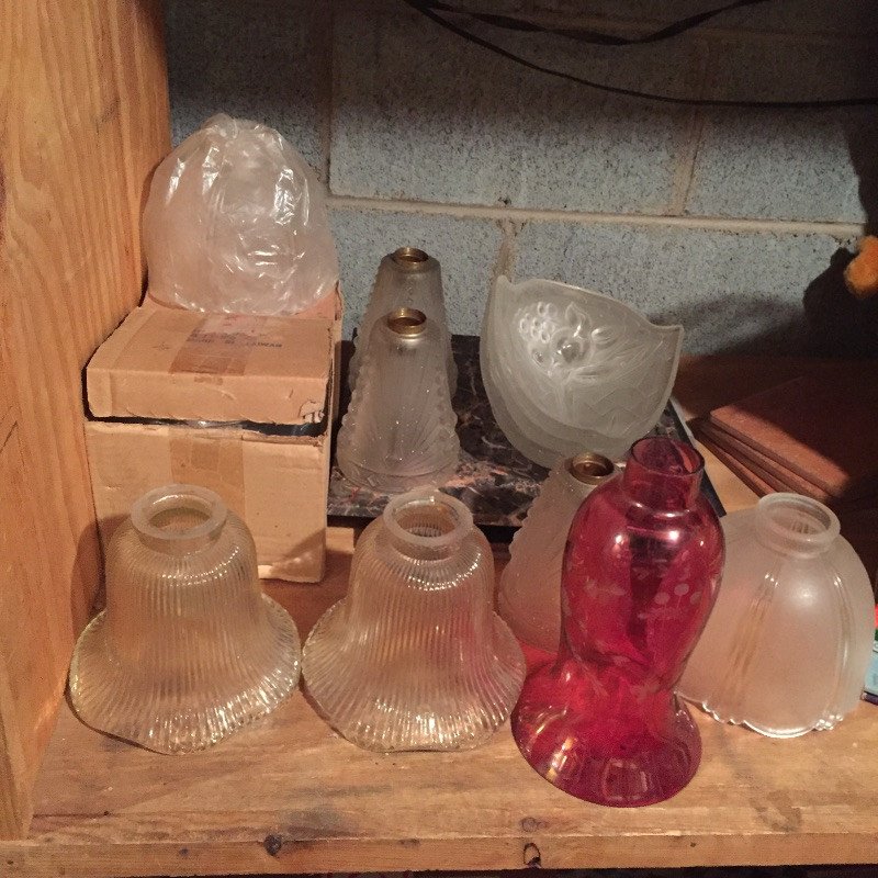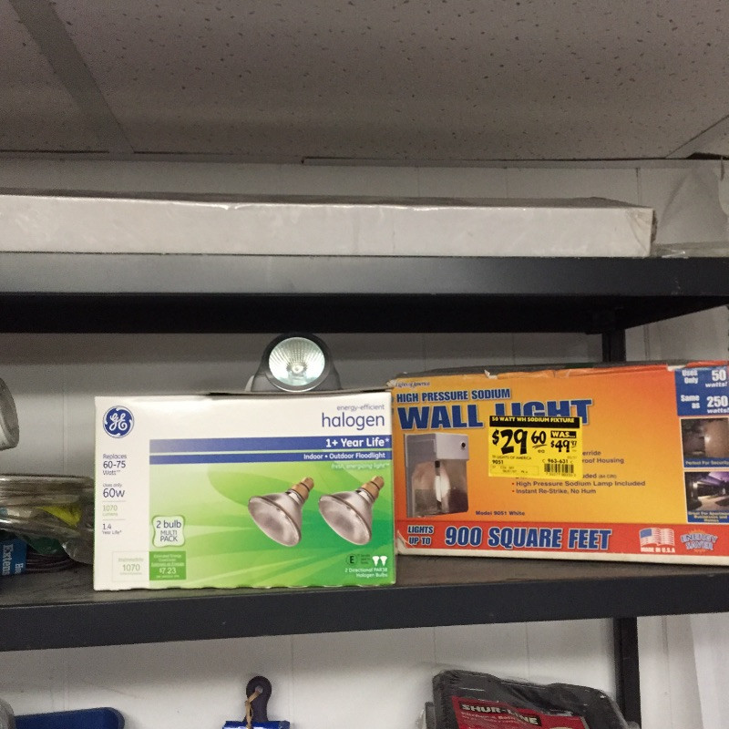 There is a little bit of everything in this lot! Halogen floodlights, outside wall light, adhesive drawer covering, extension cords, multiple glass light shades, tile trivets, white maple counter trim, pond accessories, small amount of cork flooring and the list goes on, see images.