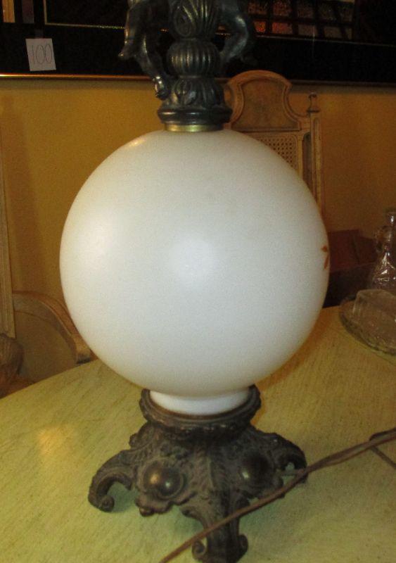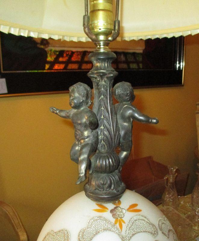 Lot 178 - Vintage Brass and Glass Cherub Lamp LOCAL PICK UP ONLY
