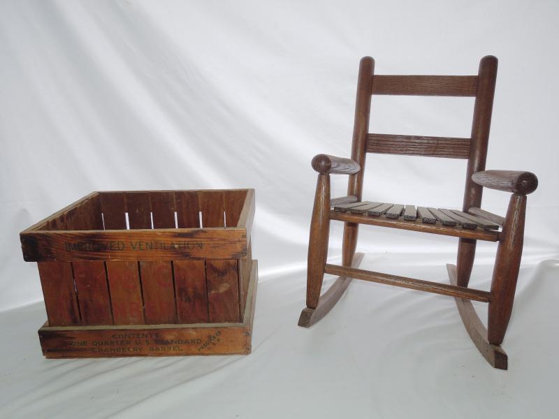 Lot 178: Vintage Cape Cod Fruit Crate and Child's Rocker
