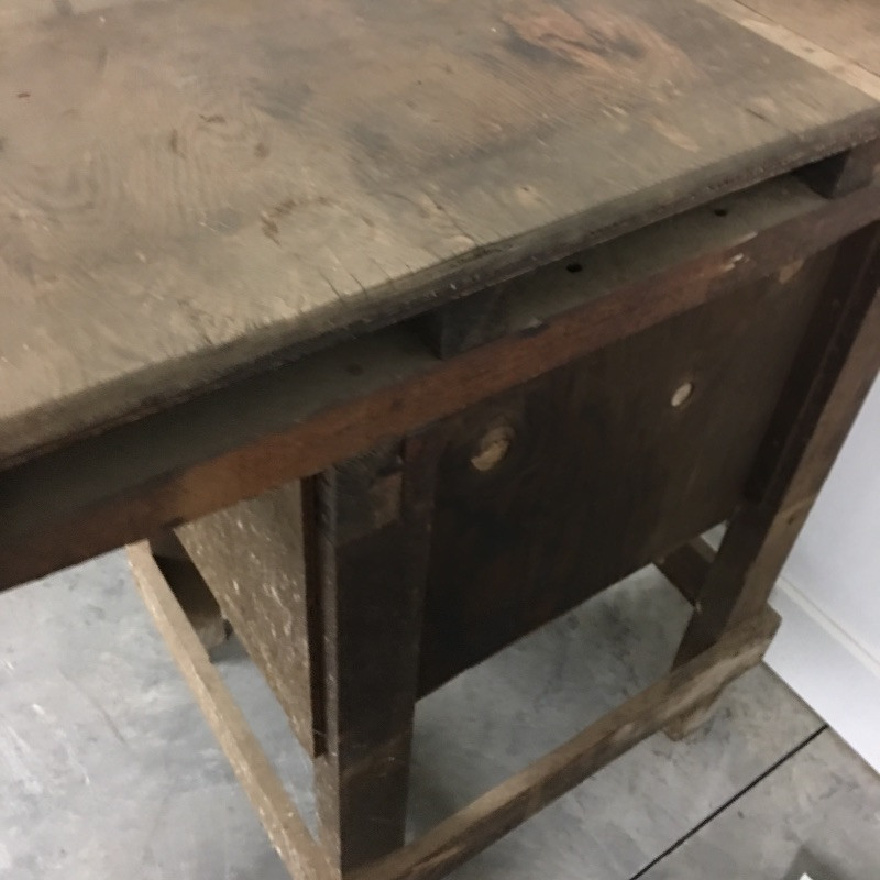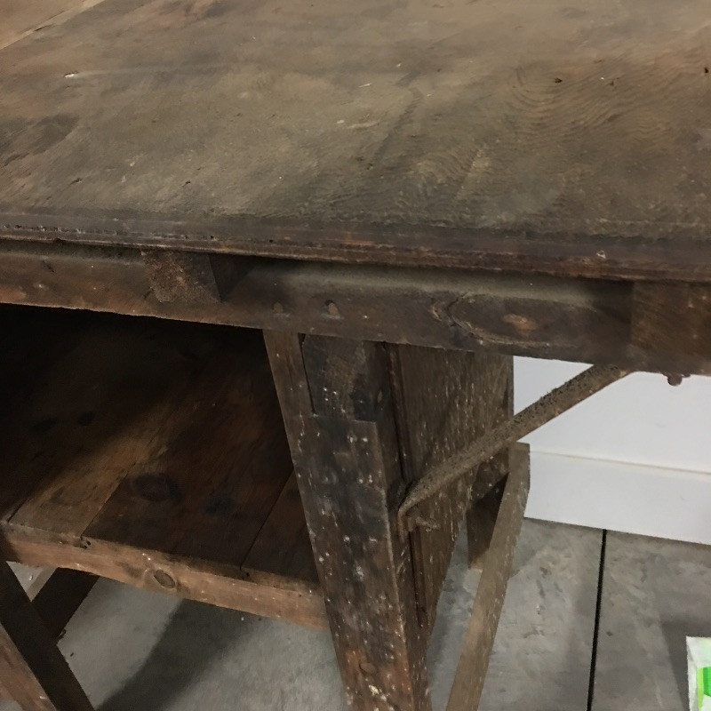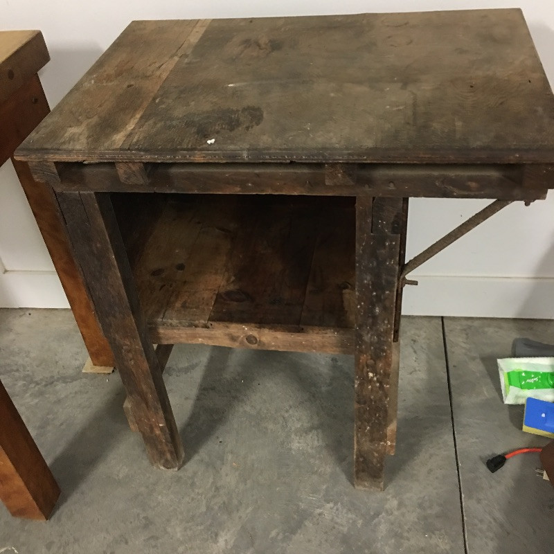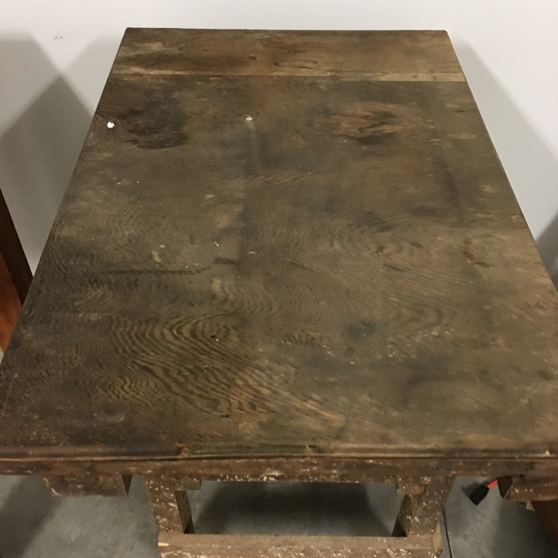Work table with shelf will be great in your garage or barn for storage and as a work table. Needs a good clean up unless you like its aged look. Table measures 21” x 31” x 36”.