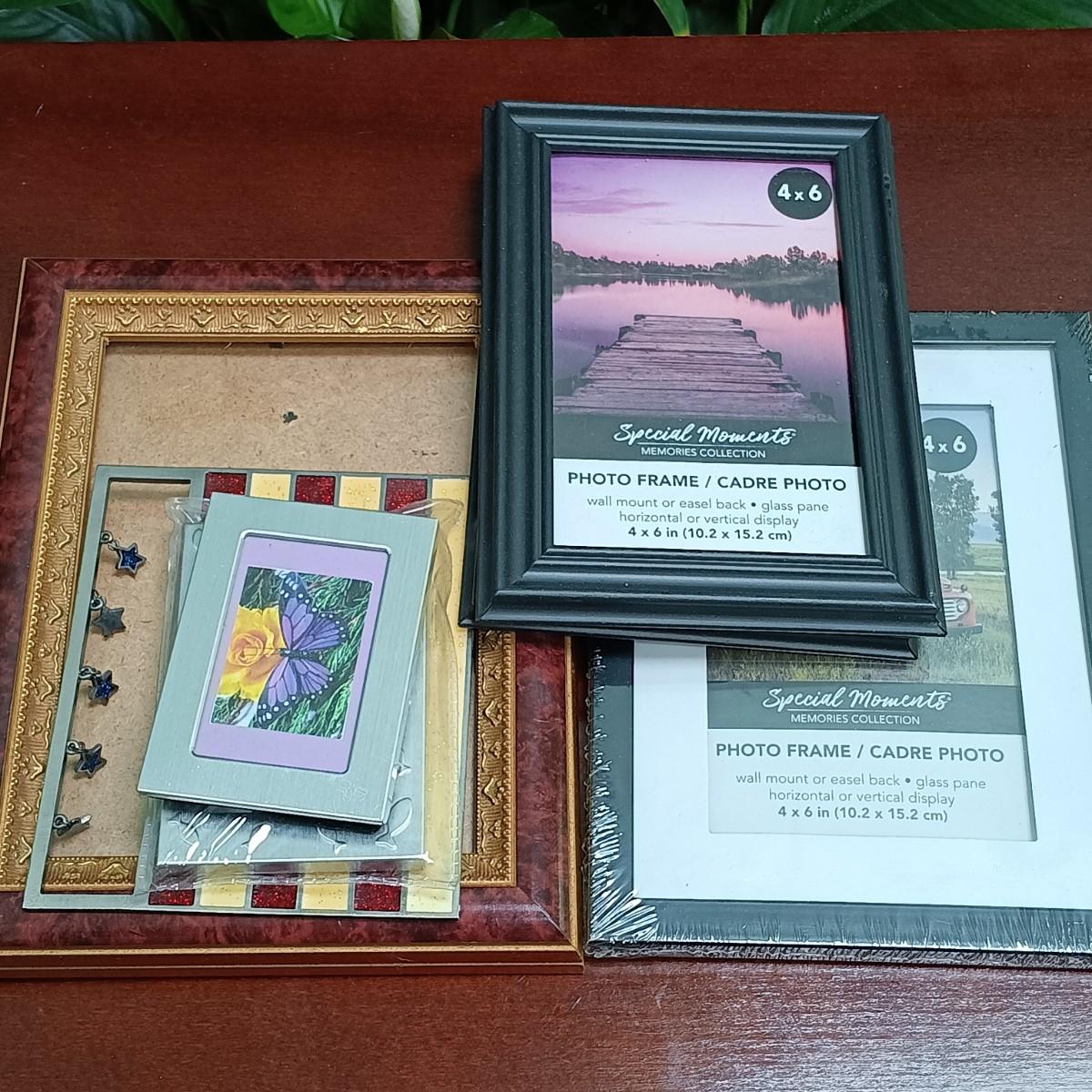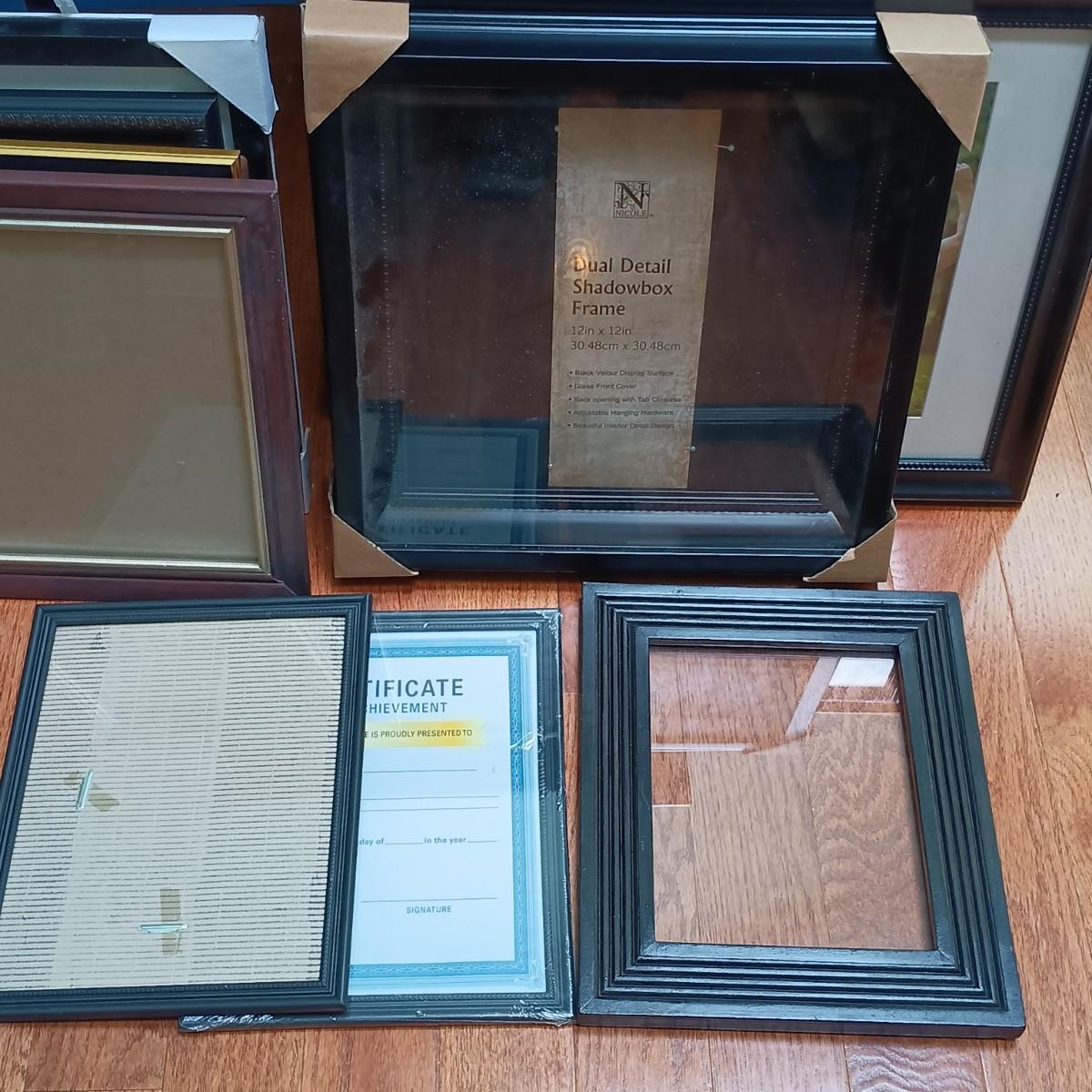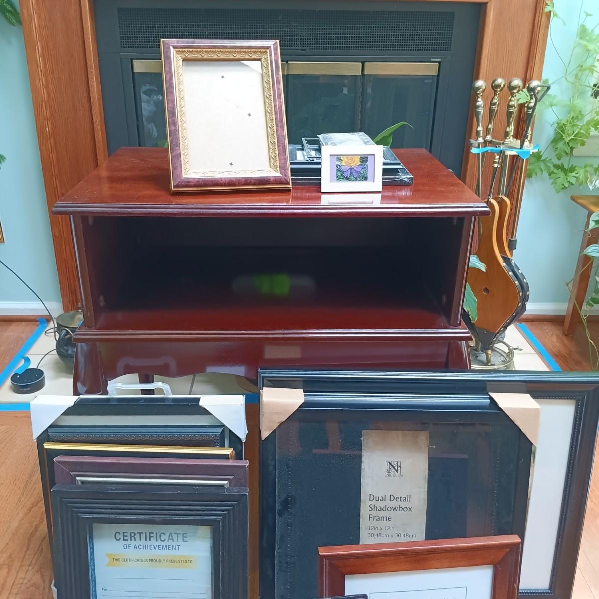 LOT 178L: Wood Side Table with Large Collection of Picture Frames