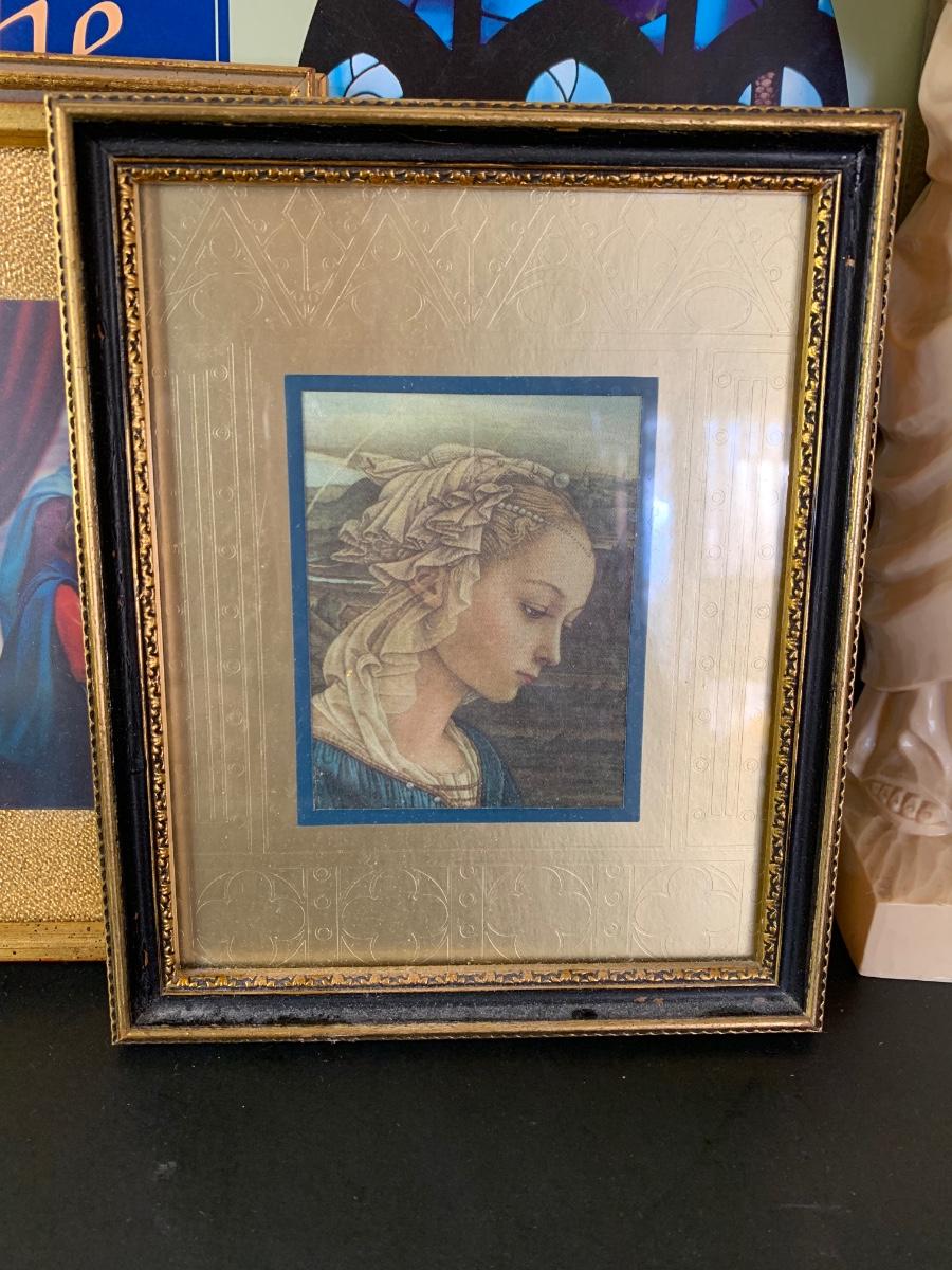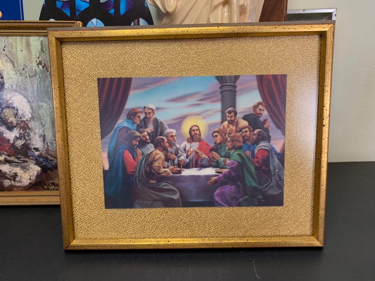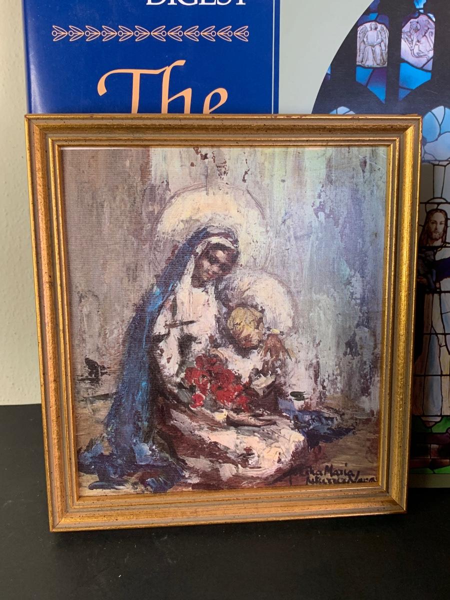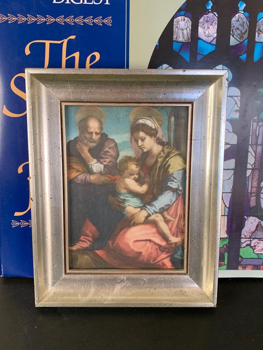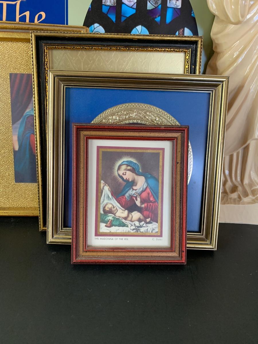 Includes crosses, books, and religious prints. Includes Colezione Madonnas Il Riposo plate.