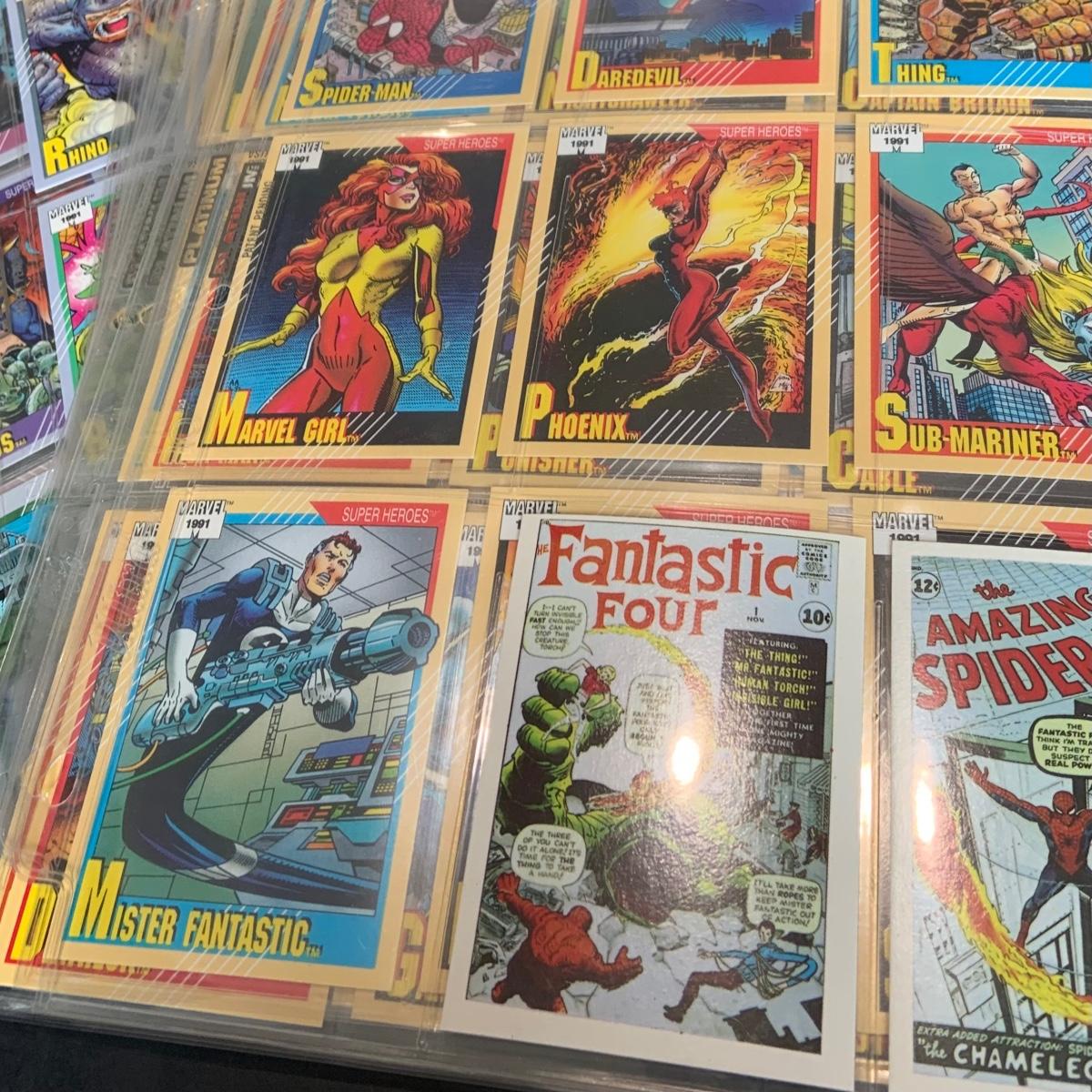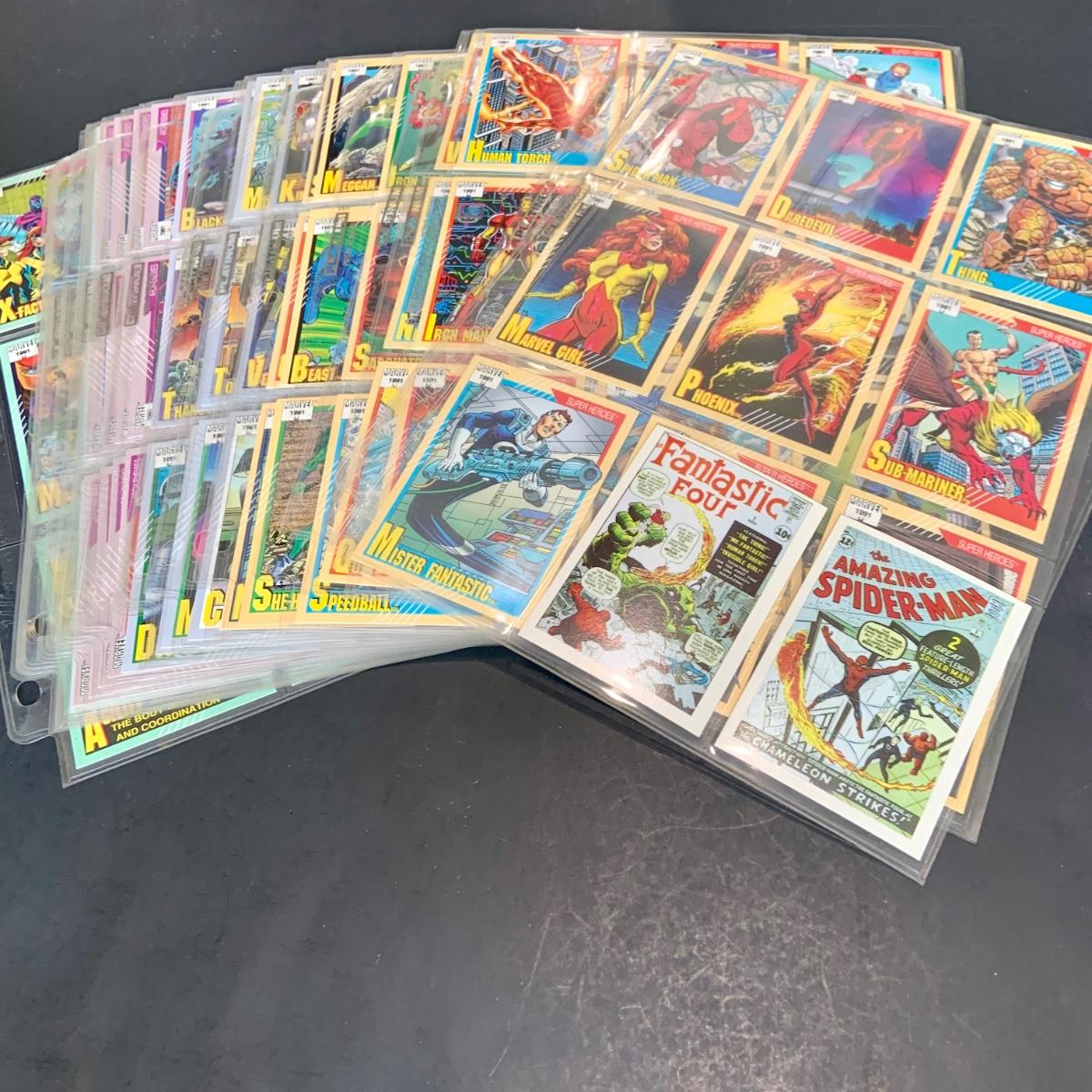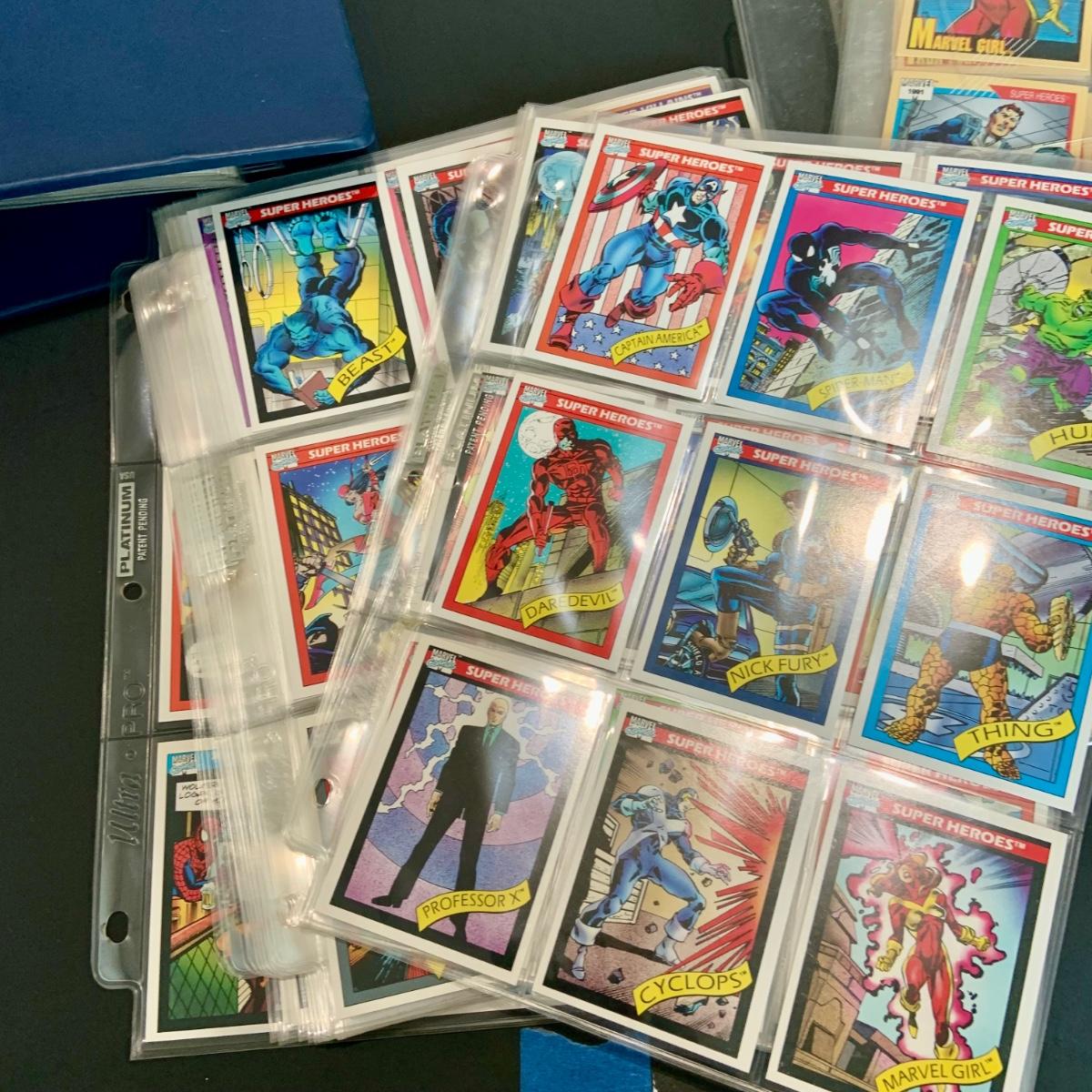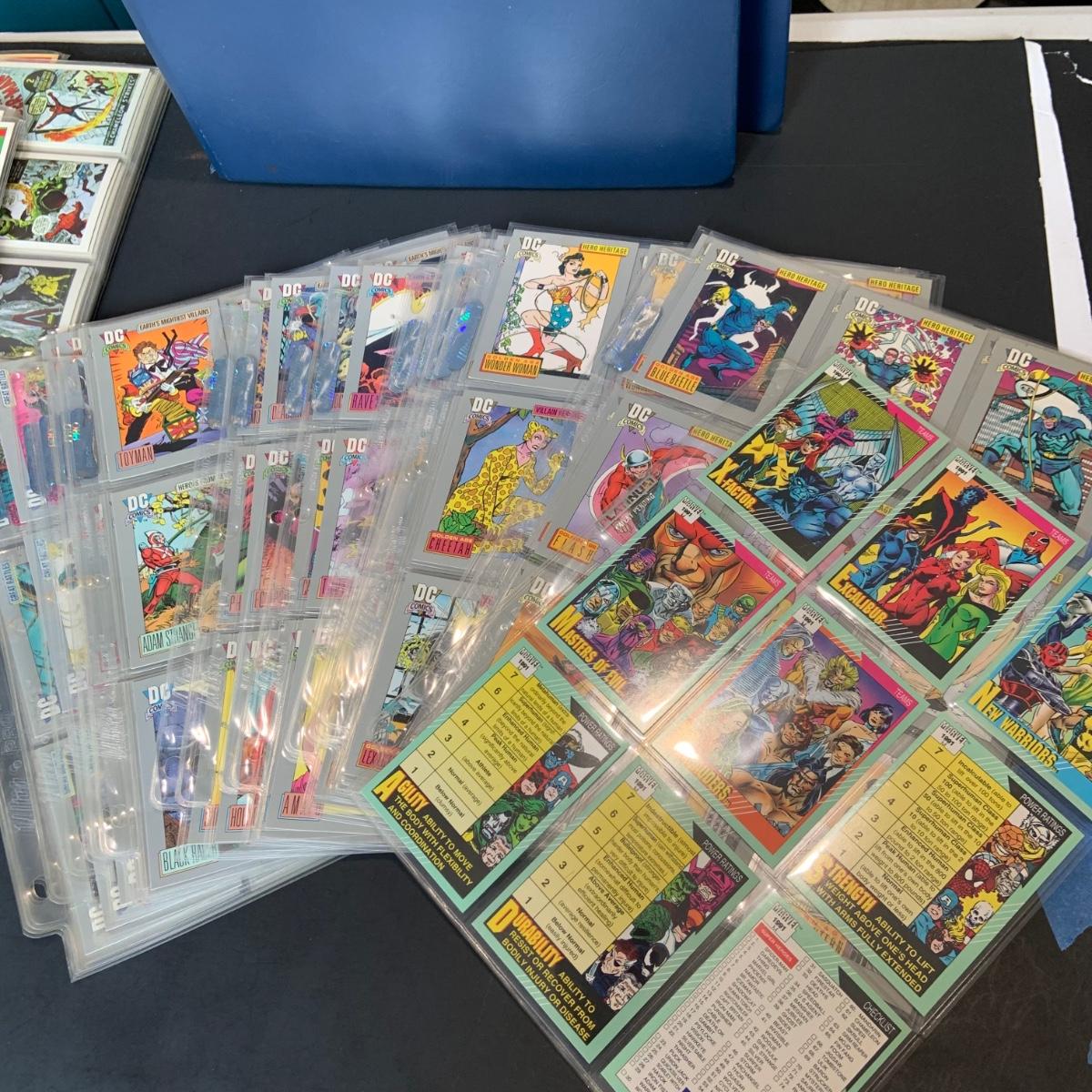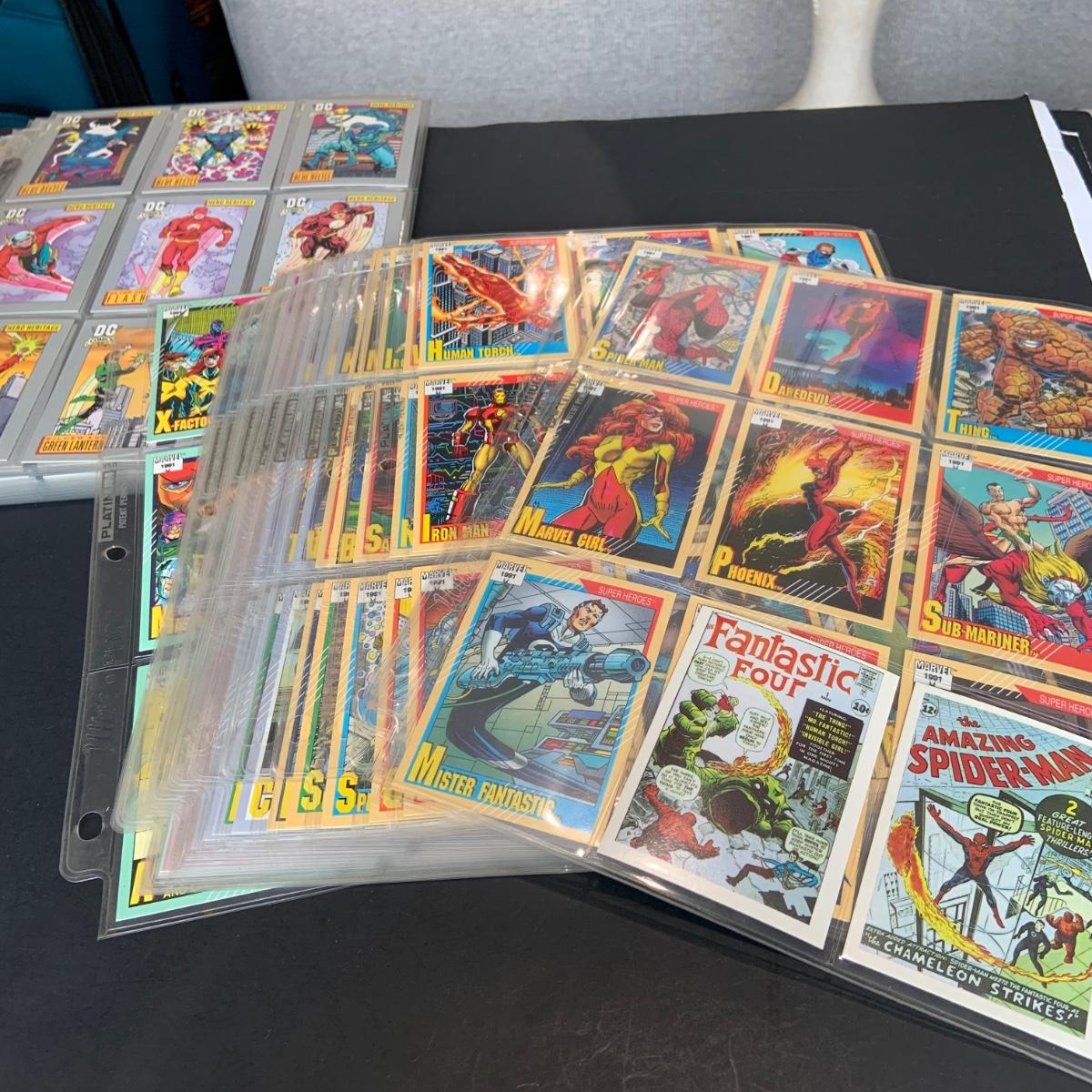 LOT 179: Binder full of 3 complete card SETS: 1990 Marvel; 1991 Marvel; 1991 Impel DC Hero Heritage