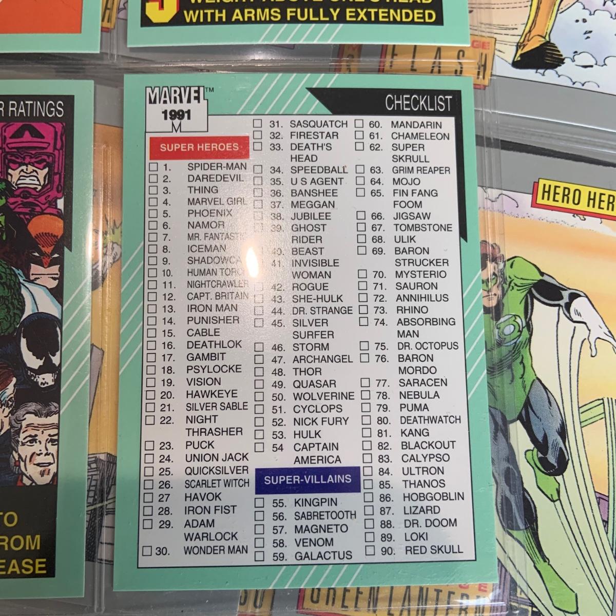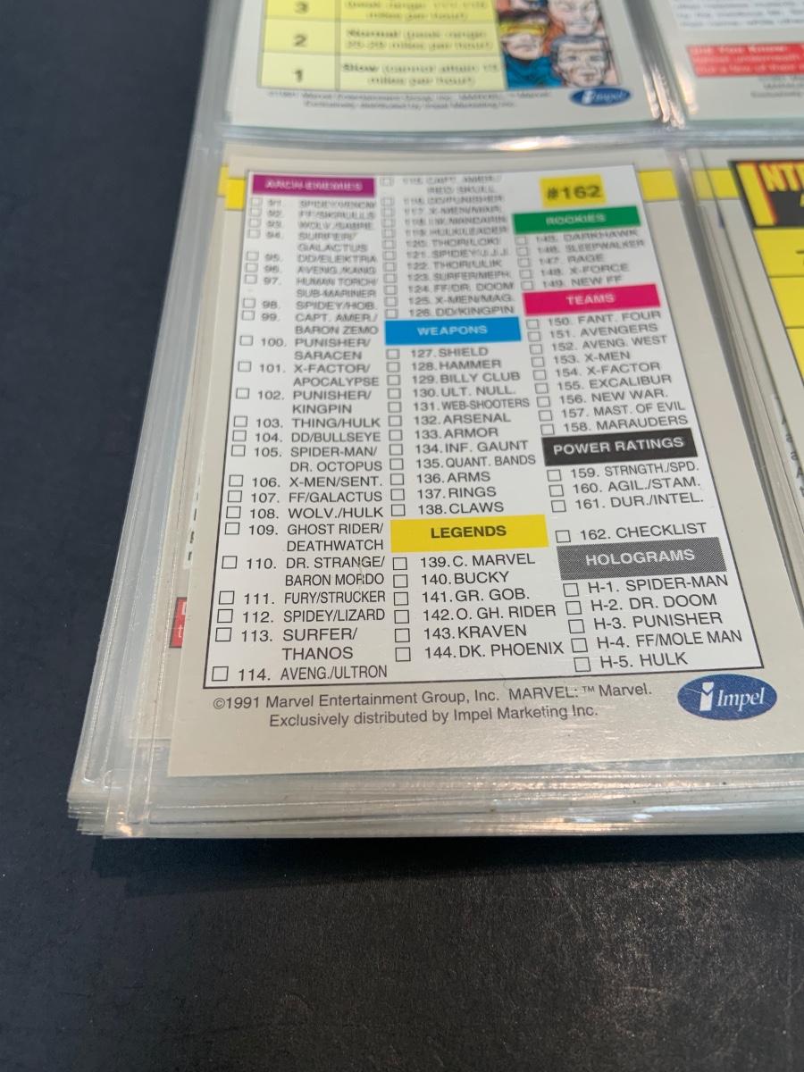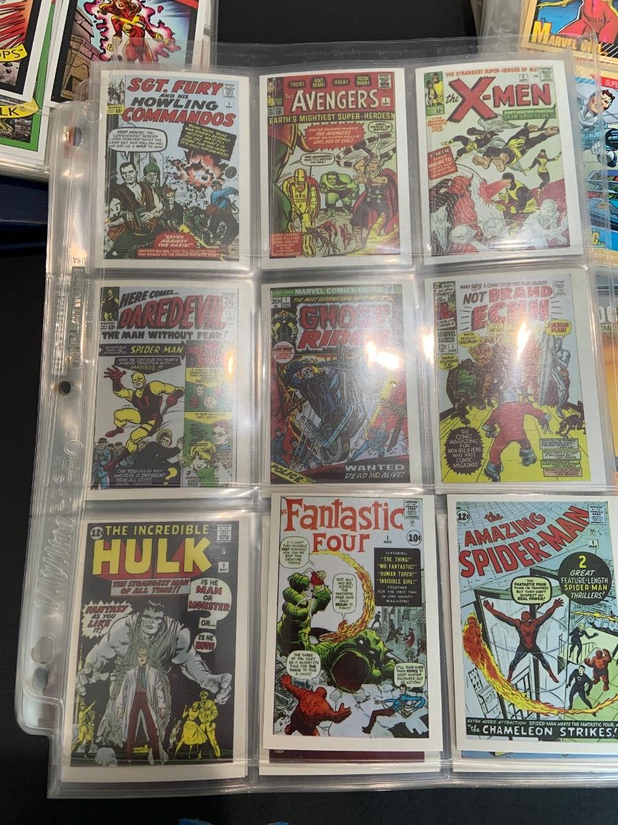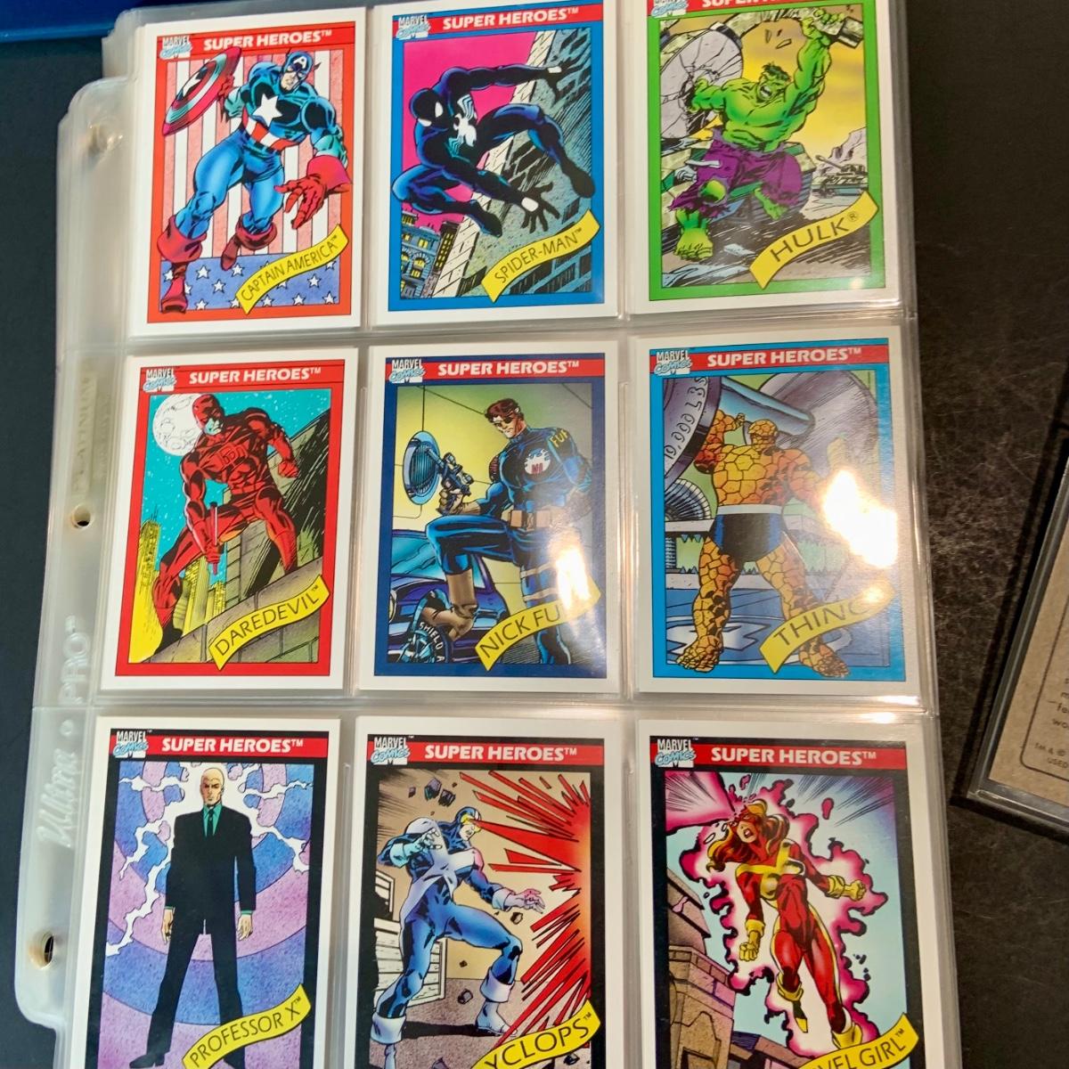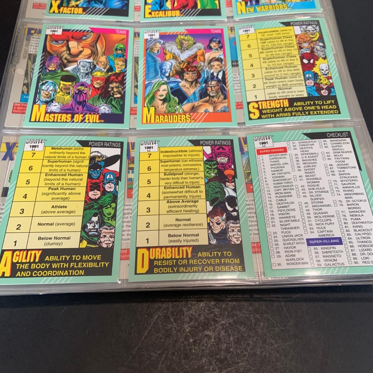 LOT 179: Binder full of 3 complete card SETS: 1990 Marvel; 1991 Marvel; 1991 Impel DC Hero Heritage