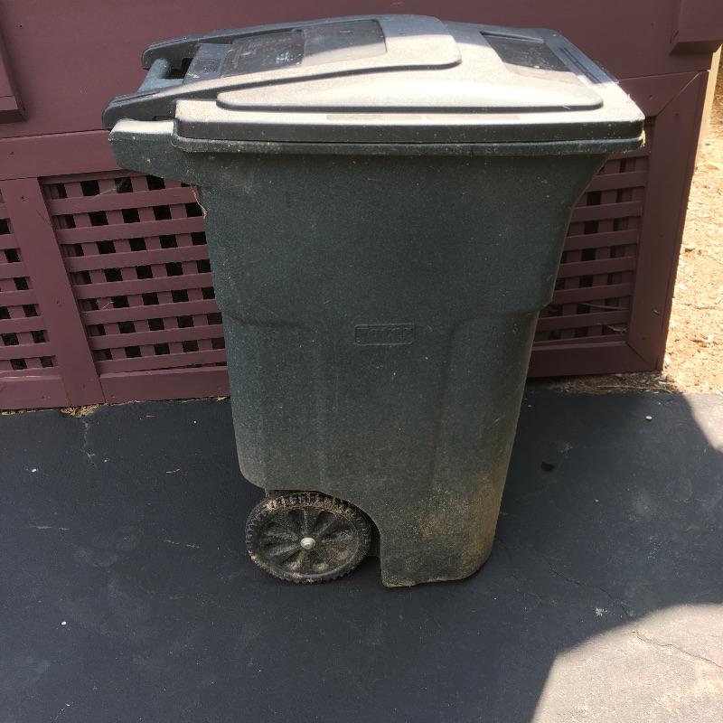 Grey bin on wheels measures 23” X 32” x 39” . Local pick up only.