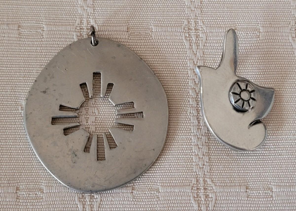 Lot 179: Mid Century Modern Pewter Pendant and Brooch