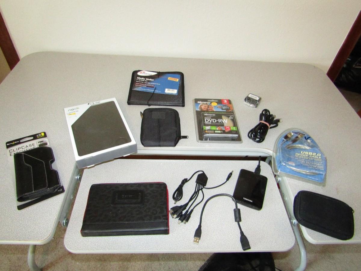 CLIP AND NOOK CASES, TOSHIBA STORAGE, TABLET CASE, MEDIA WALLET, MINI DVD-RW'S, NEW USB CABLE, ETHERNET CABLE AND MORE
