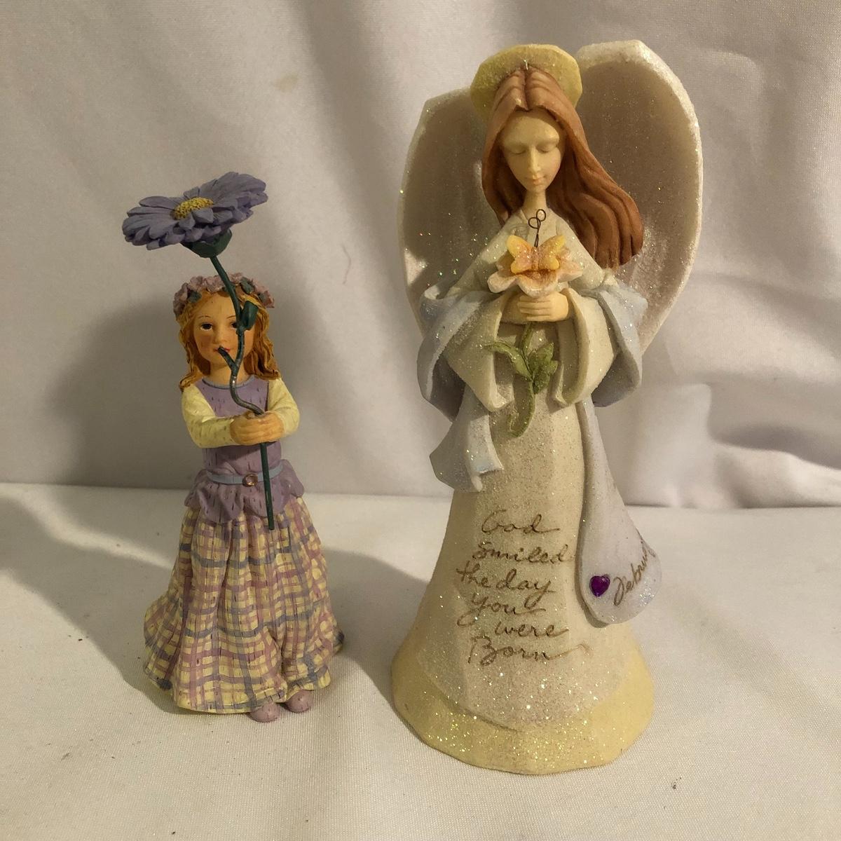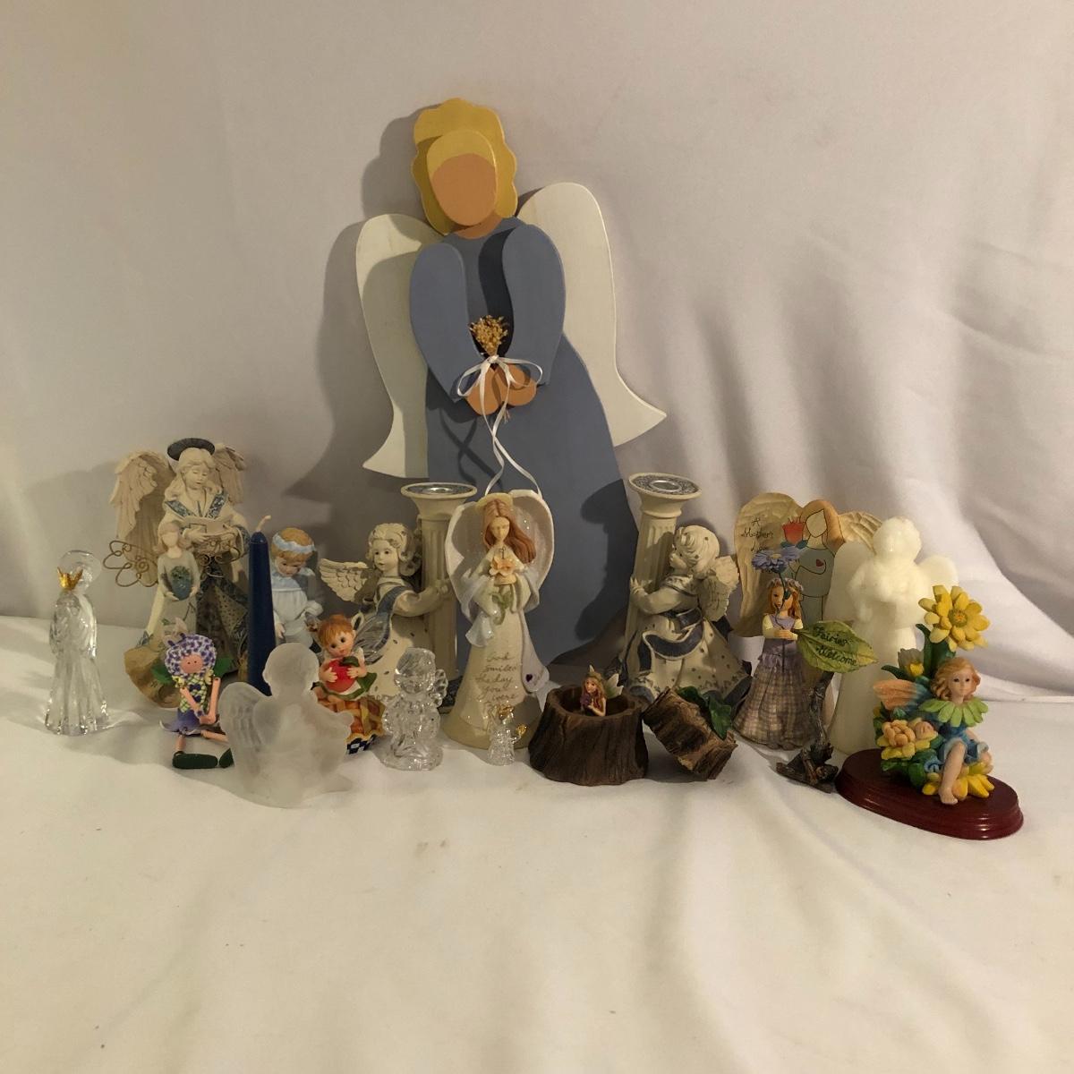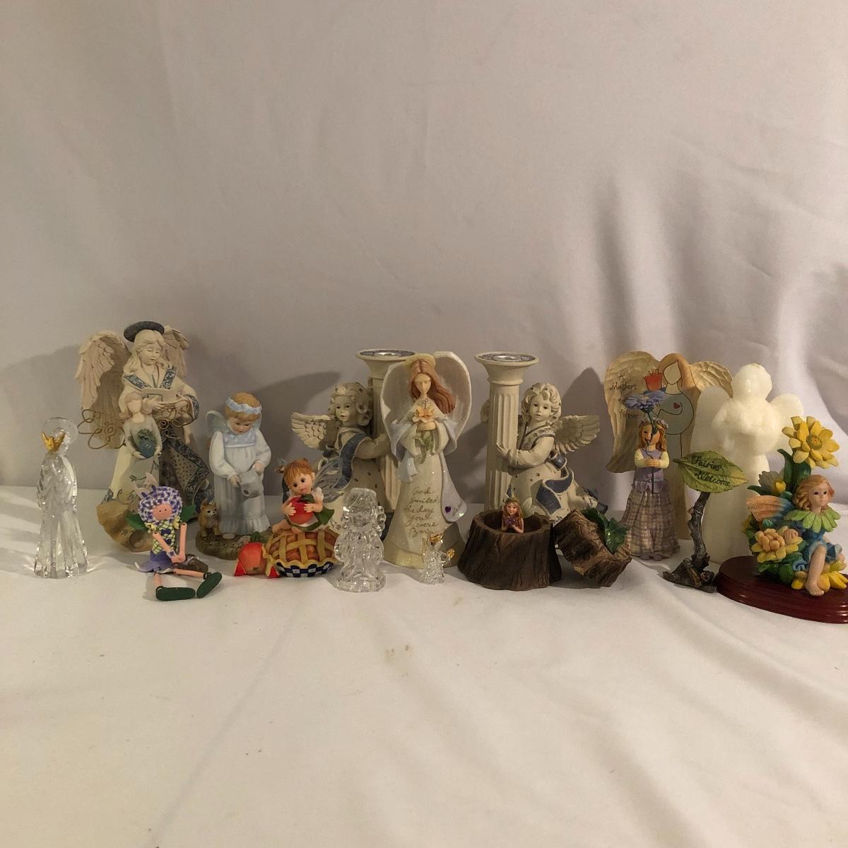 This lot is for all you folks that could use angels in your life. This Lot includes two Sarah’s Angels, wooden wall art, Wildflower Angel, Heavenly Woods figurine, glass candle holder, Apple Pie fairy, Gardening Angel, Angel musical figurine and more. Figurines are made from glass, resin, wood, wax and other materials. The tallest angel is the Wooden angel which measures 10” x 18” x 2.5”.