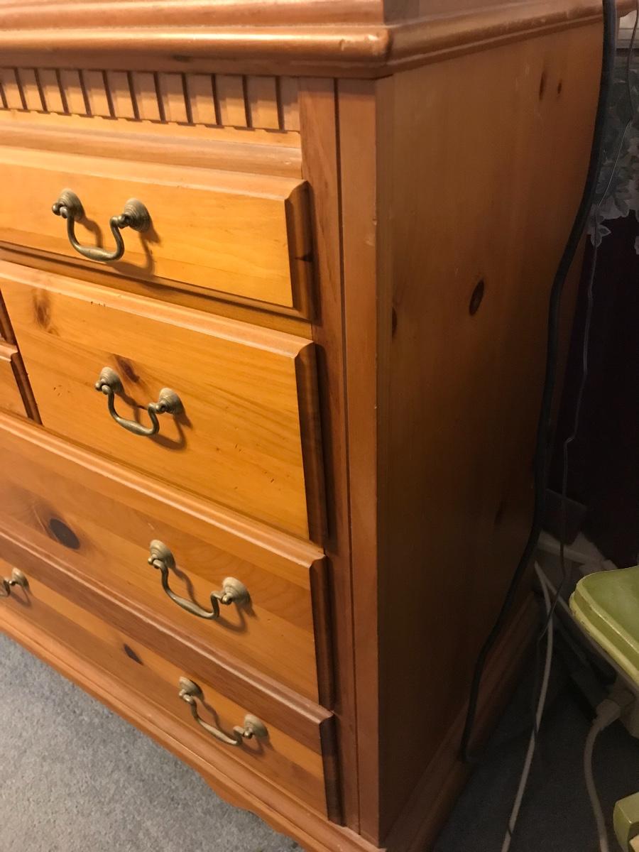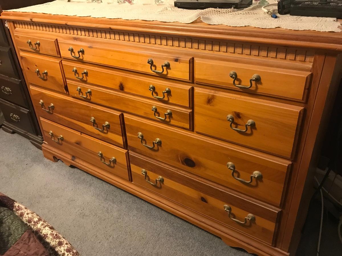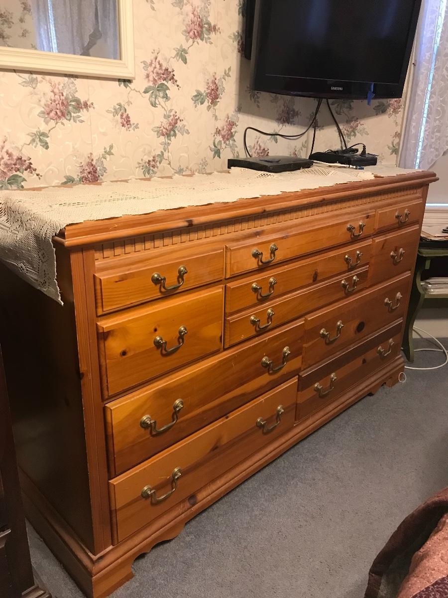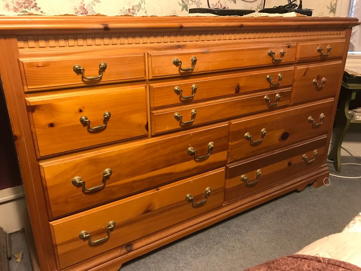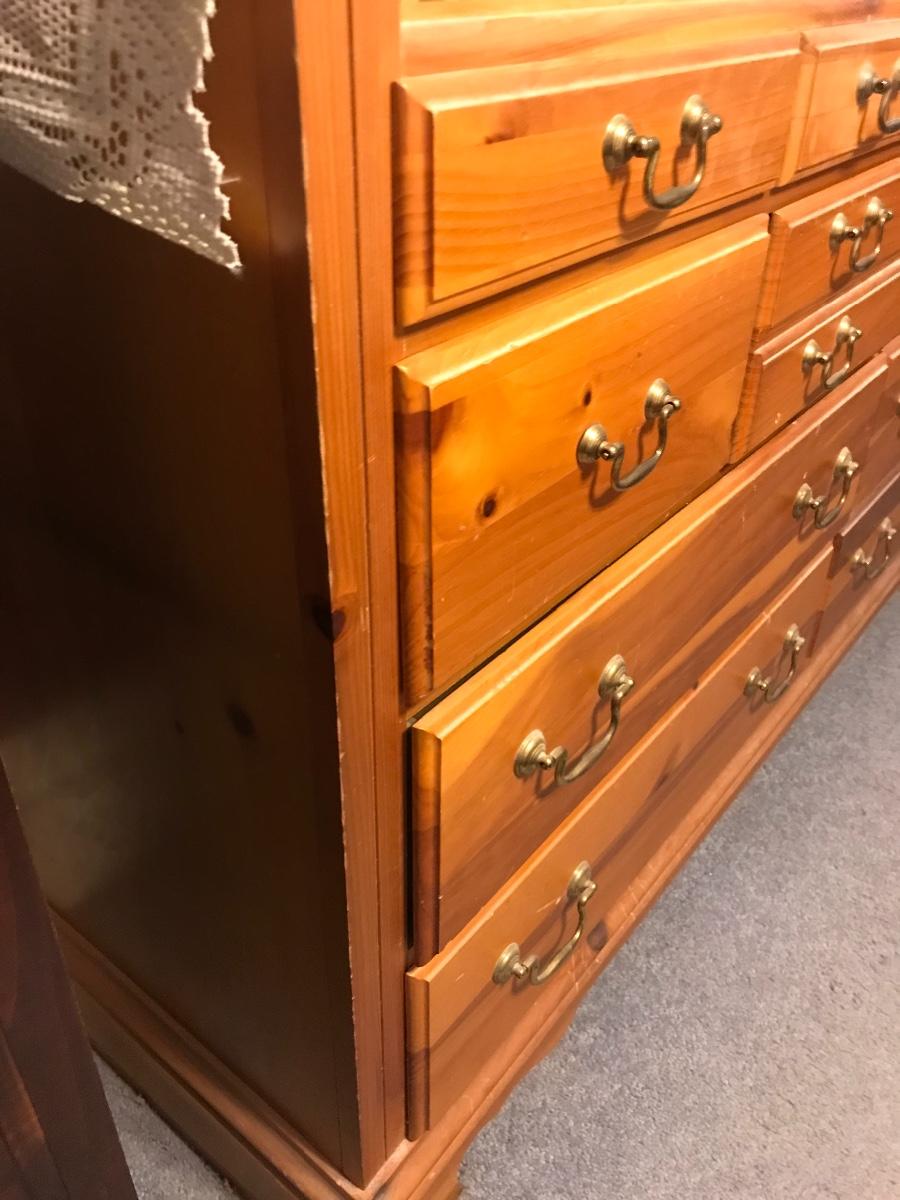 All wood Basset dresser with an abundance of drawers. Located on second floor. Please see all pictures as they are the best representation of the items. The pictures show condition, measurements if taken, and what is included in the lot. Due to the large amount that we photograph and the time frame, we are not always able to take measurements. All items unless noted, are pre-owned and have been used. If you purchased furniture, you must bring help. We do not allow one person to carry large furniture out on their own. Bring help, tools and a truck for the safety of our client’s homes, and your personal safety. Company policy. Thank you.