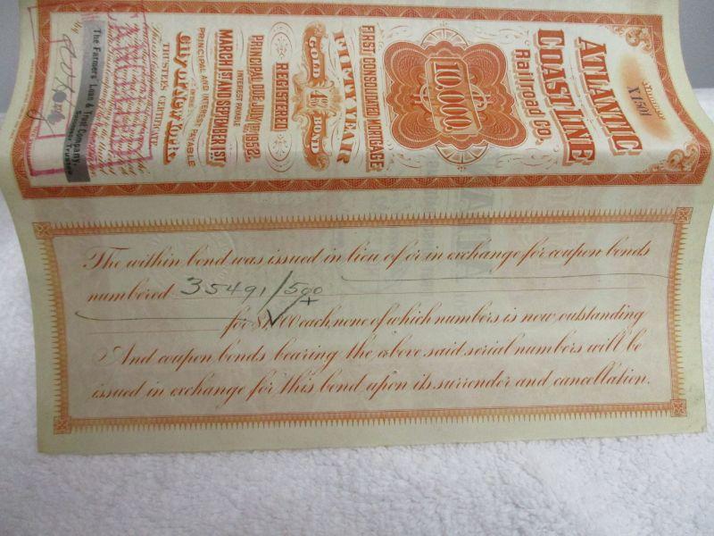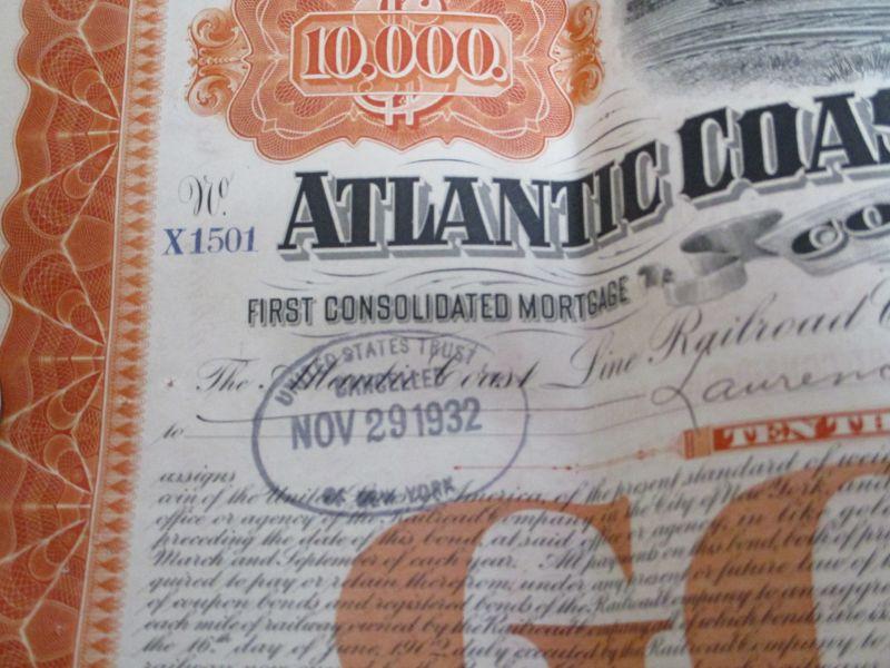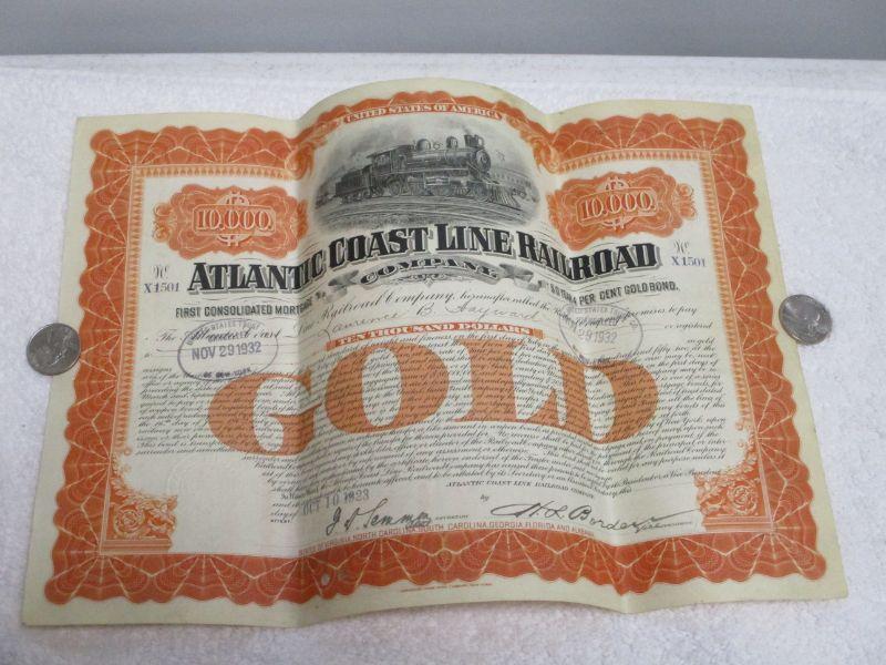 Lot 179 - Gold Bond - $10,000 - Atlantic Coast Line RR Co - 1932