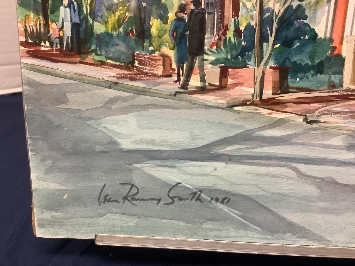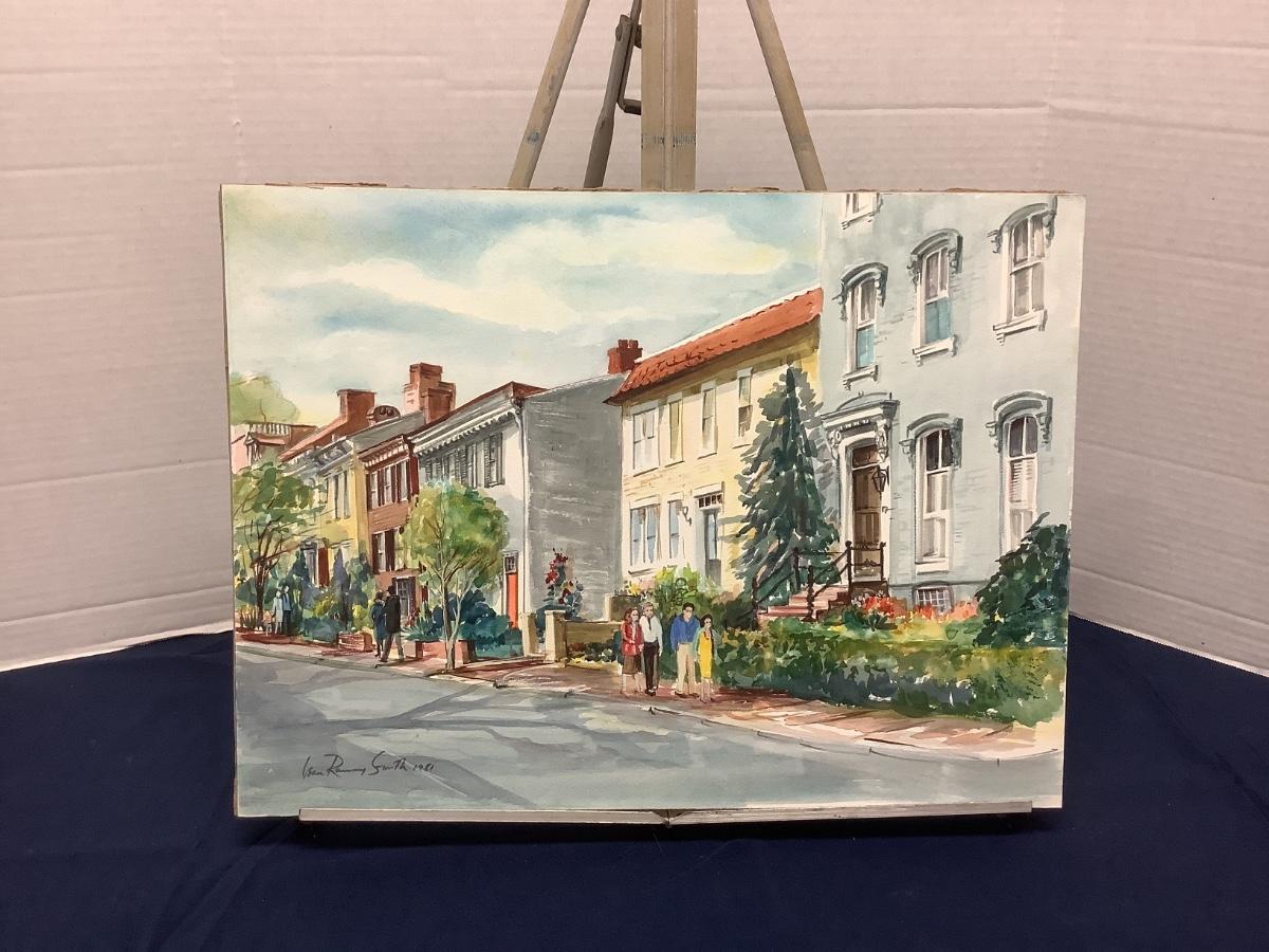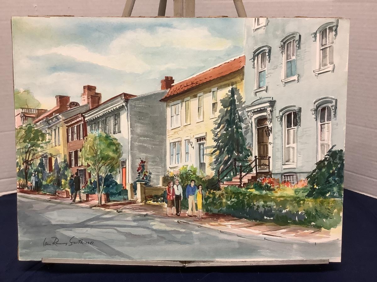 E - 179 Jean Ranney Smith Original Watercolor Painting on Board “ Group Stroll “ 1981