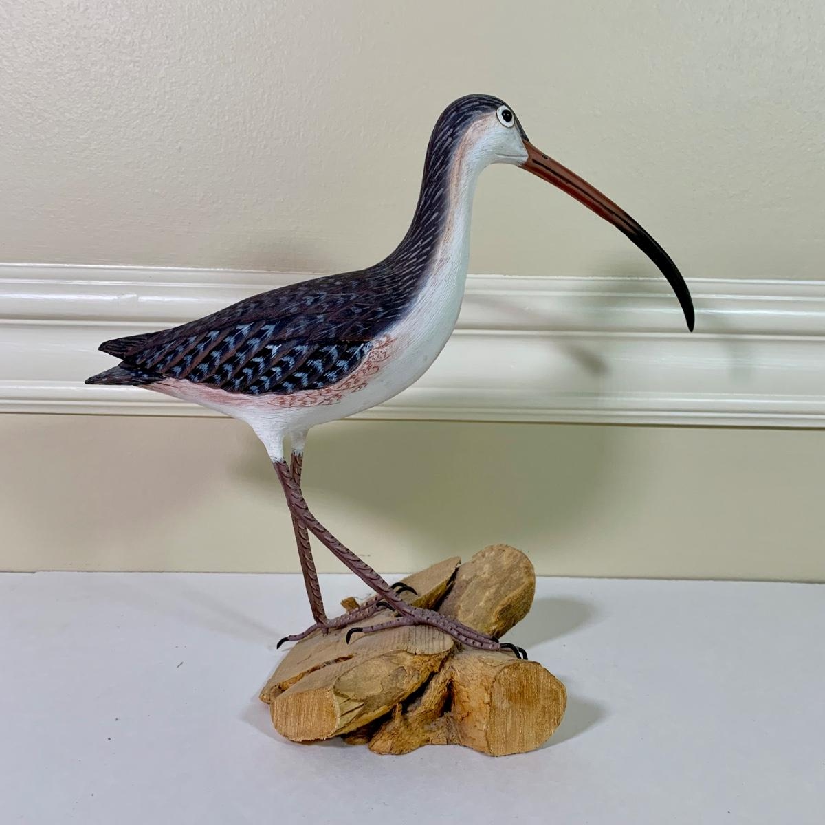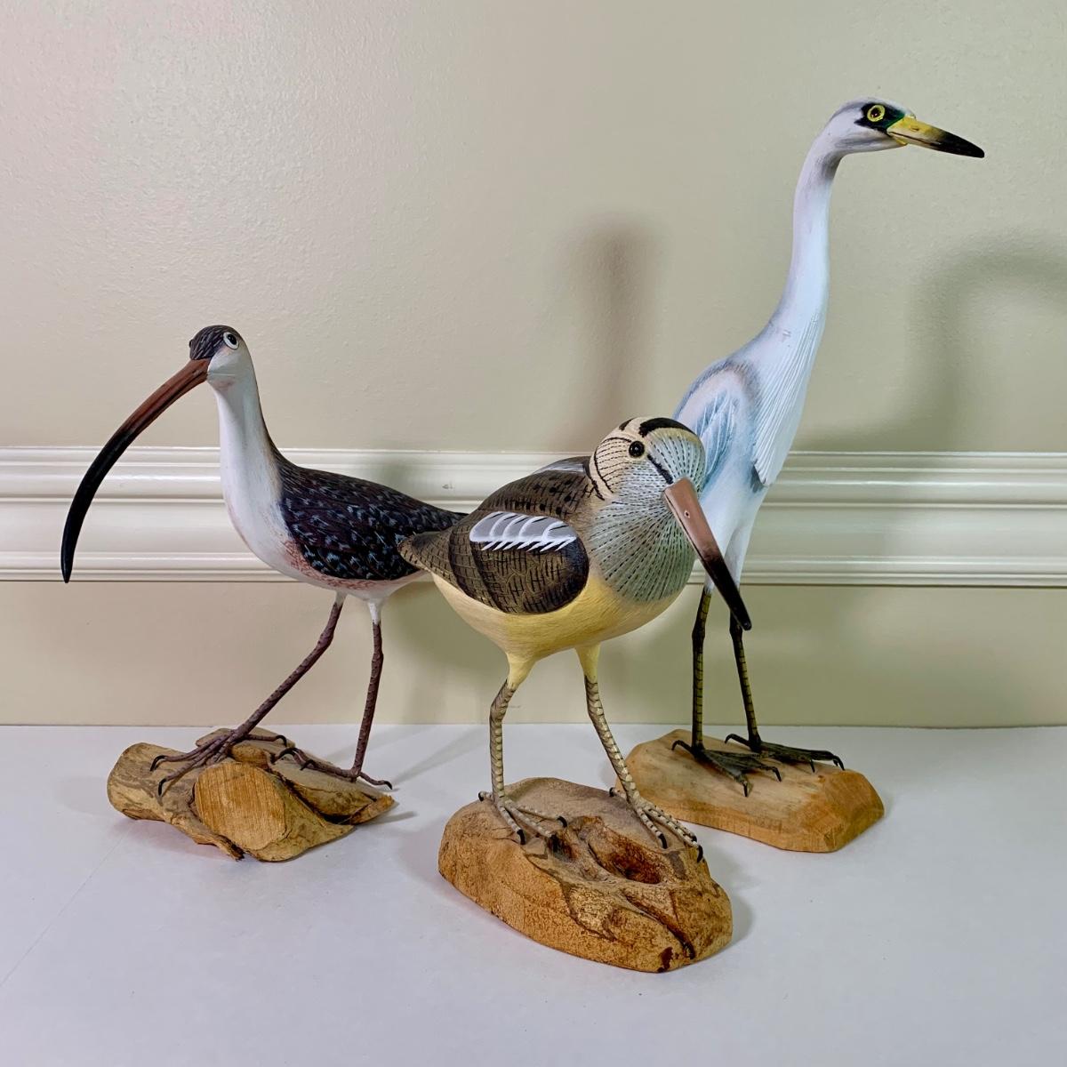 LOT 179 L: Long Billed Curlew (Shorebird), Egret, & Woodcock Wooden Decoys