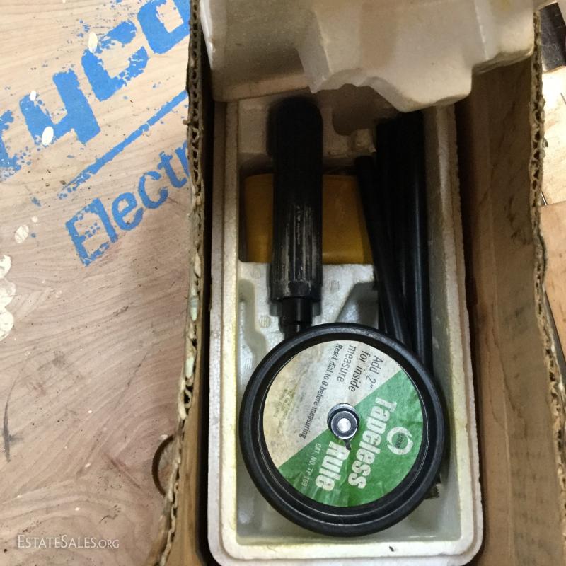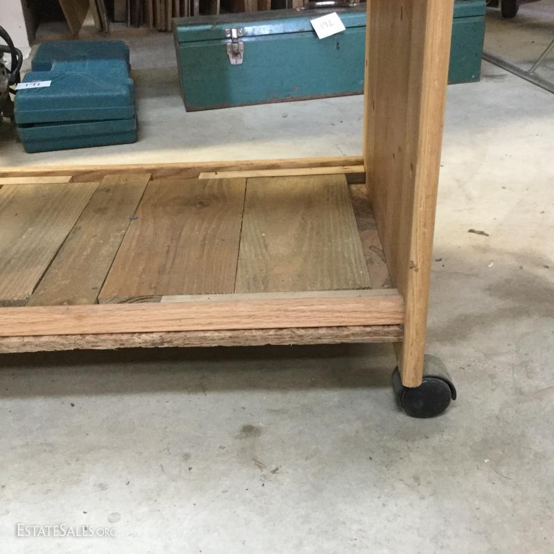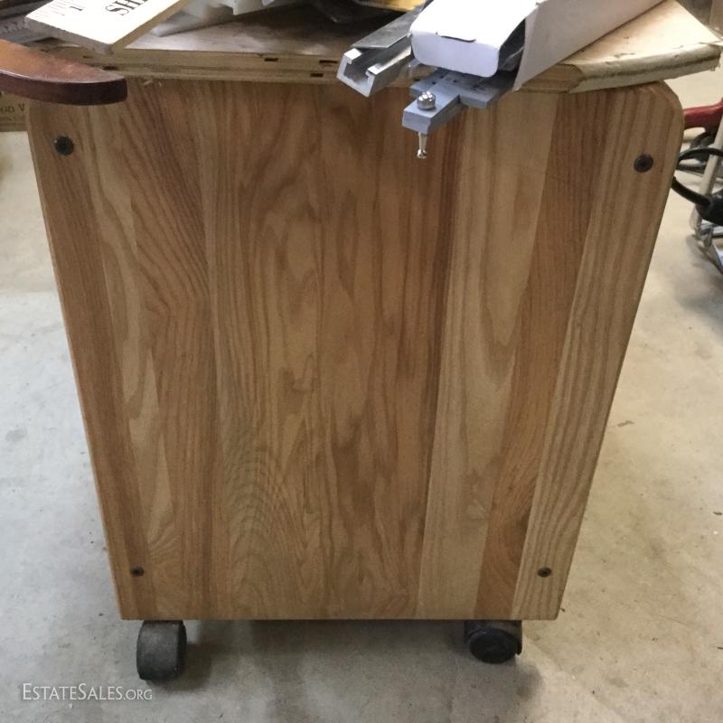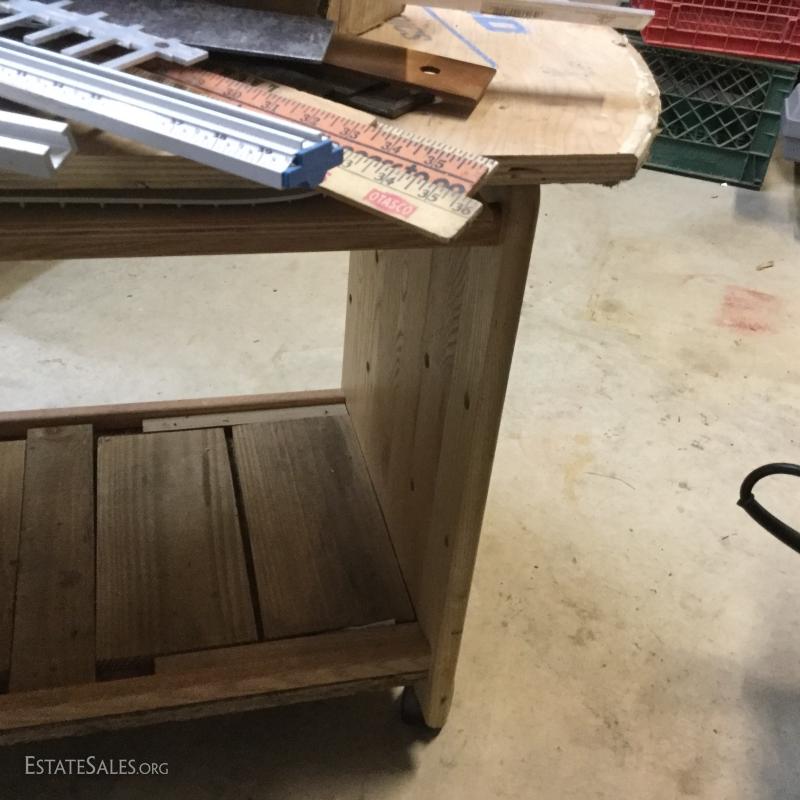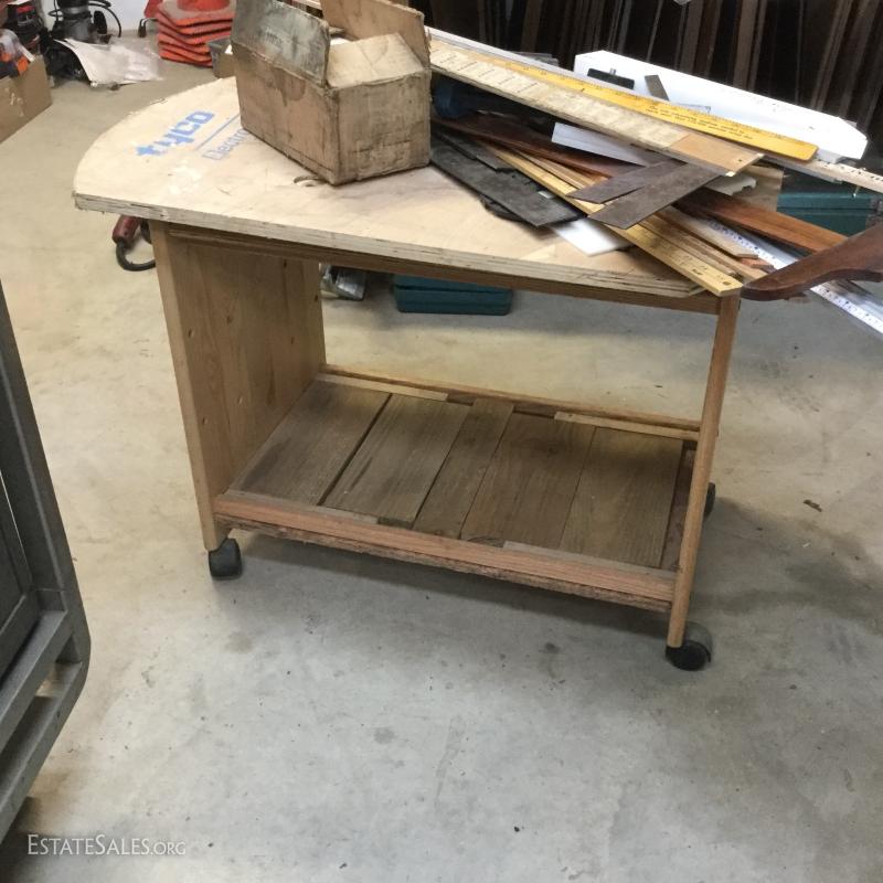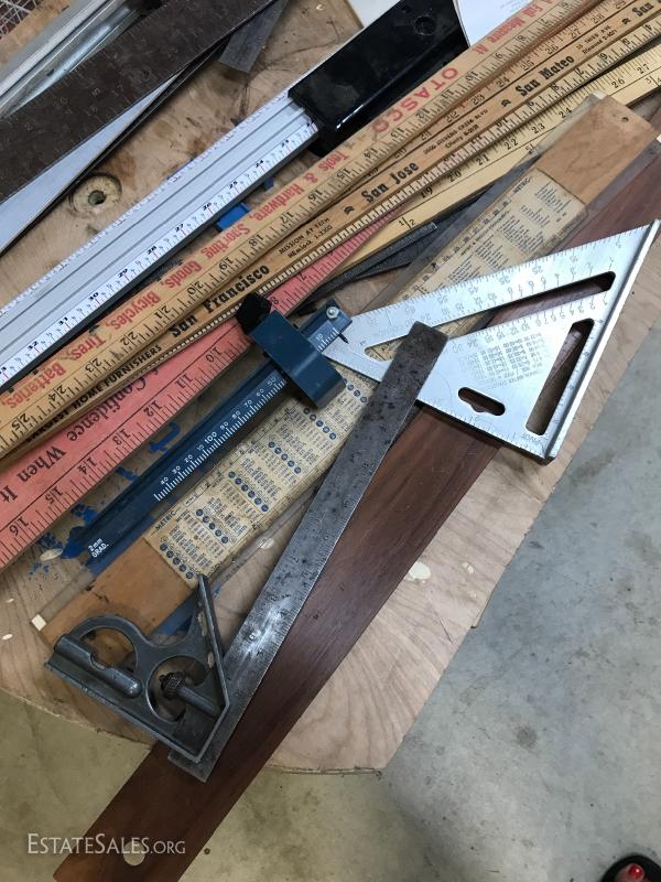 Various rulers and more. Also includes wooden rolling cart. 36"l x 27w x 25"h. See photos.