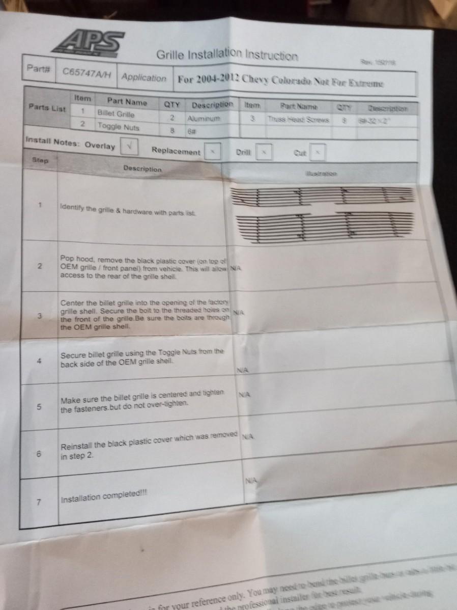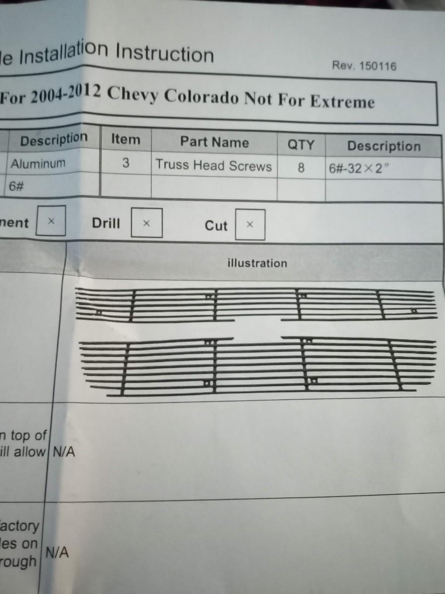LOT 179  NEW GRILL AND OTHER PARTS FOR 2004-2012 CHEVY COLORADO (NOT FOR EXTREME)