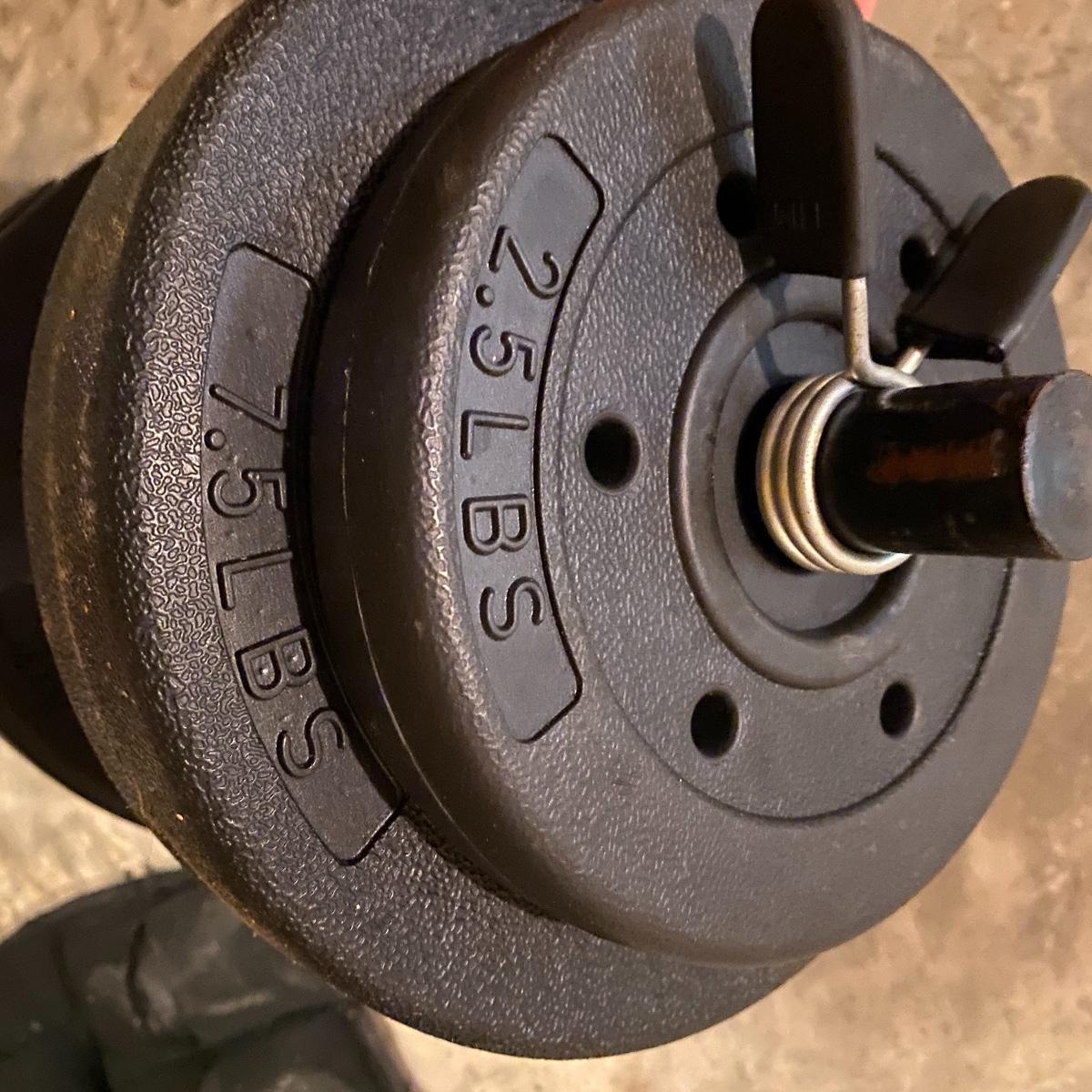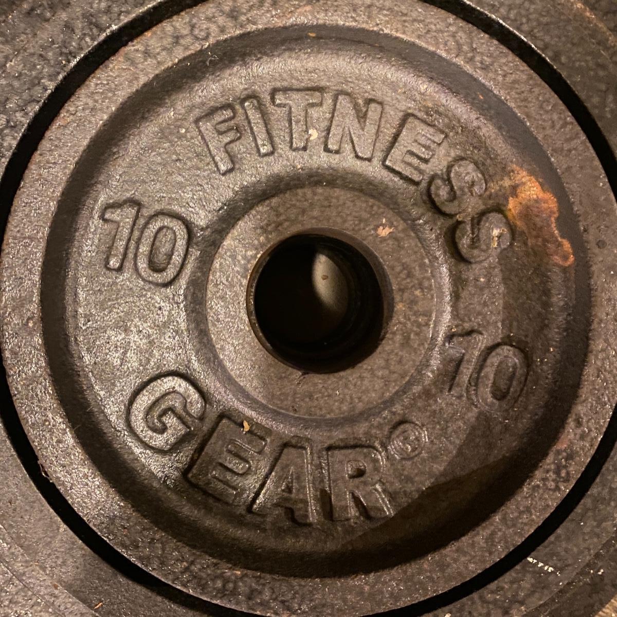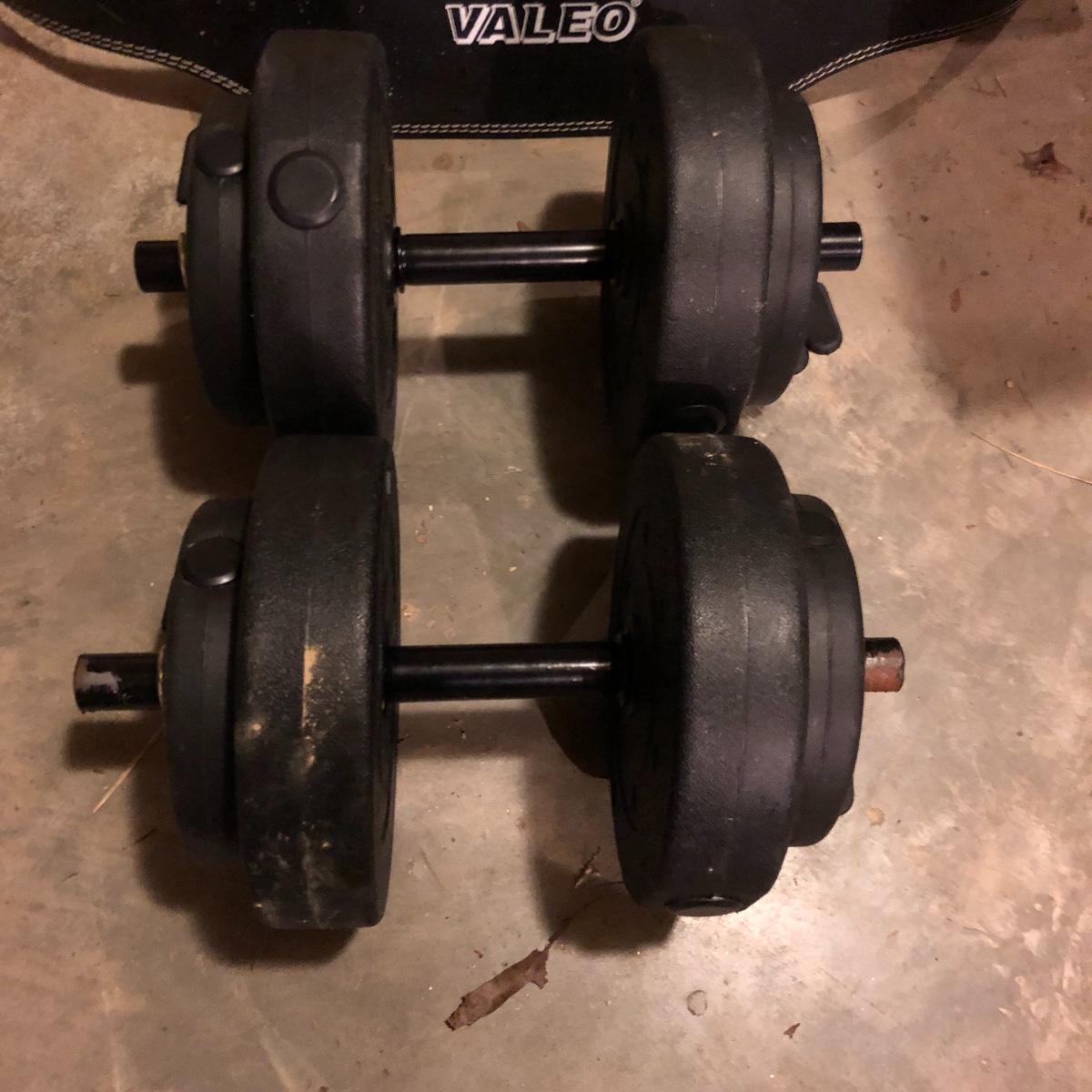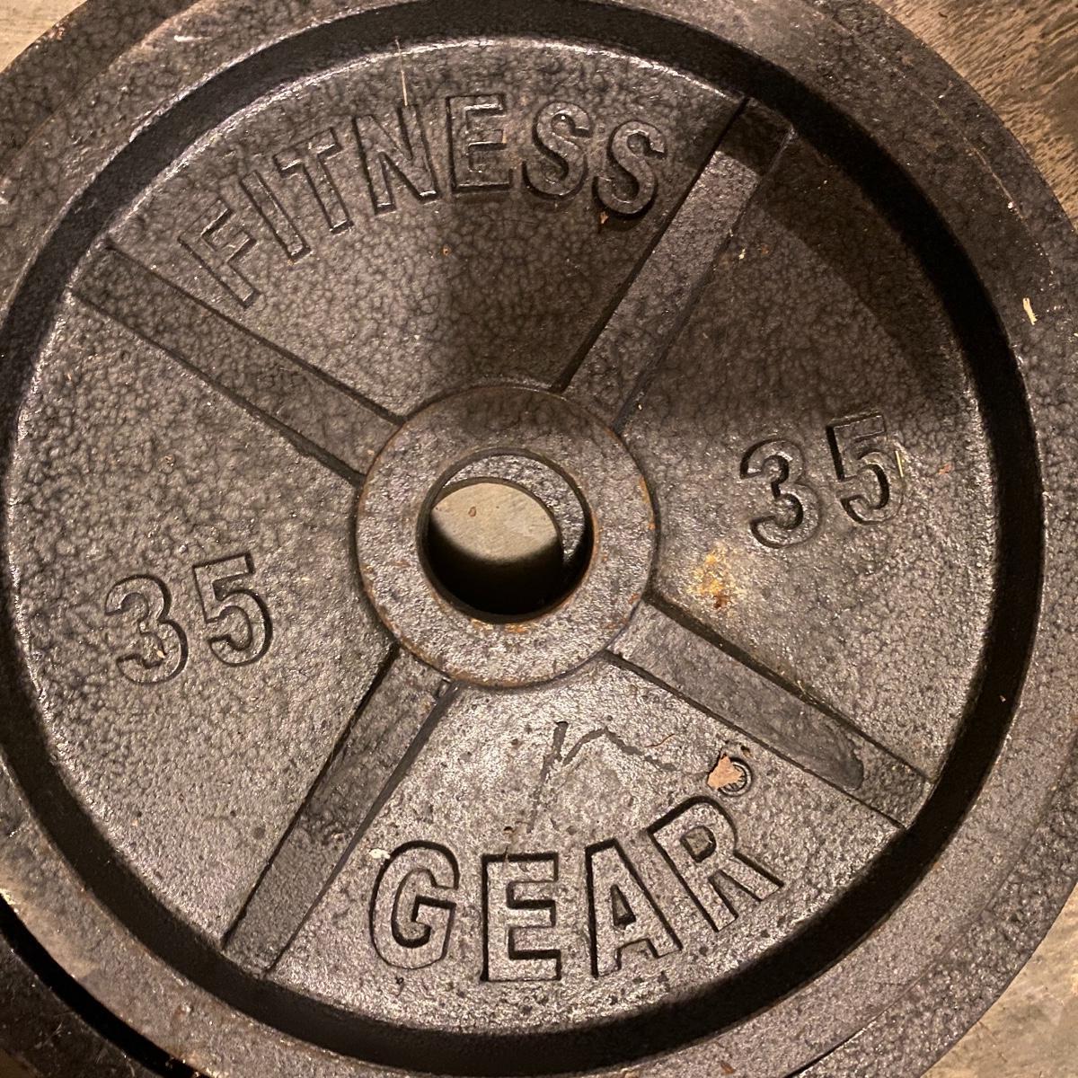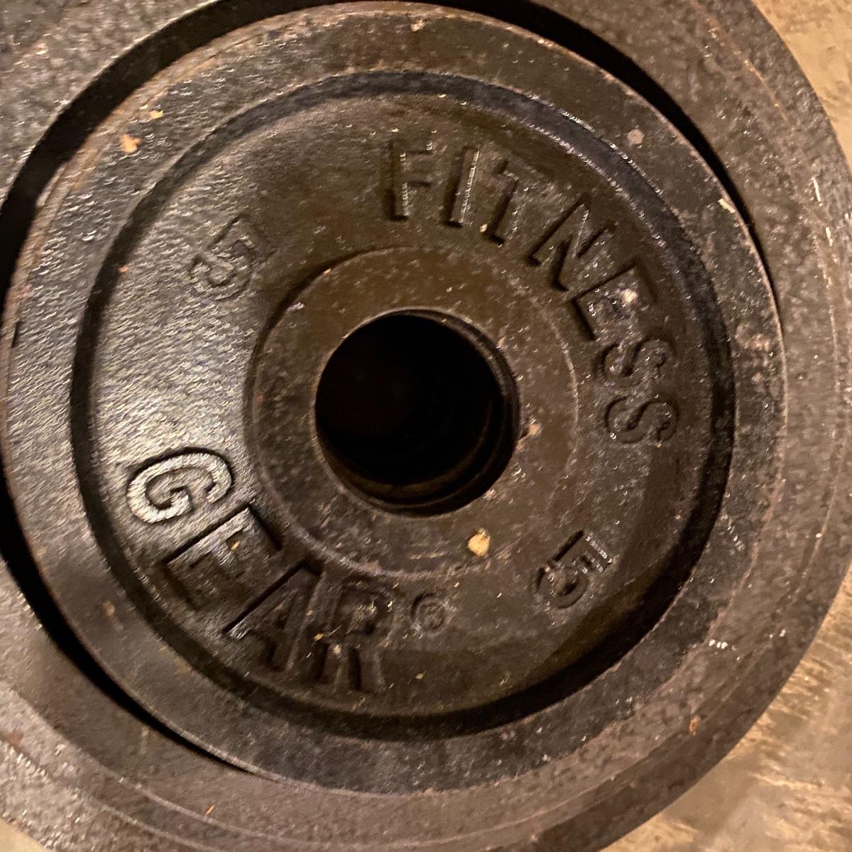 Plenty of weights to keep your workout challenging in this lot. Lot includes 255 pounds of Olympic weights and 86” Olympic bar and two regular dumbbells with twenty pounds of weight each. Also includes Valeo belt and a Golds gym roller wheel. Olympic plates are two of each 45,35,25,10,2.5 and four 5 pound plates. Bring help item is substantial and will have to be walked around back of house. Weight bench not included but available in lot 178.