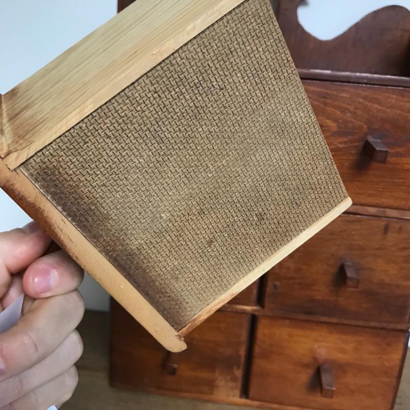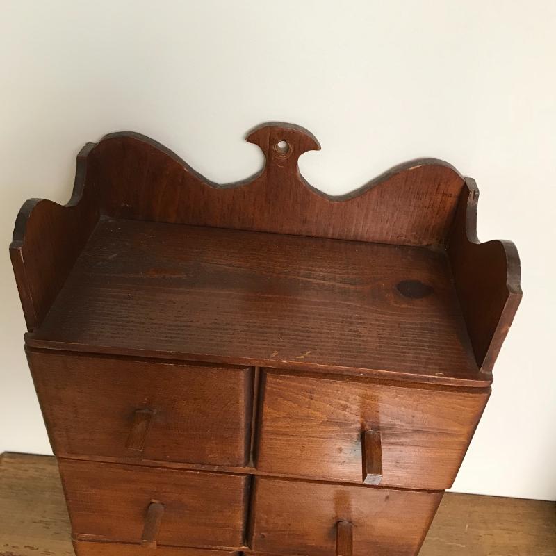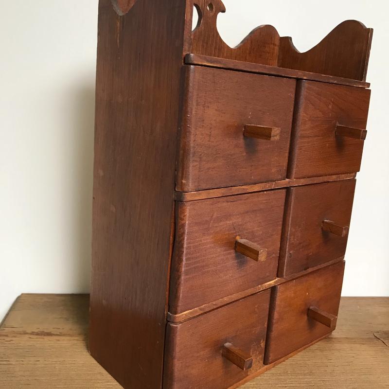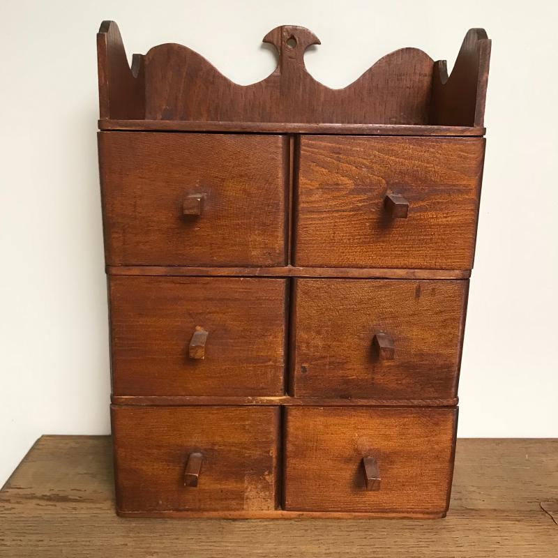 This sweet, primitive set of drawers is perfect for an office, kitchen, or apothecary. Approx. 9” x 5” x 12.5”. Shipping available or local pickup in Arden, NC.