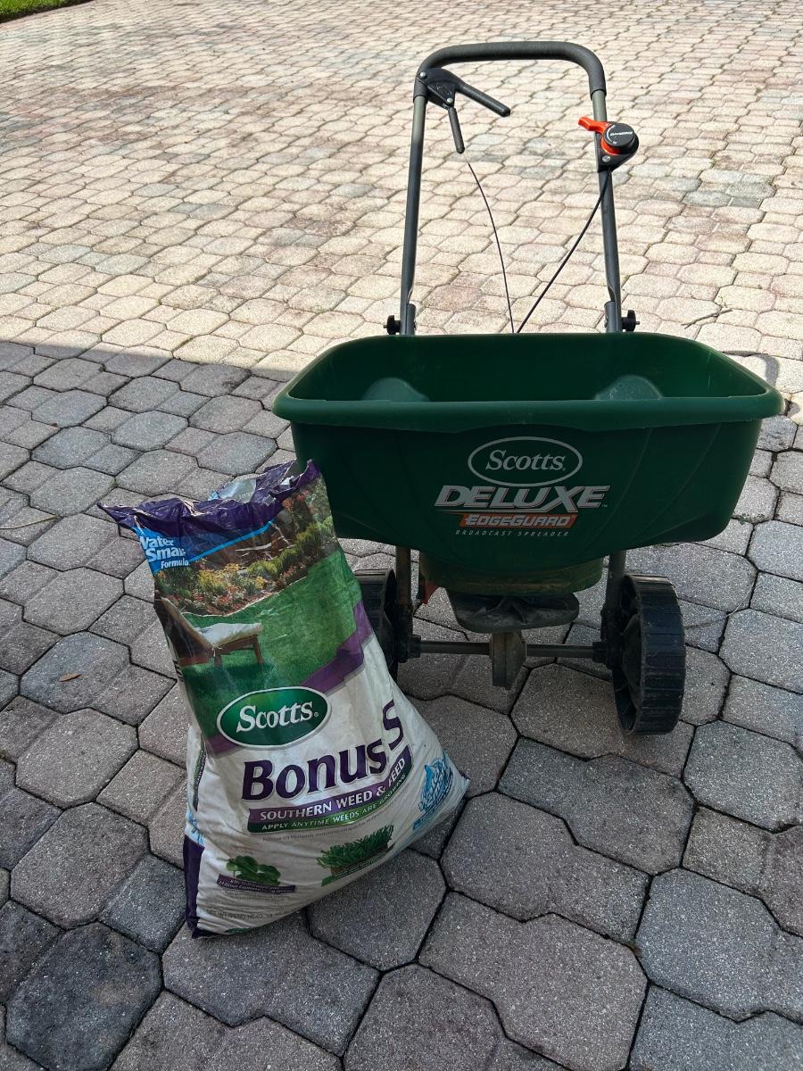 Opened bag of Scotts Southern Weed and Feed