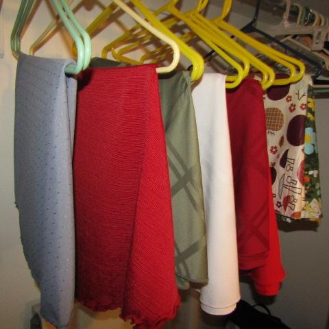 6 LINEN AND 1 PLASTIC ROUND TABLECLOTHS