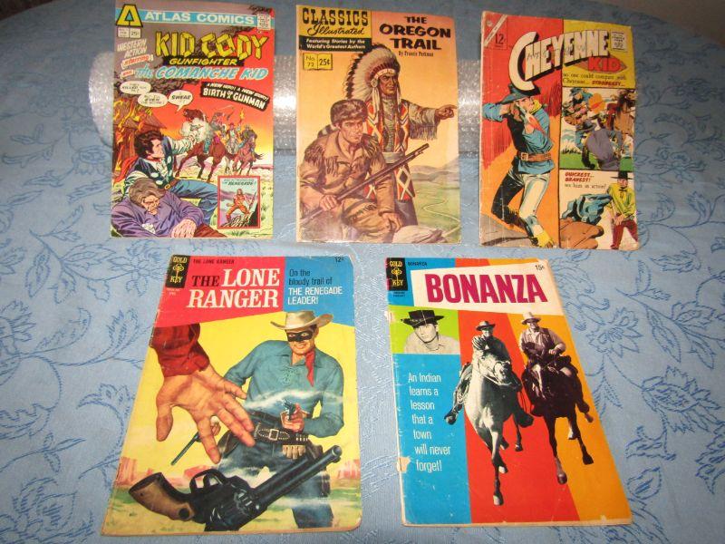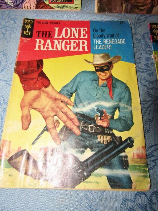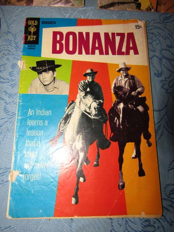 BONANZA, LONE RANGER AND 3 OTHER VINTAGE COMIC BOOKS IN FAIR CONDITION