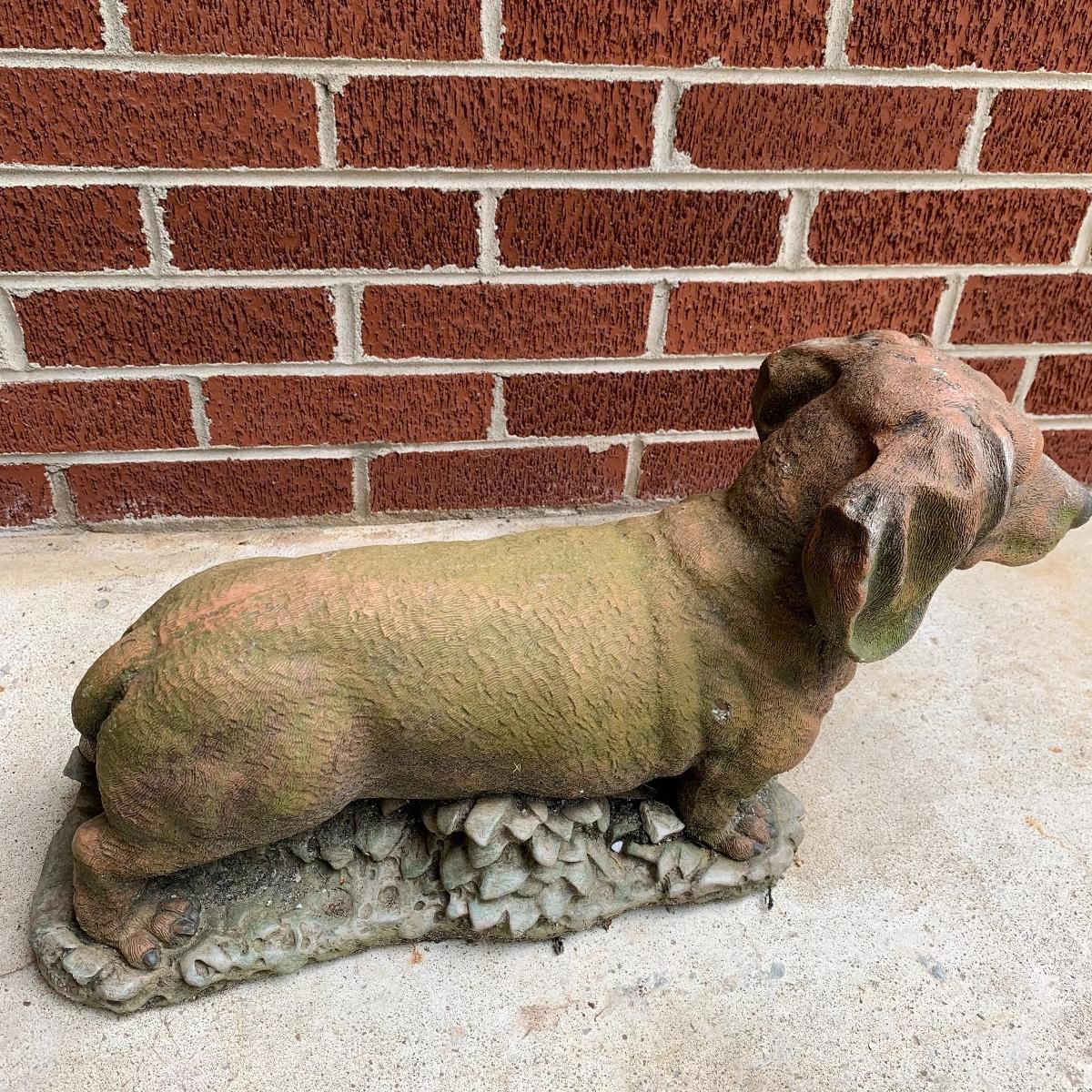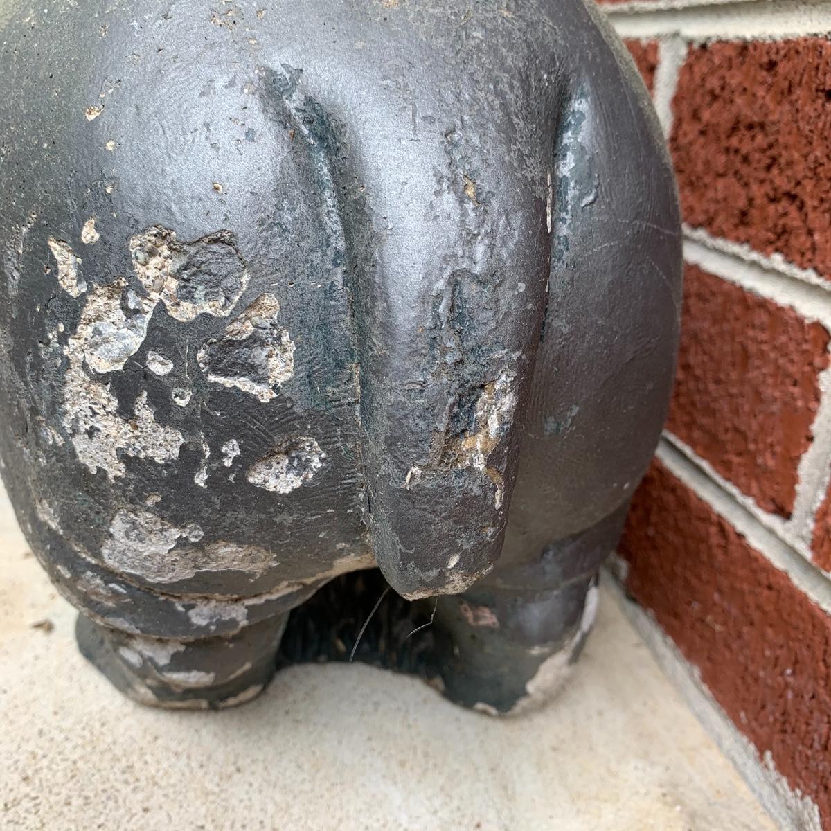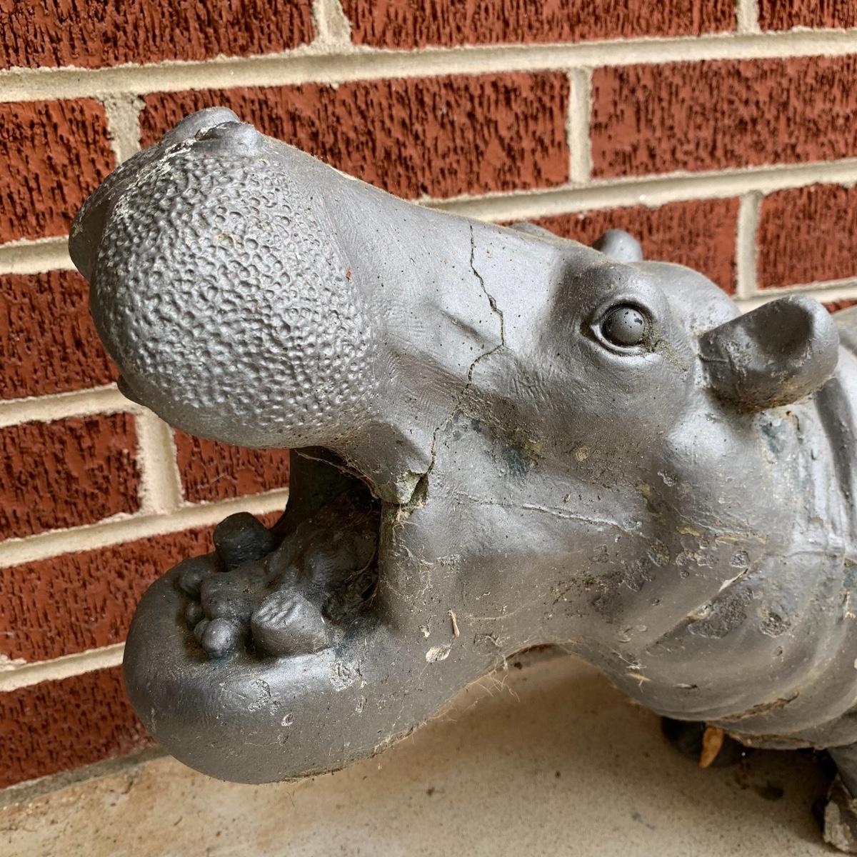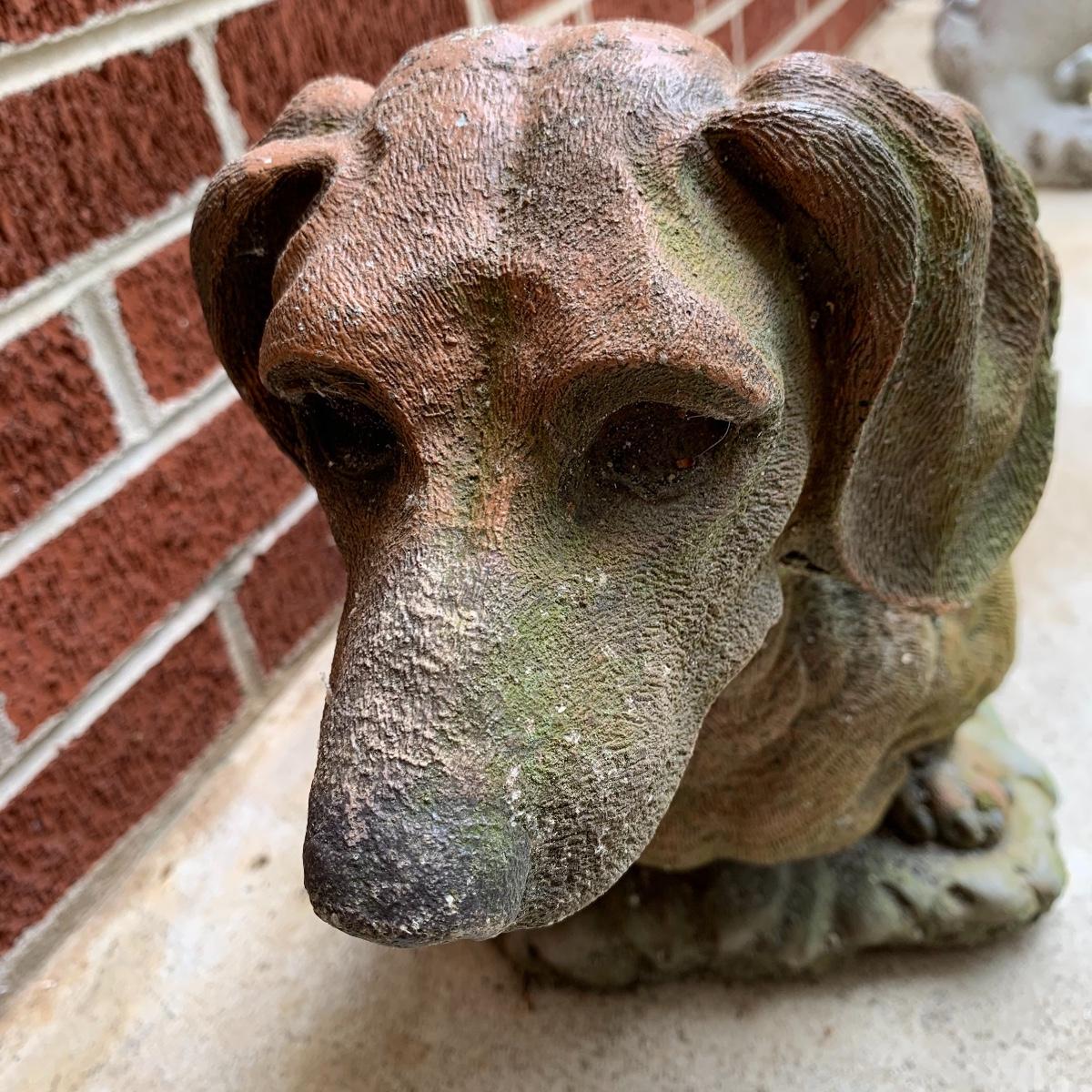 Bid on this lot to have these adorable companions decorate your yard! There are two little turtle statues that are pretty lightweight and in excellent condition. The two dog statues are quite heavy. The one with sweet puppy dog eyes staring up at you is in excellent condition and the dachshund shows a little wear from being outside. The hippo statue is very heavy and does show some wear from being outside. It appears that the snout broke off in the past and was repaired. The hippo is the largest statue. It measures 24” long and stands 13” tall. Local pickup only. Please be aware that these items are quite heavy and will need to be moved by the winning bidder from the back of the house from a home with stairs out front.