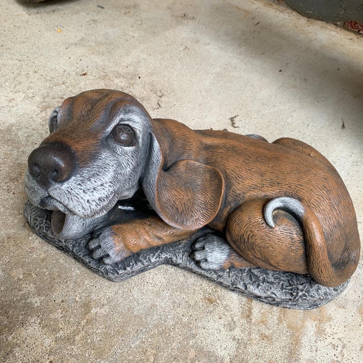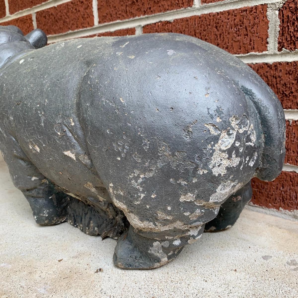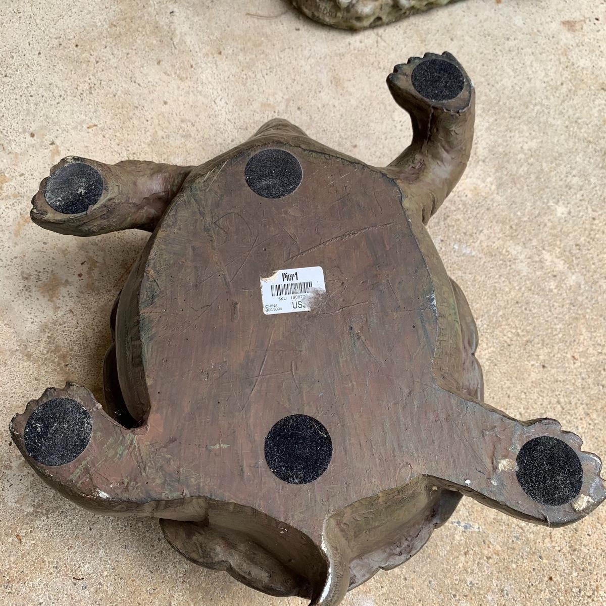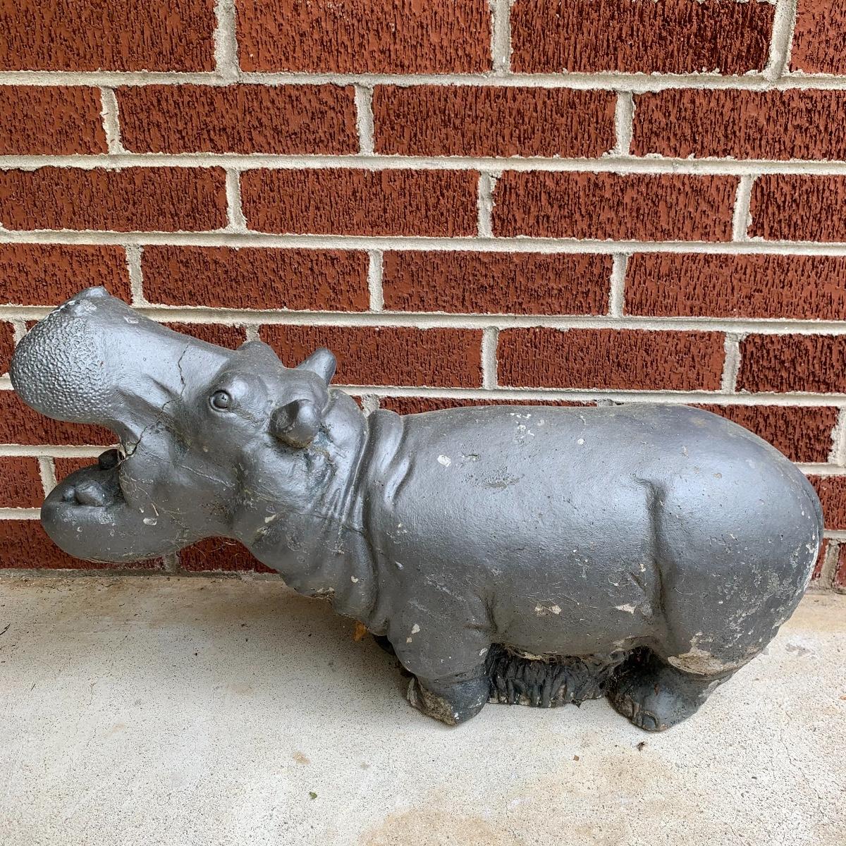 Bid on this lot to have these adorable companions decorate your yard! There are two little turtle statues that are pretty lightweight and in excellent condition. The two dog statues are quite heavy. The one with sweet puppy dog eyes staring up at you is in excellent condition and the dachshund shows a little wear from being outside. The hippo statue is very heavy and does show some wear from being outside. It appears that the snout broke off in the past and was repaired. The hippo is the largest statue. It measures 24” long and stands 13” tall. Local pickup only. Please be aware that these items are quite heavy and will need to be moved by the winning bidder from the back of the house from a home with stairs out front.