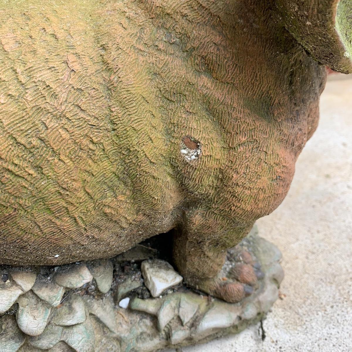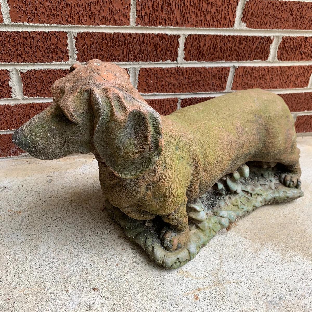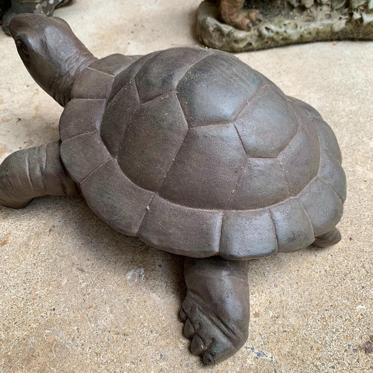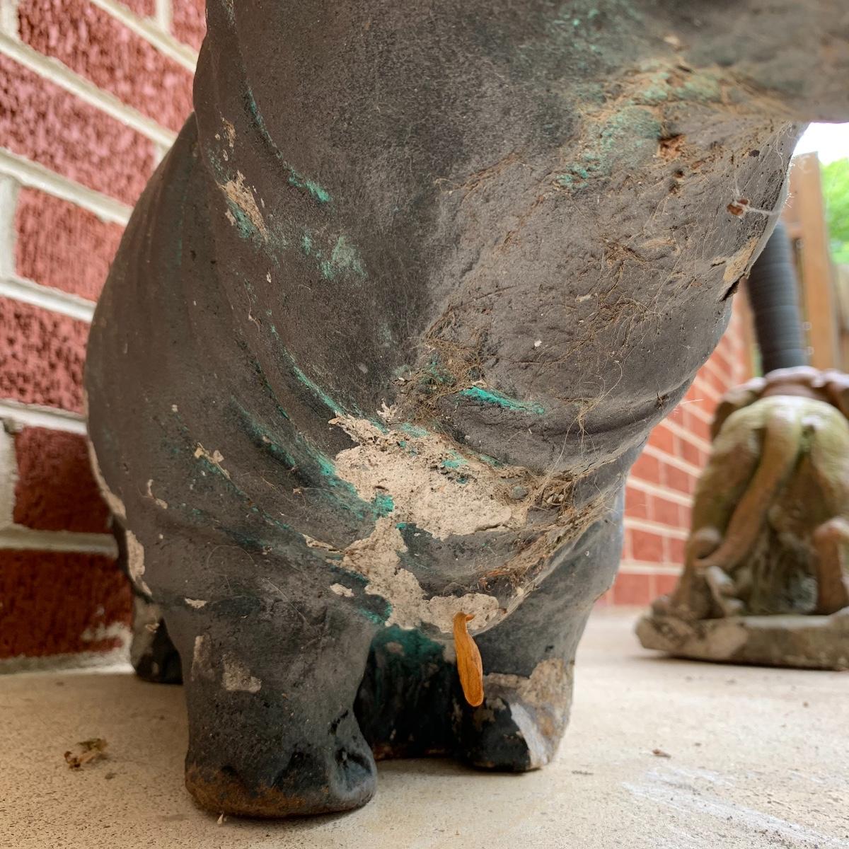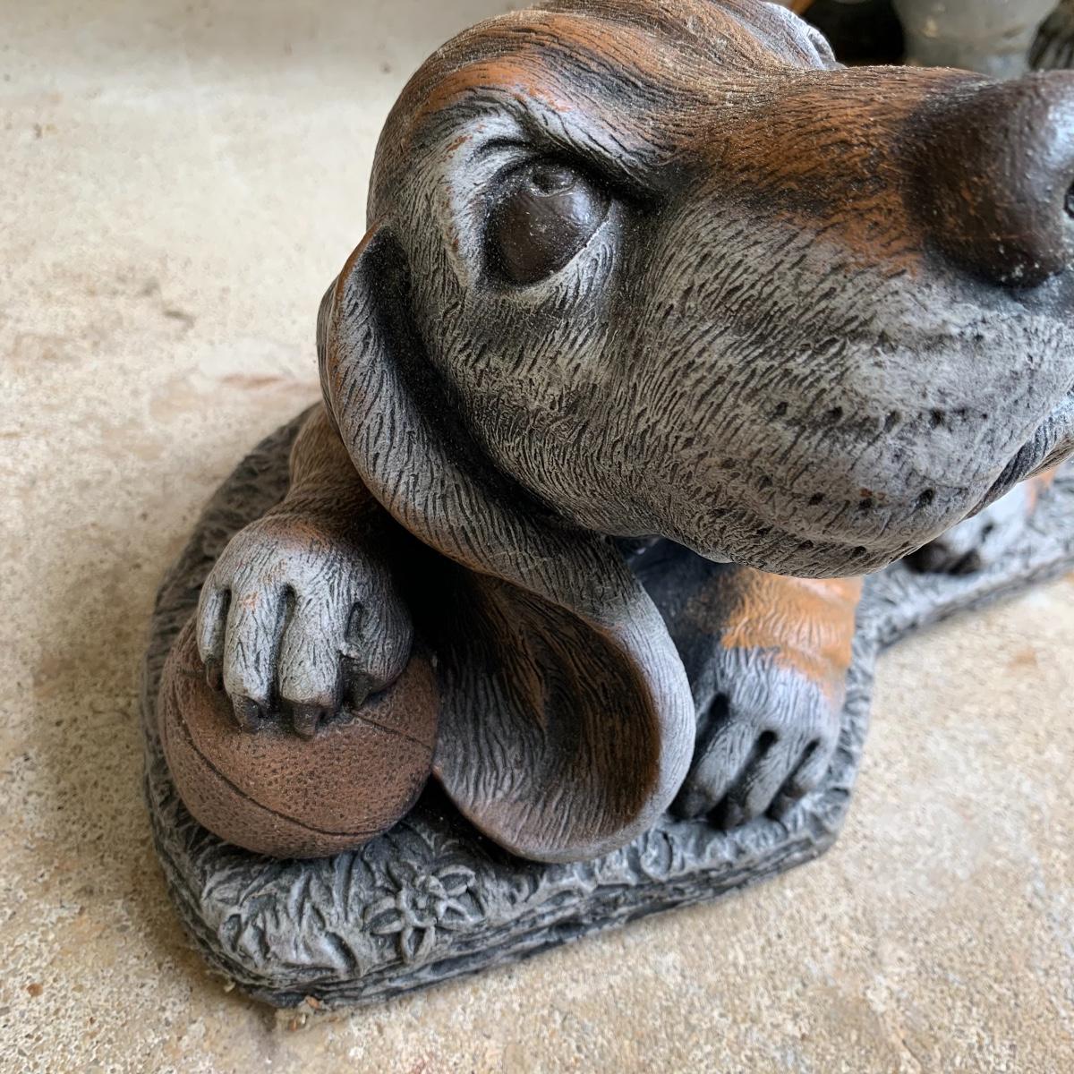 Bid on this lot to have these adorable companions decorate your yard! There are two little turtle statues that are pretty lightweight and in excellent condition. The two dog statues are quite heavy. The one with sweet puppy dog eyes staring up at you is in excellent condition and the dachshund shows a little wear from being outside. The hippo statue is very heavy and does show some wear from being outside. It appears that the snout broke off in the past and was repaired. The hippo is the largest statue. It measures 24” long and stands 13” tall. Local pickup only. Please be aware that these items are quite heavy and will need to be moved by the winning bidder from the back of the house from a home with stairs out front.